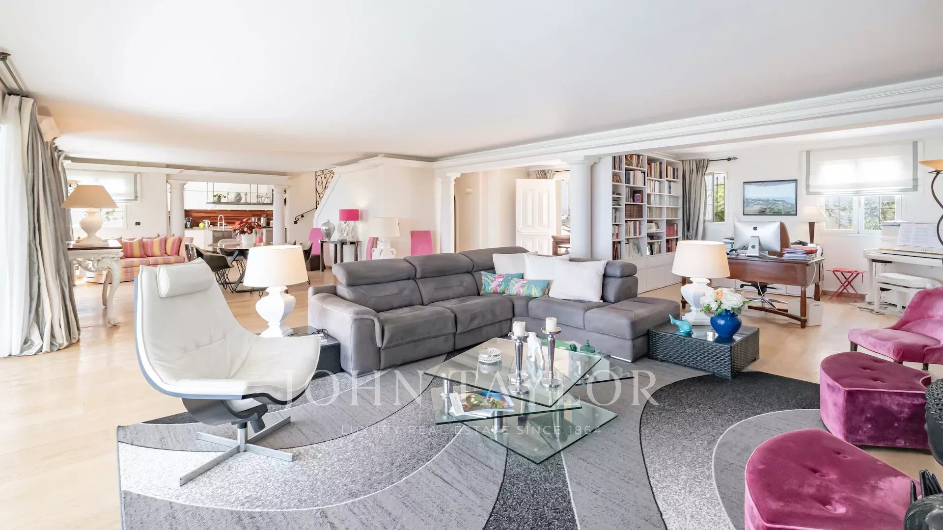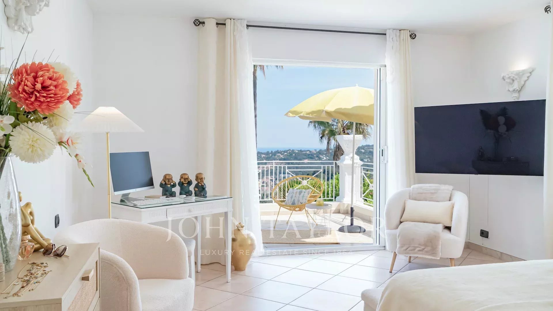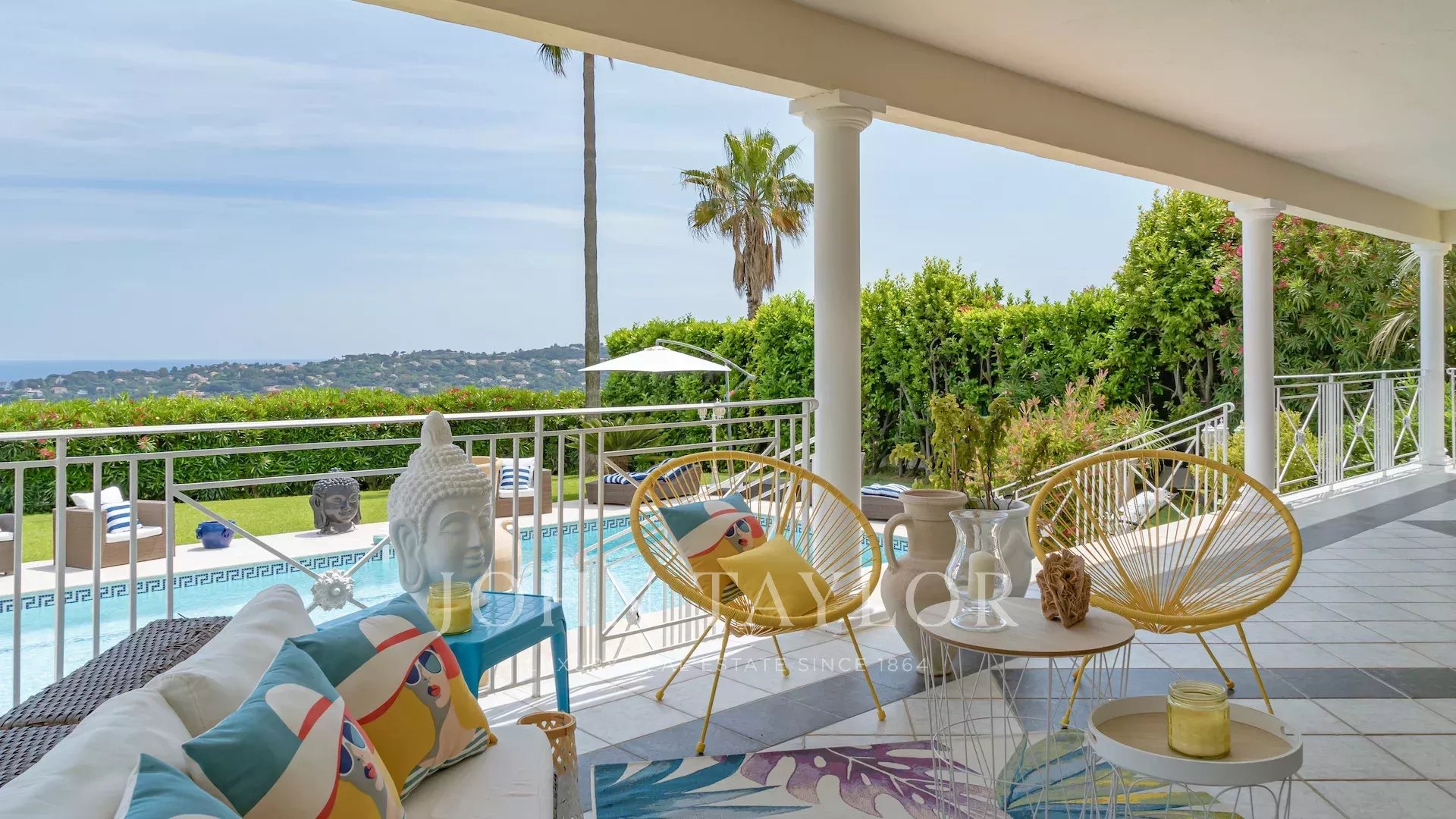 Situata sulle alture di Vallauris, in una tranquilla tenuta recintata, questa splendida villa è stata completamente ristrutturata secondo standard elevati e vanta una vista ininterrotta sul mare e sulle verdi colline.