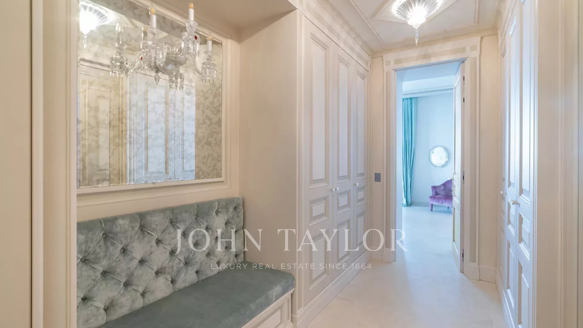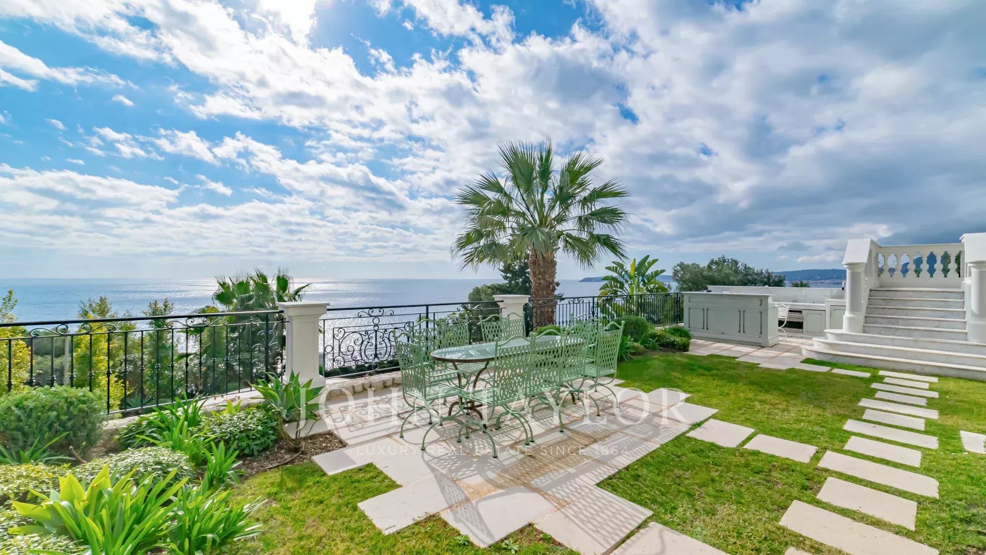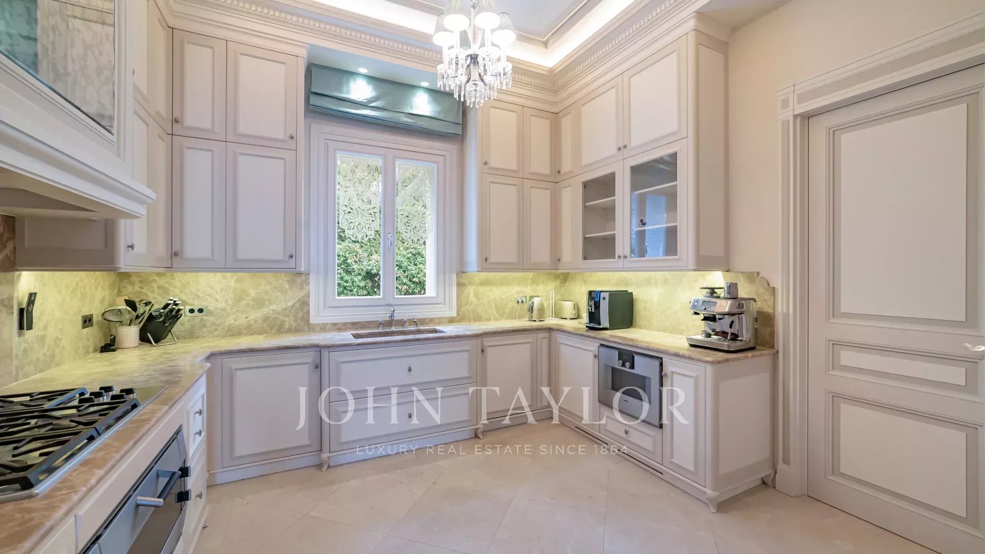 Due saloni, due sale da pranzo che offrono uno spazio abitativo molto elegante, uno studio, 7 camere da letto con bagno privato e spogliatoio con vista sul mare, tra cui una bellissima camera da letto principale con terrazza. Due cucine, di cui una professionale, una sala cinema, una sala giochi, una cantina, una palestra, una sauna e una cucina estiva, il tutto immerso in 1200 m2 di giardini alberati con vista panoramica sul mare.
