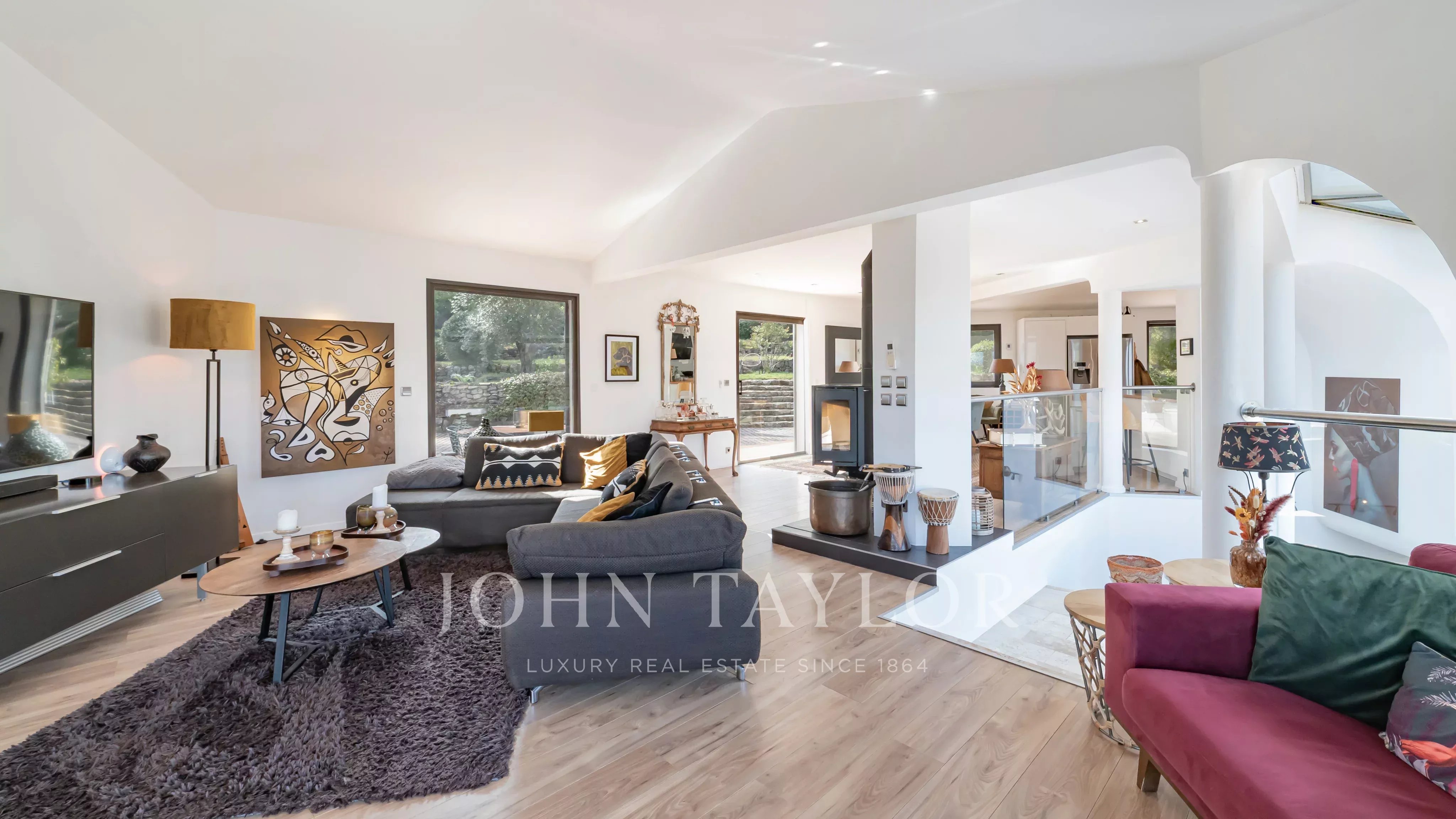 A pochi minuti dal prestigioso campo da golf Terre Blanche, scoprite questa elegante villa contemporanea di circa 290 m², con vista panoramica sulla valle e sulle montagne circostanti.