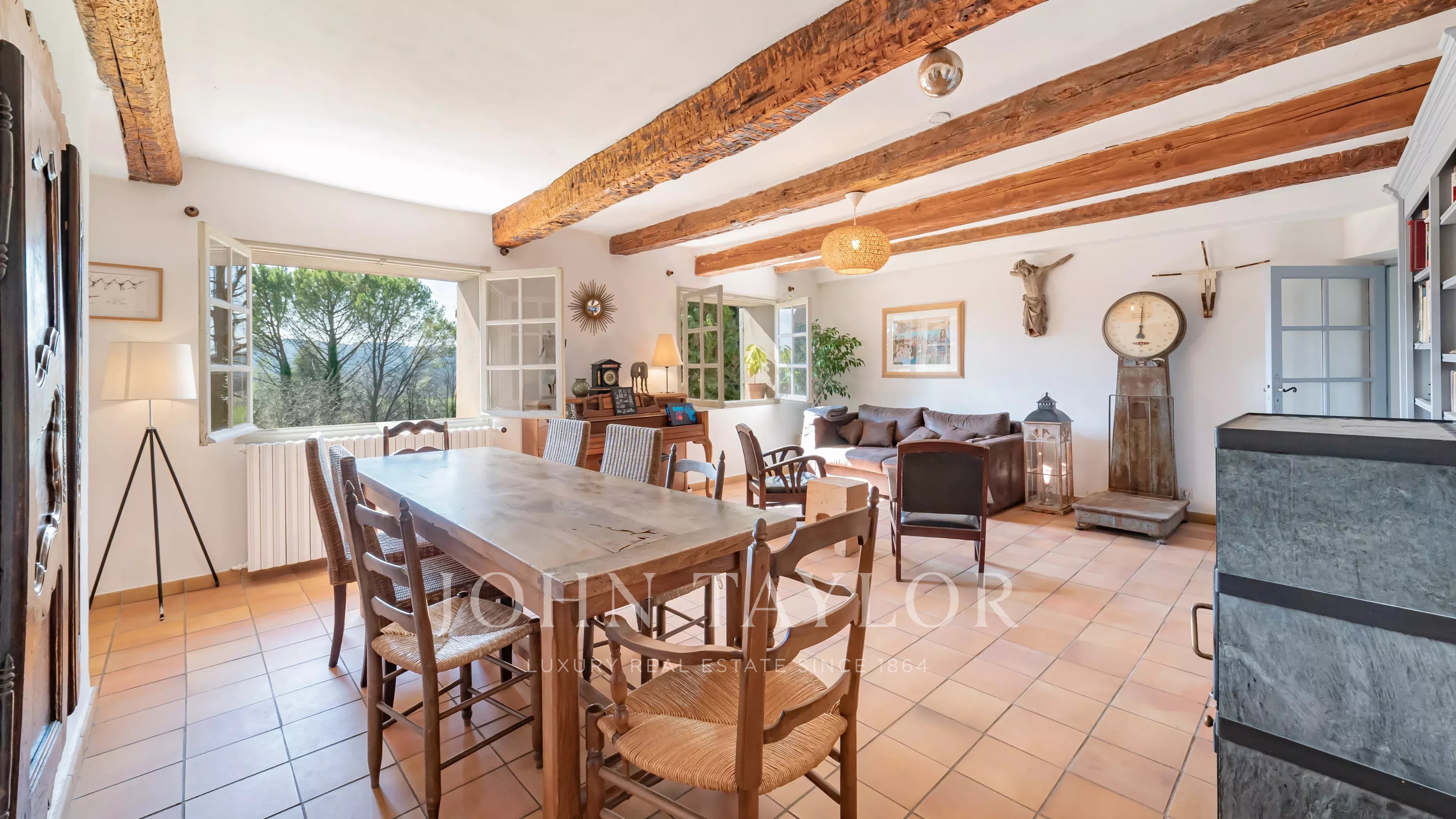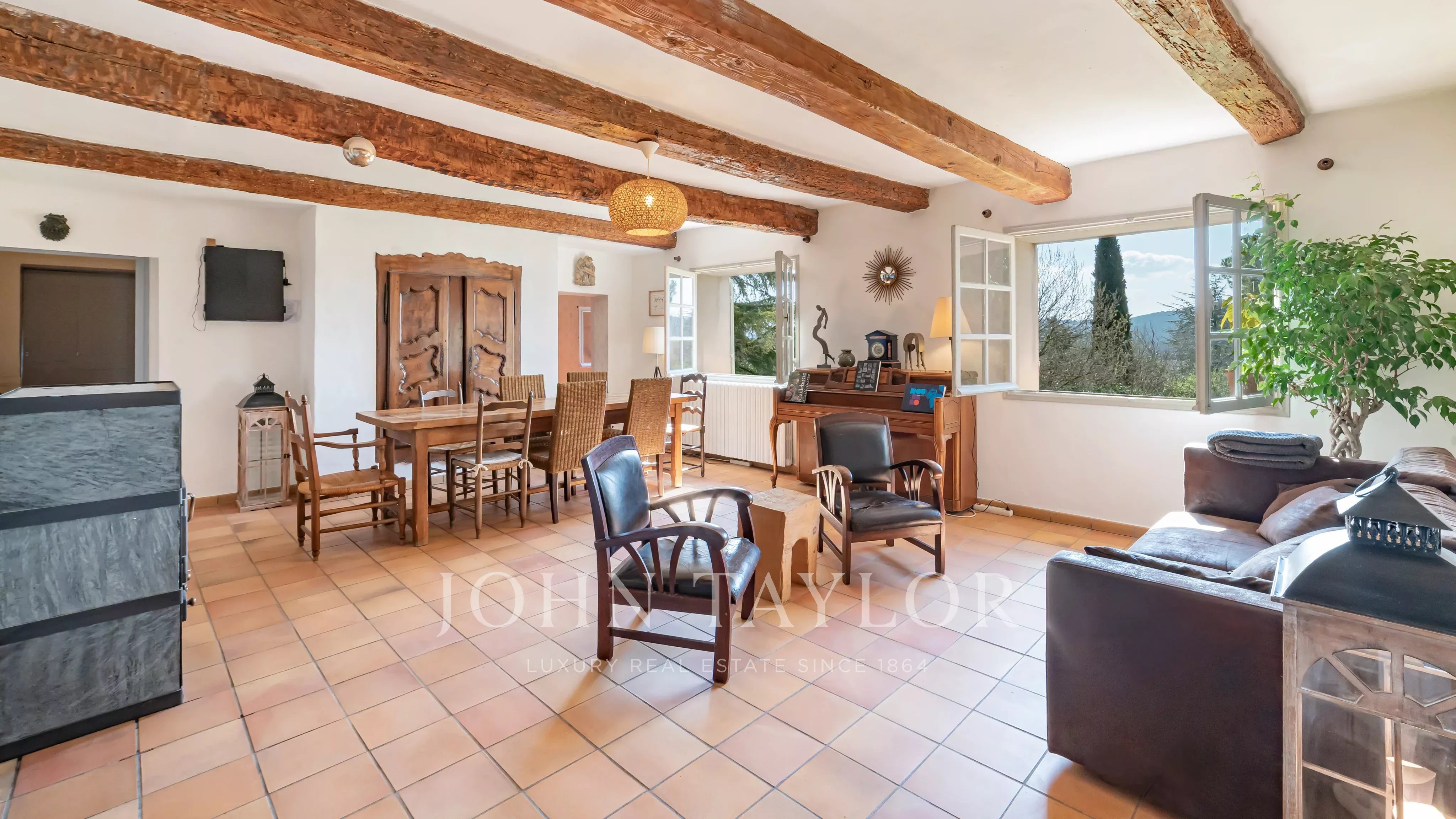Situata in un ambiente naturale preservato, nel cuore della campagna di Tourrettes e a pochi minuti dal prestigioso golf di Terre Blanche, questa proprietà di carattere si estende su un domaine di circa 4,4 ettari e offre un contesto di vita raro, unendo fascino, autenticità e tranquillità.