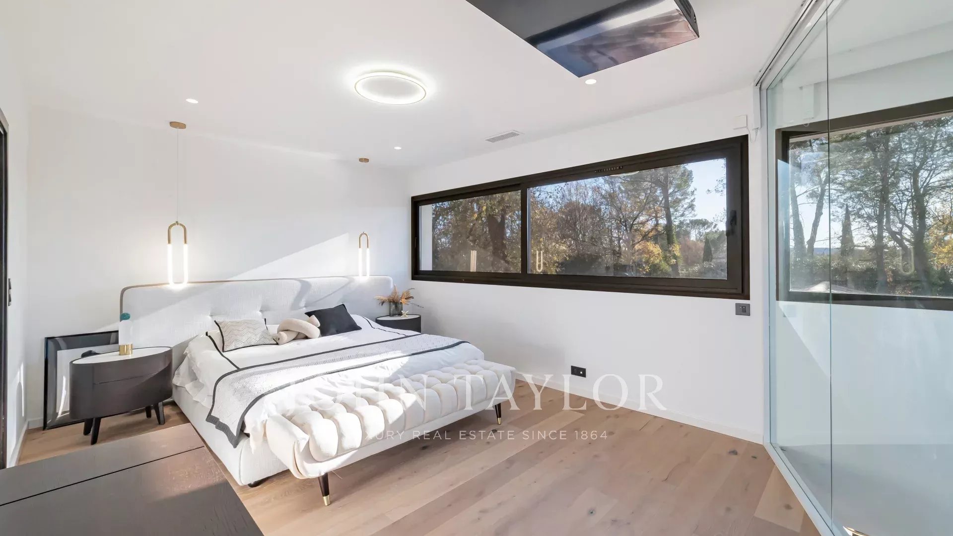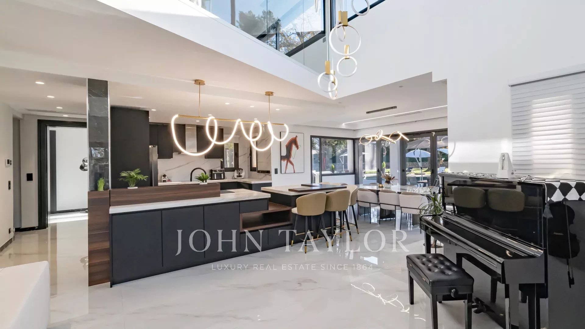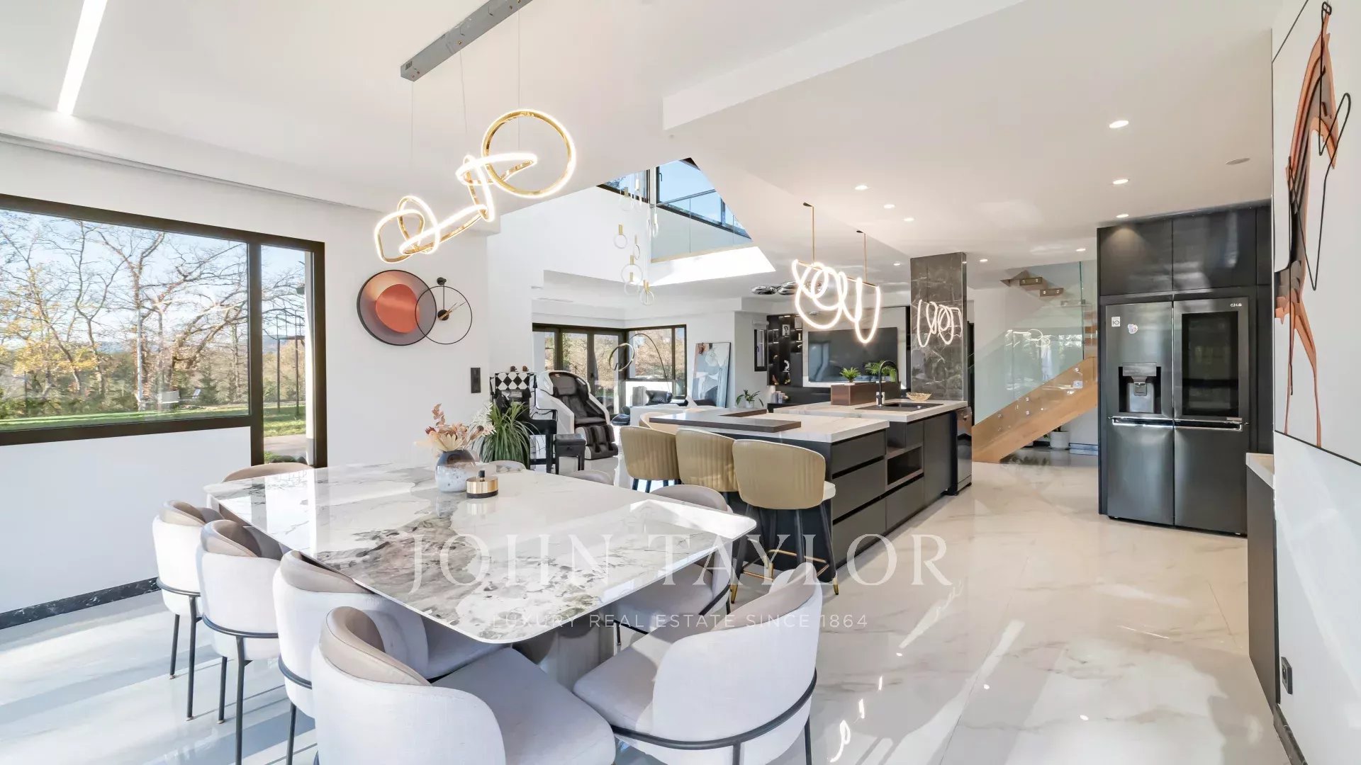 Questa villa dal design architettonico contemporaneo, costruita nel 2023, con una superficie totale di circa 543 m², si trova su 4.200 m² di terreno pianeggiante in un contesto residenziale ricercato e tranquillo, proprio accanto alla prestigiosa tenuta Terre Blanche.