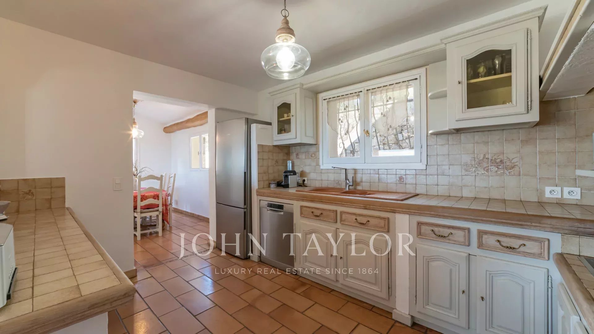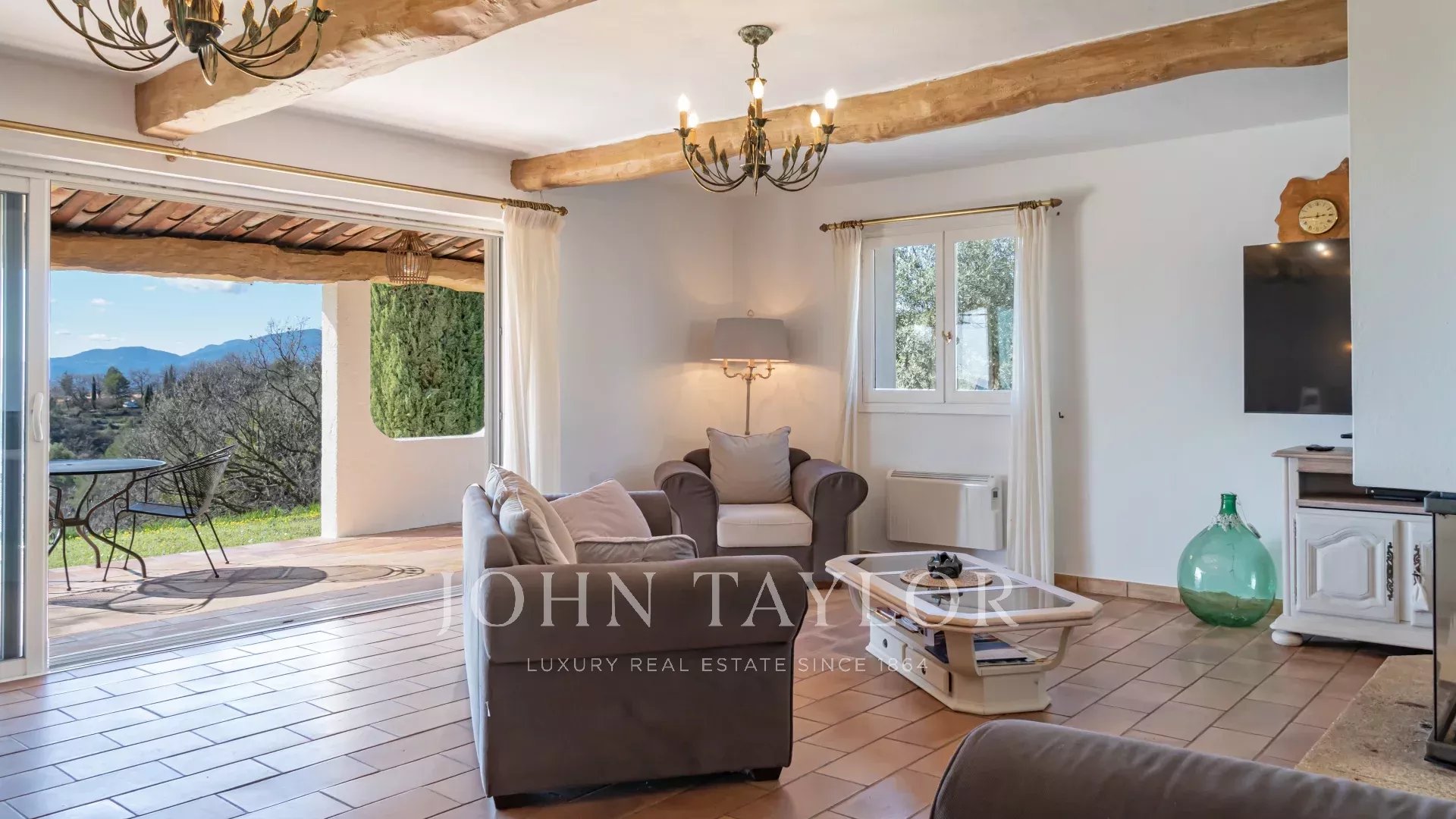 In una zona residenziale, vicino ai negozi e al villaggio di Montauroux, villa di circa 210 m2 su un terreno di 3600 m2 con piscina e ulivi, con vista panoramica sul Cantone di Fayence.