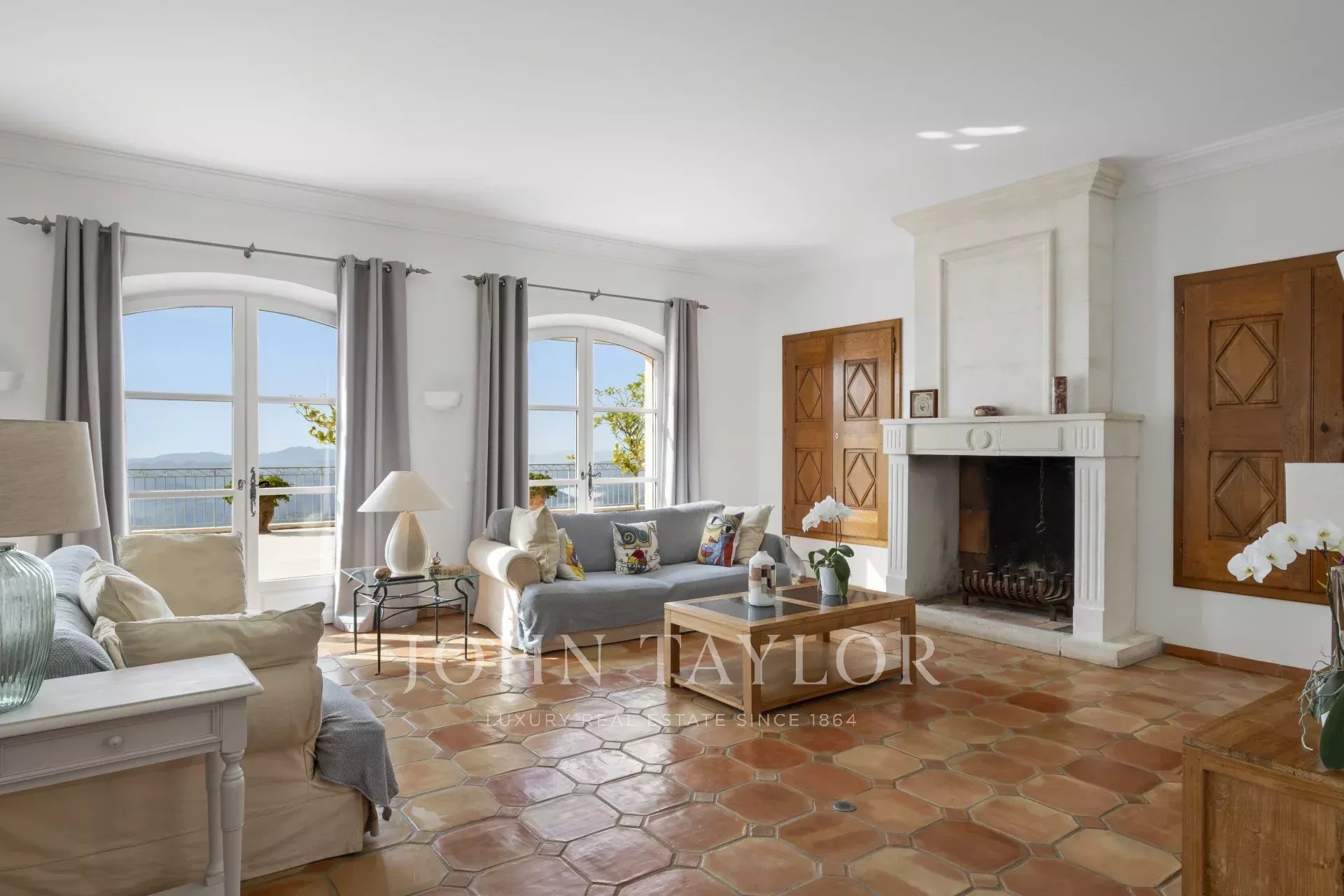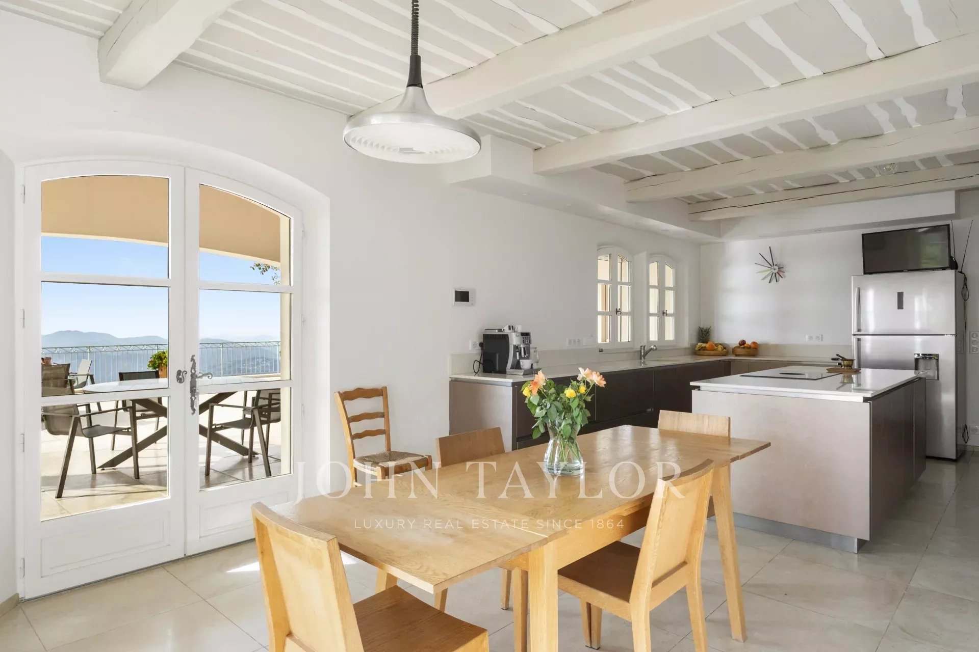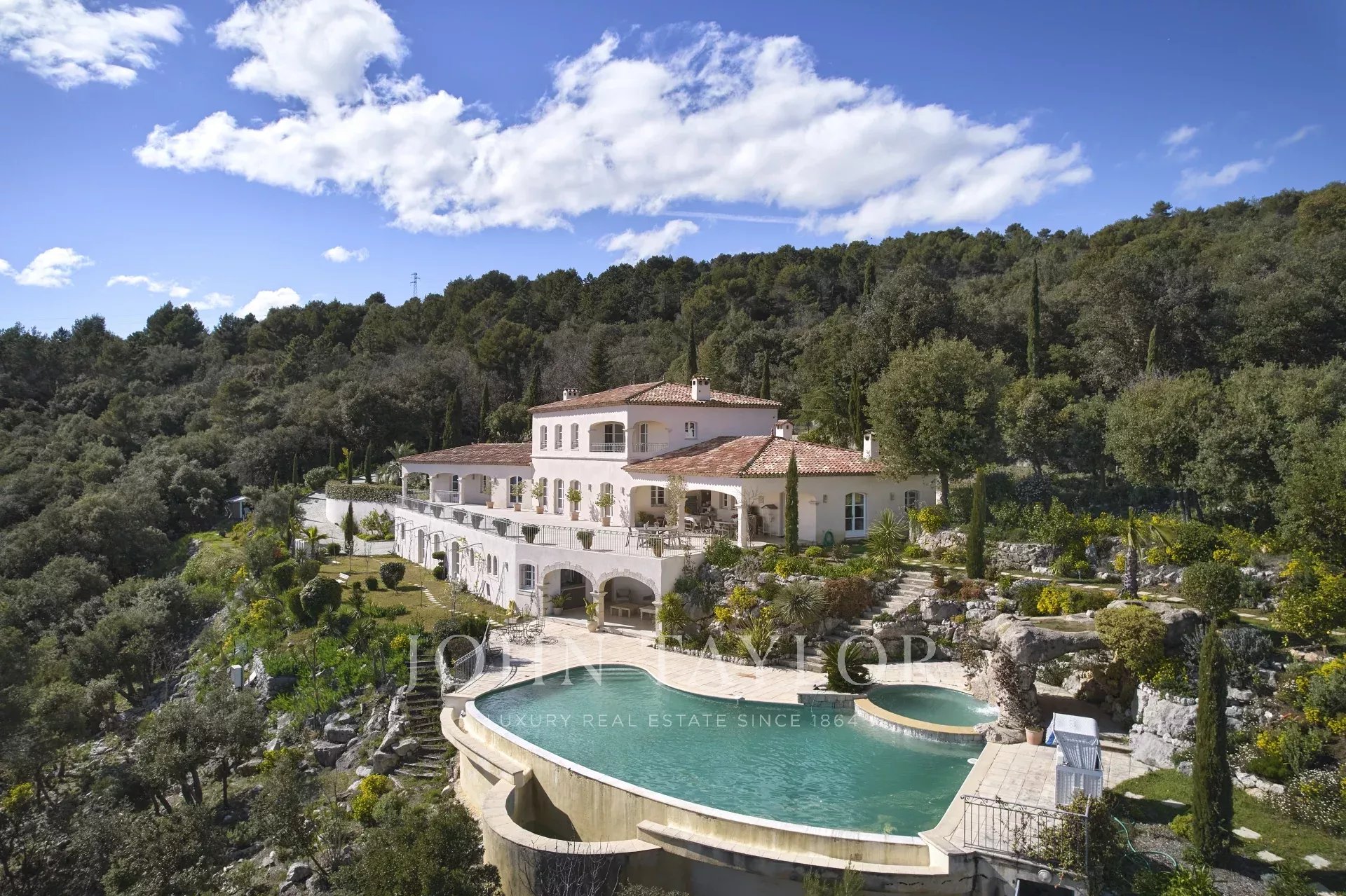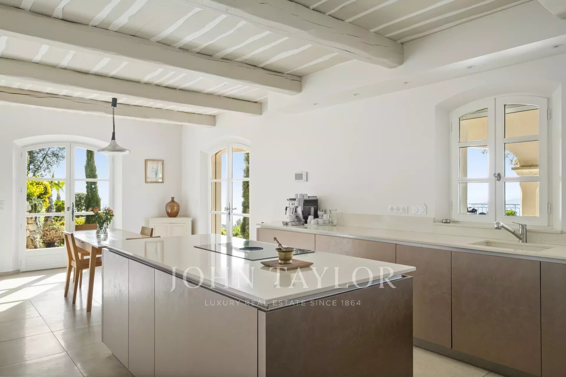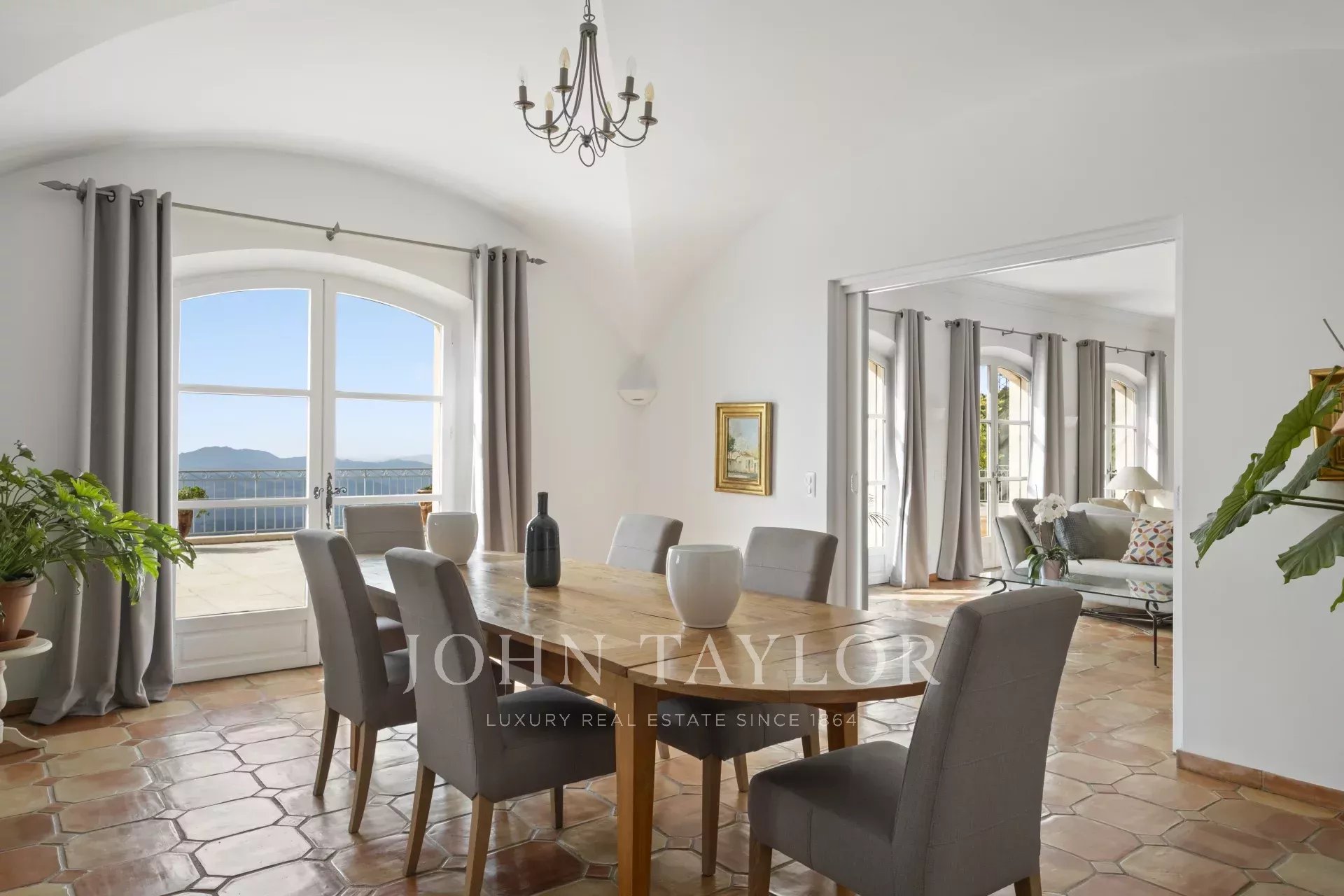 Un superbo ingresso con soffitto a doppia altezza conduce al vasto soggiorno/sala da pranzo, con un elegante camino e grandi finestre panoramiche che si aprono su un'immensa terrazza. L'affascinante cucina provenzale, con il suo grande camino, offre uno spazio conviviale per i pasti in famiglia. Sullo stesso livello si trovano anche uno studio, due camere da letto, tra cui una suite padronale con un bel bagno, uno spogliatoio e una terrazza privata, oltre a una lavanderia, un ripostiglio e un guardaroba.