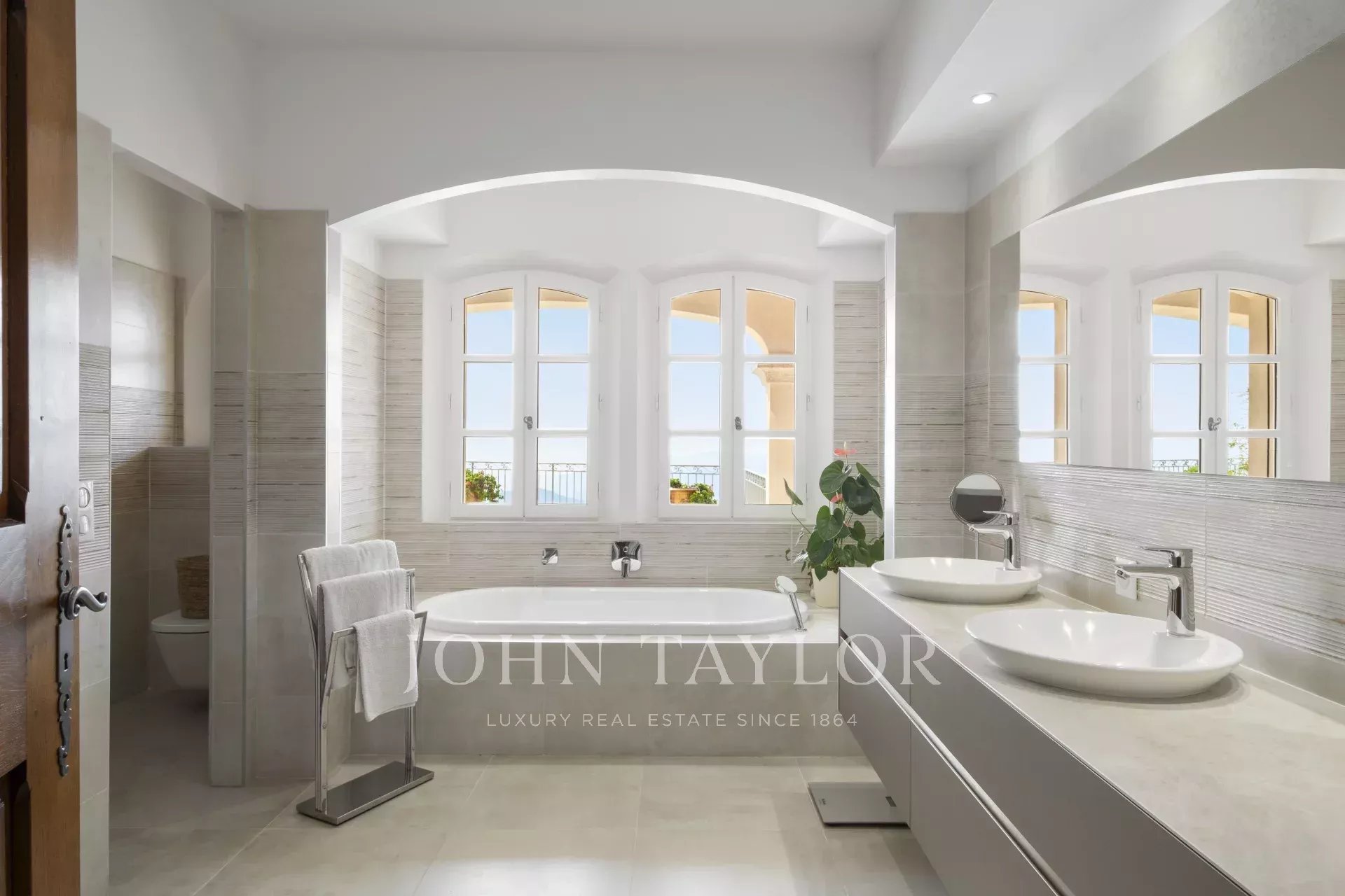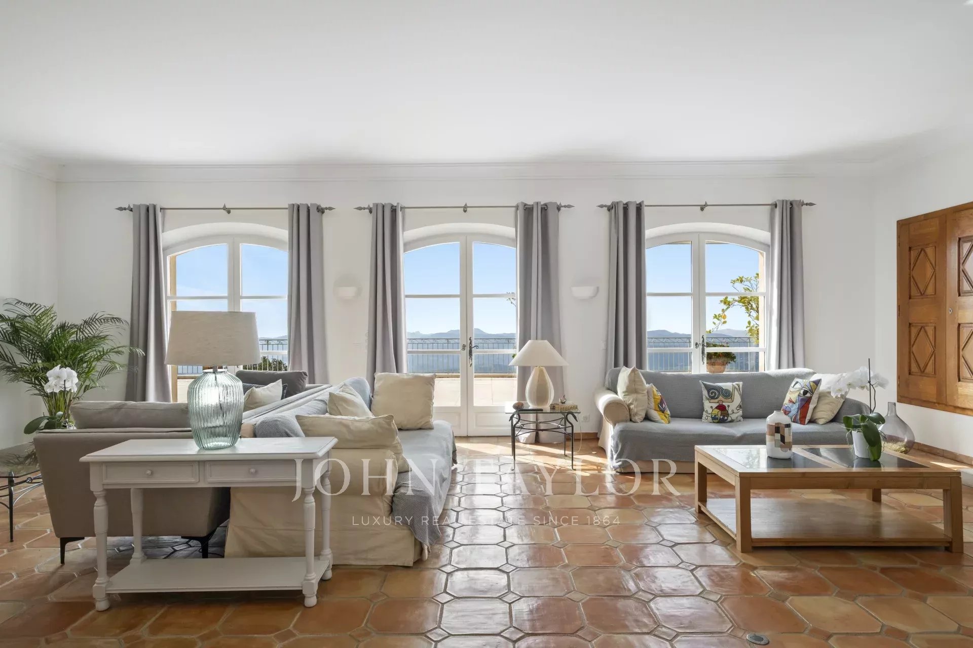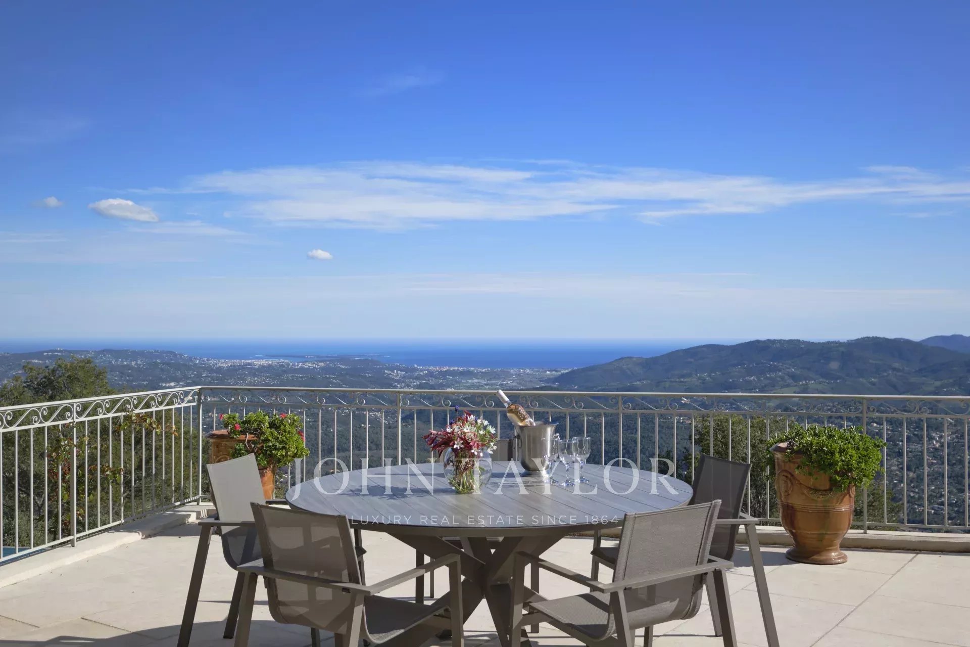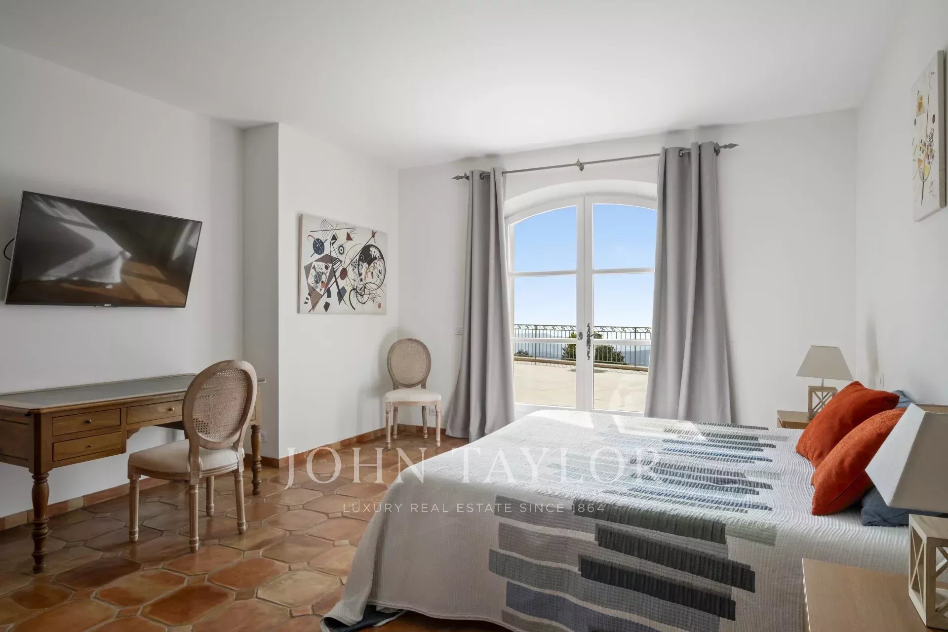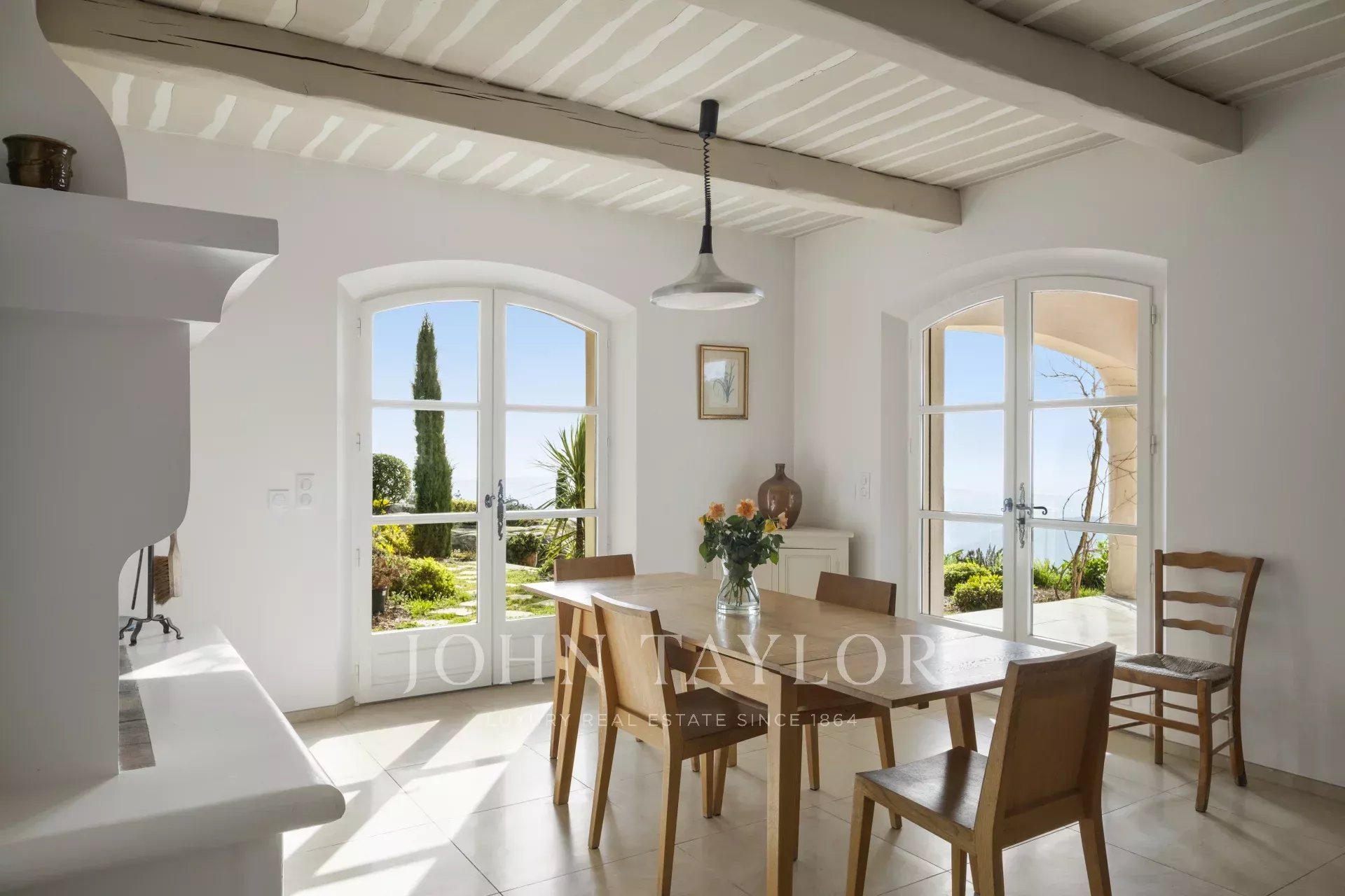 Un superbo ingresso con soffitto a doppia altezza conduce al vasto soggiorno/sala da pranzo, con un elegante camino e grandi finestre panoramiche che si aprono su un'immensa terrazza. L'affascinante cucina provenzale, con il suo grande camino, offre uno spazio conviviale per i pasti in famiglia. Sullo stesso livello si trovano anche uno studio, due camere da letto, tra cui una suite padronale con un bel bagno, uno spogliatoio e una terrazza privata, oltre a una lavanderia, un ripostiglio e un guardaroba.