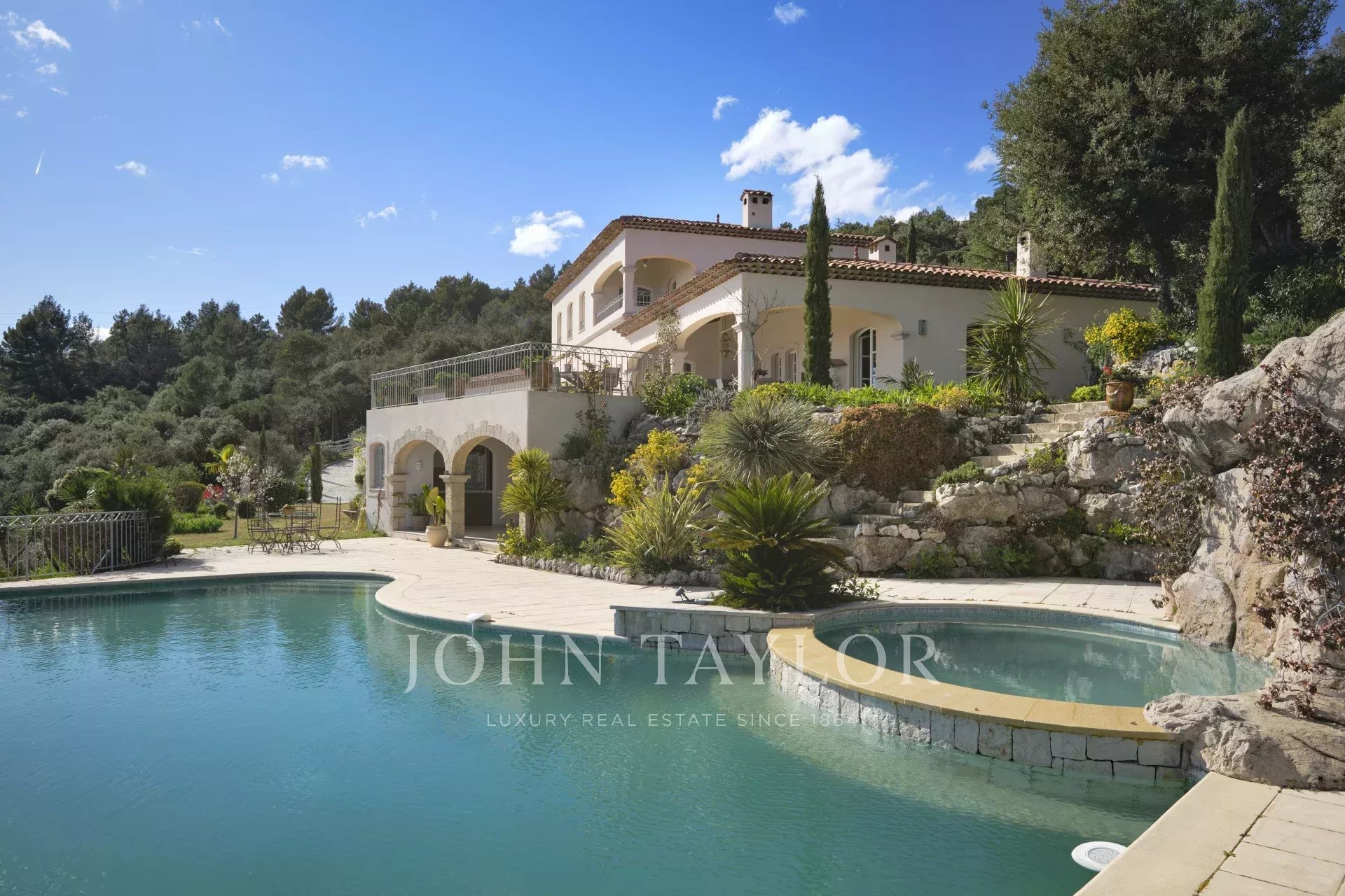 Magnifiche cascate circondate da piante mediterranee esaltano il carattere eccezionale di questa proprietà unica nel suo genere.