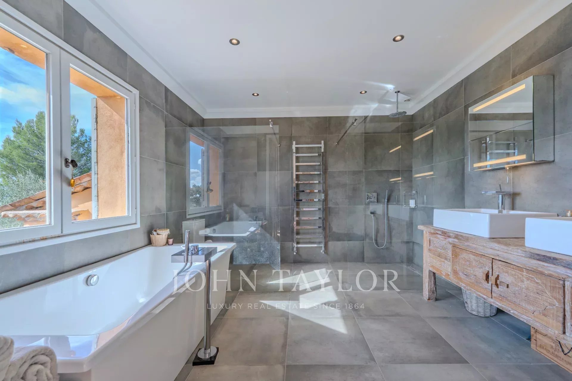 Un posto auto coperto per tre veicoli completa il comfort di questa superba proprietà, situata in posizione ideale vicino a rinomati campi da golf e istituti scolastici e a soli 40 minuti da Cannes.