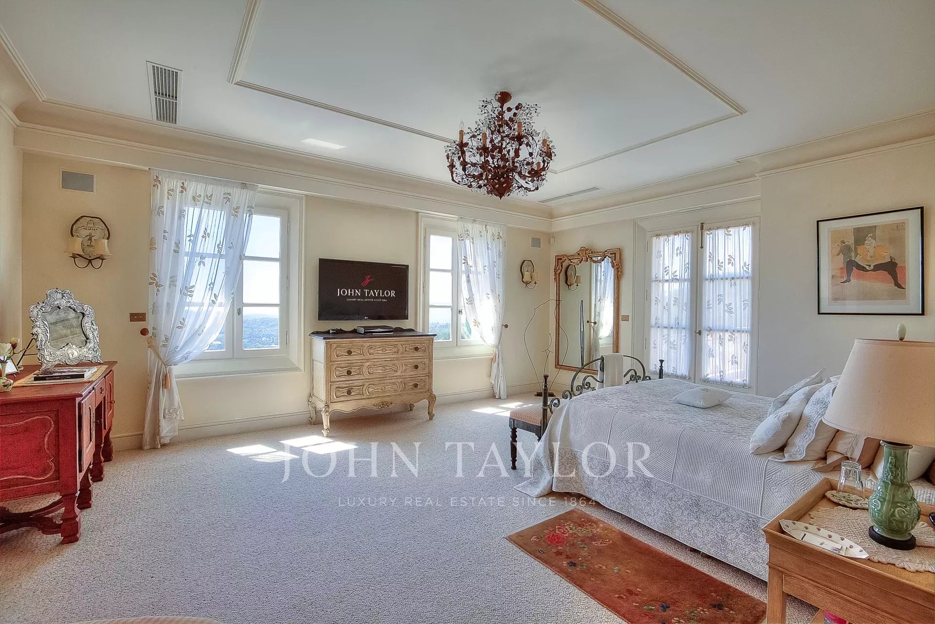 Al piano superiore si trovano due sontuose camere da letto principali. Una è dotata di bagno interno, mentre l'altra si apre su una terrazza privata sul tetto. Gli spogliatoi "Monsieur" e "Madame" e un bagno in marmo rosa con vasca idromassaggio e doccia offrono il massimo del lusso.