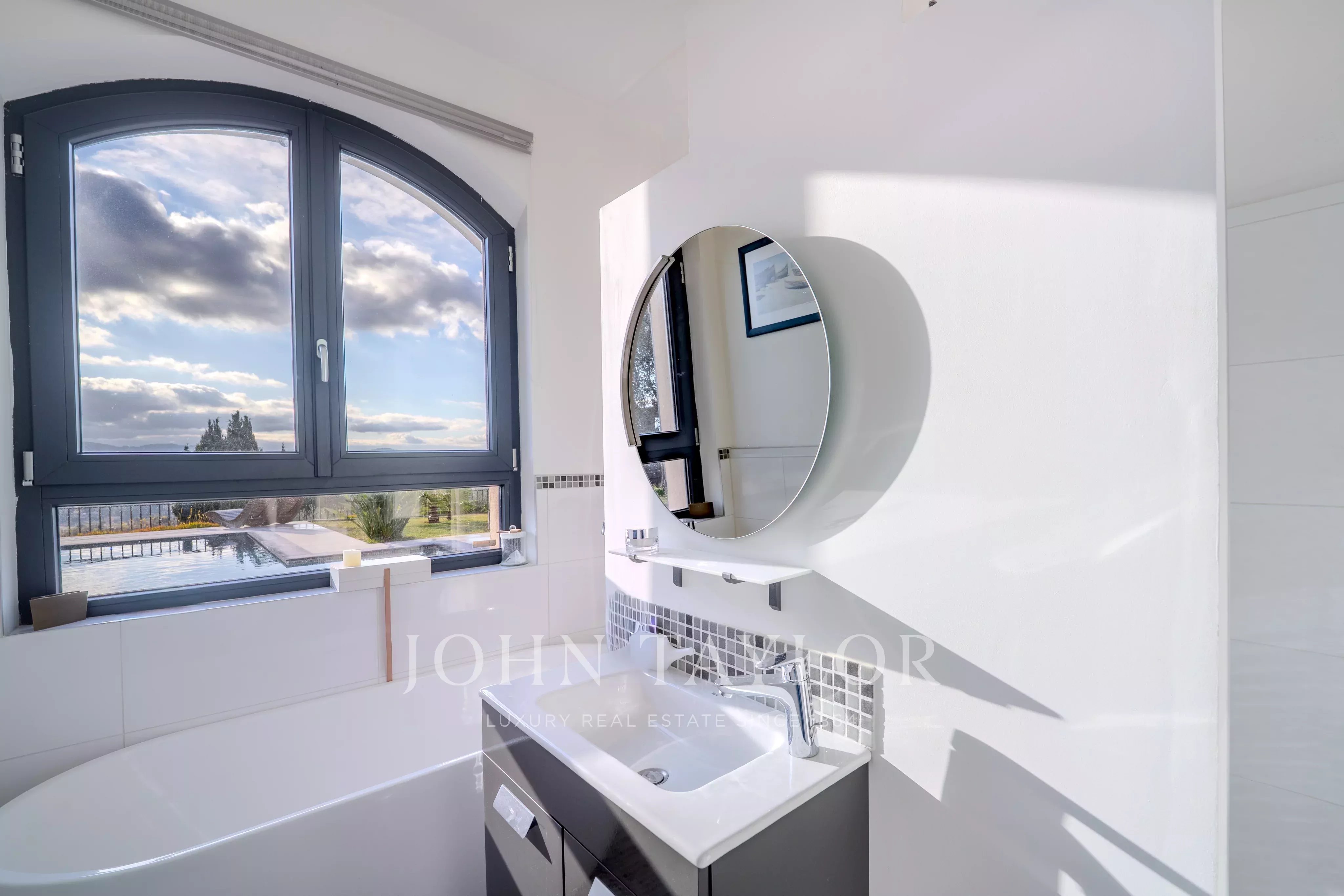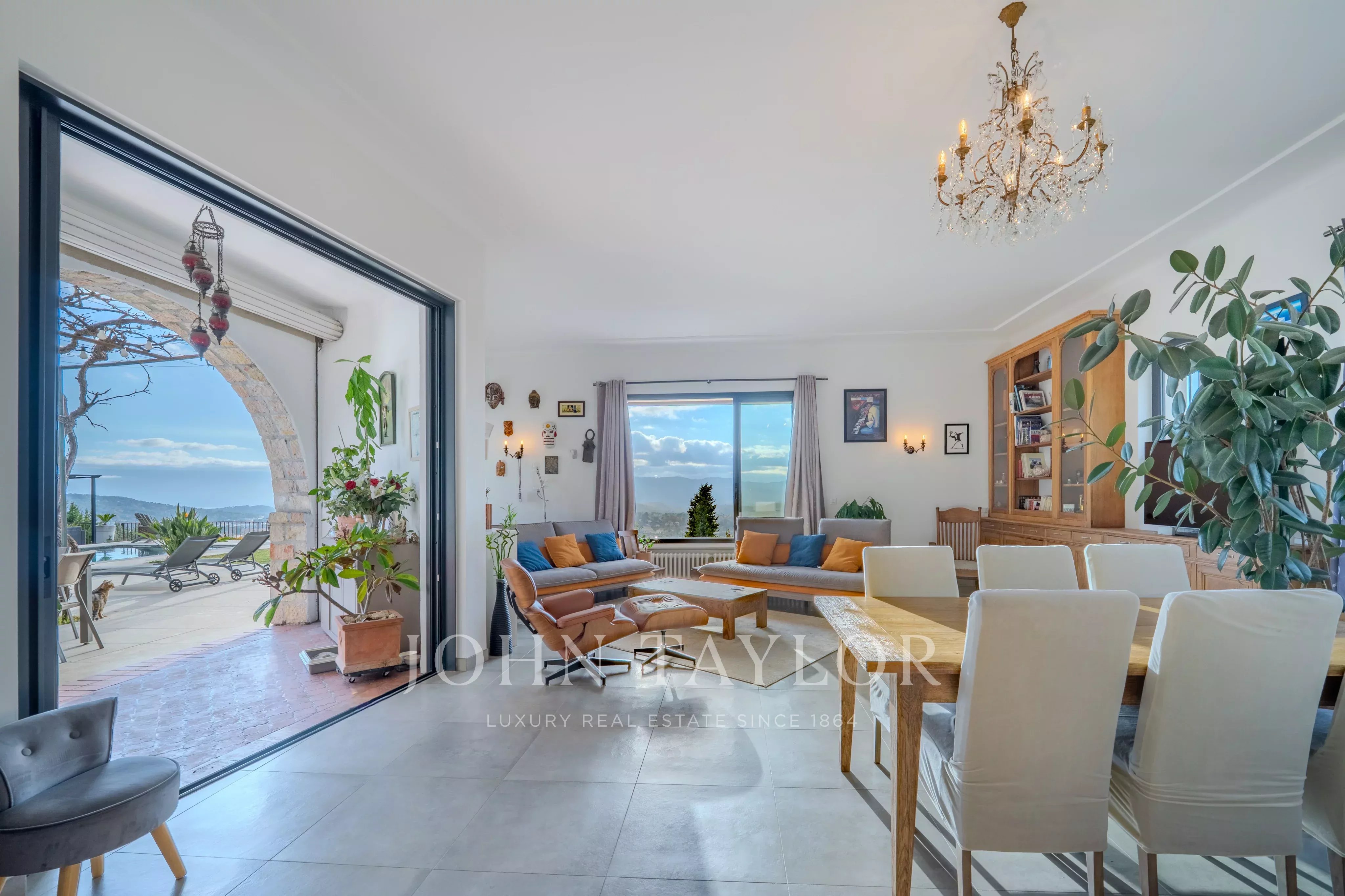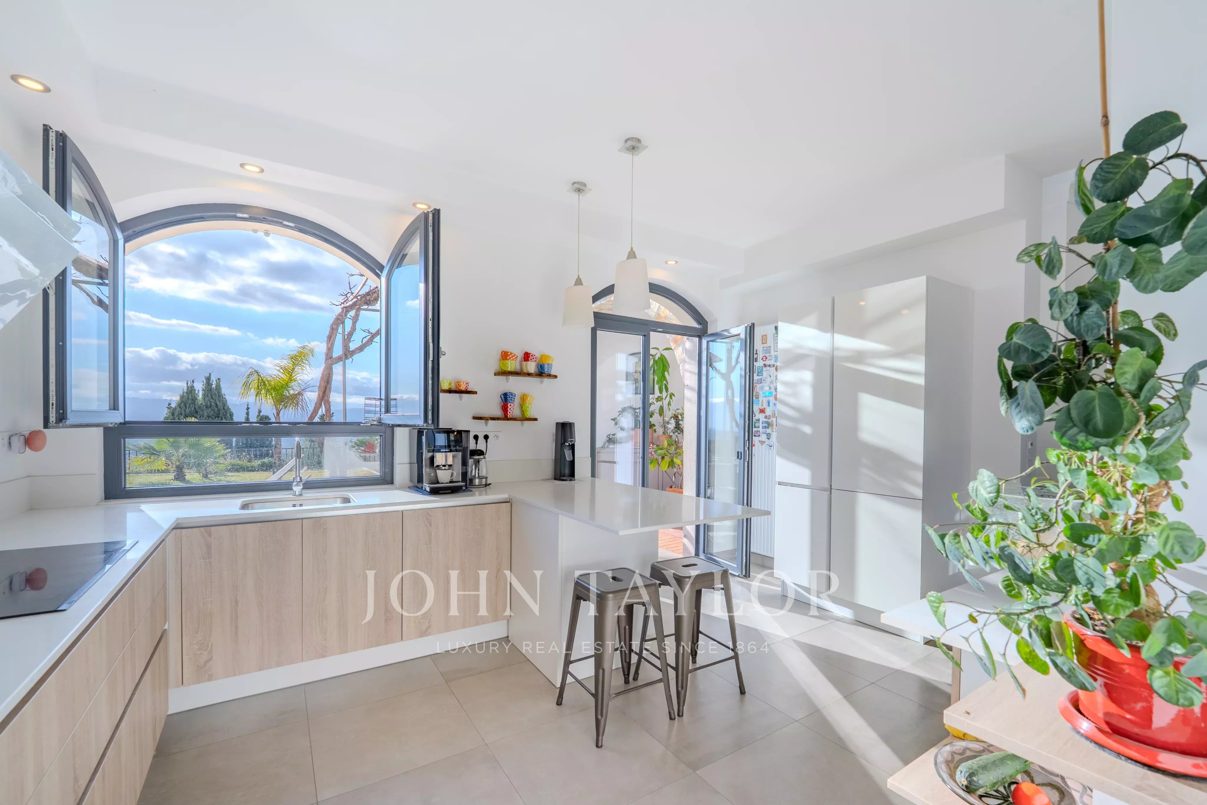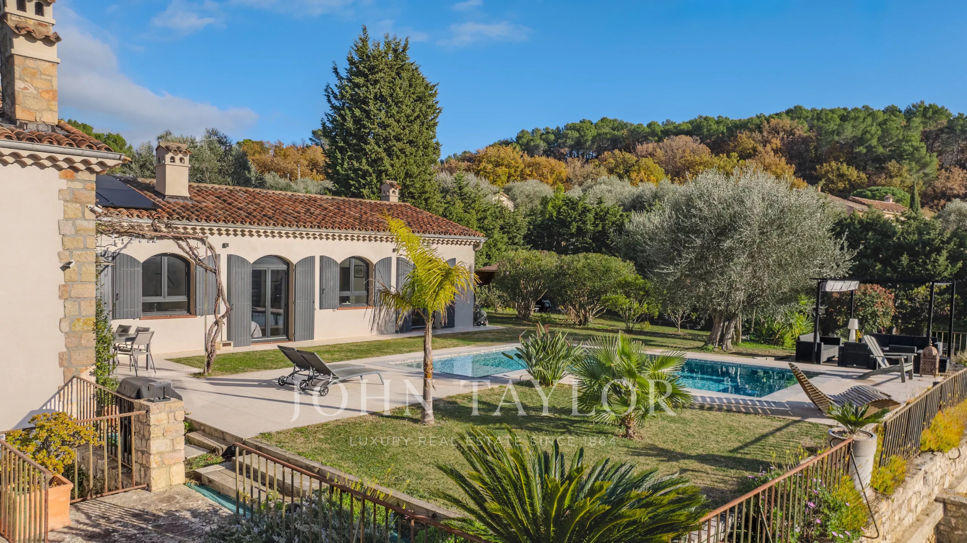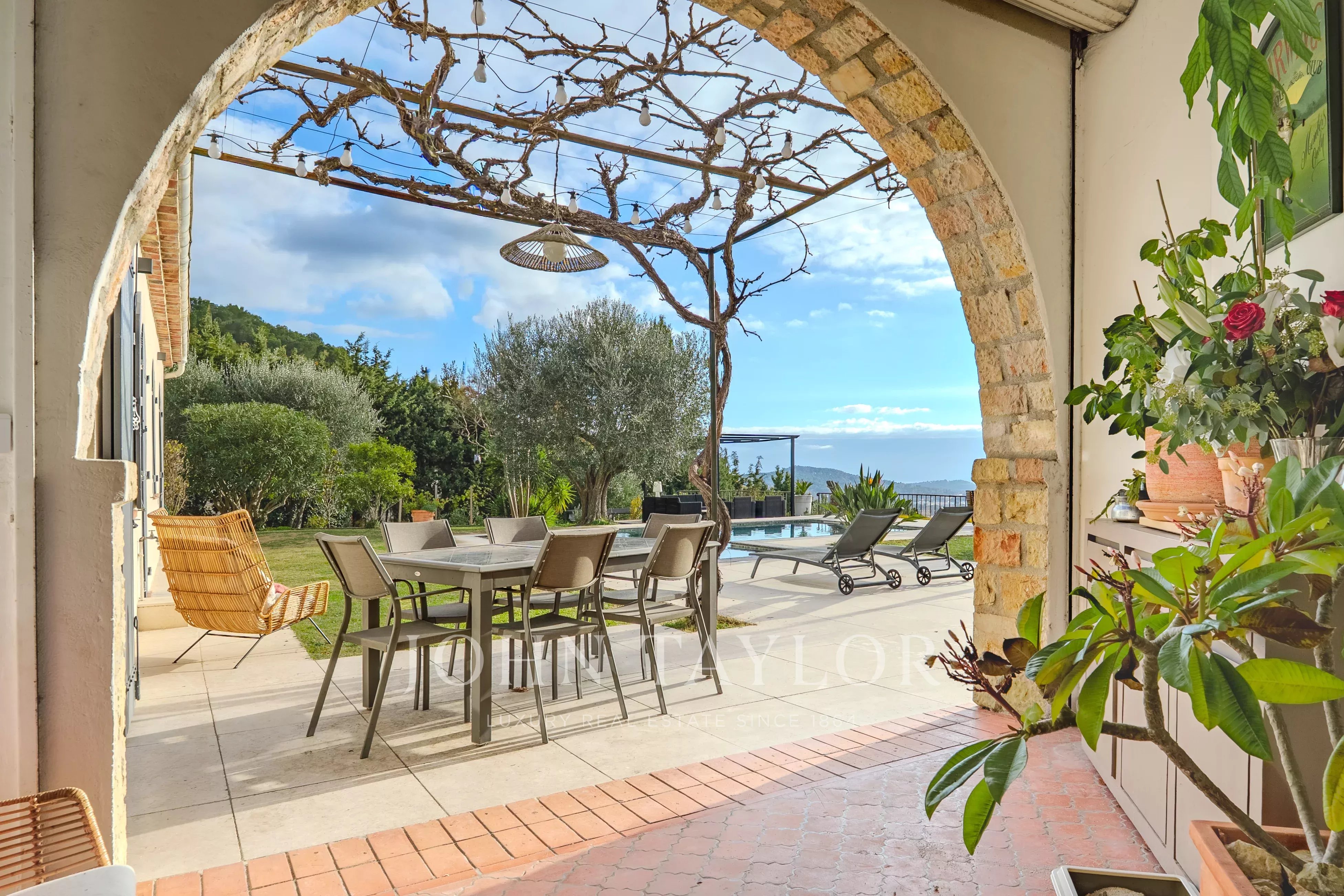 A pochi minuti dal villaggio di Valbonne, questa proprietà ristrutturata di 217 m2 con piscina e jacuzzi vi sedurrà con la sua spettacolare vista panoramica, dalla baia di Cannes alle montagne di Grasse, il tutto immerso in un terreno paesaggistico di circa 3500 m2.
