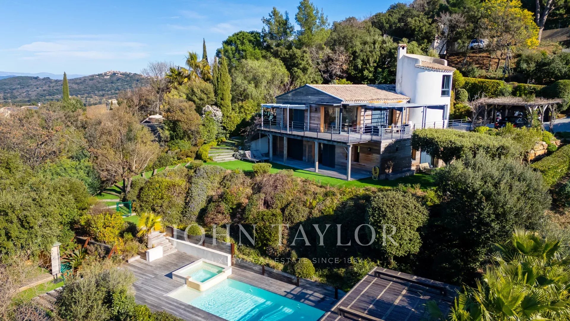 Adagiata su una collina, la proprietà è esposta a sud e offre una vista eccezionale sul Mar Mediterraneo, sulle Isole d'Oro e sul porto di Cavalaire-sur-Mer.