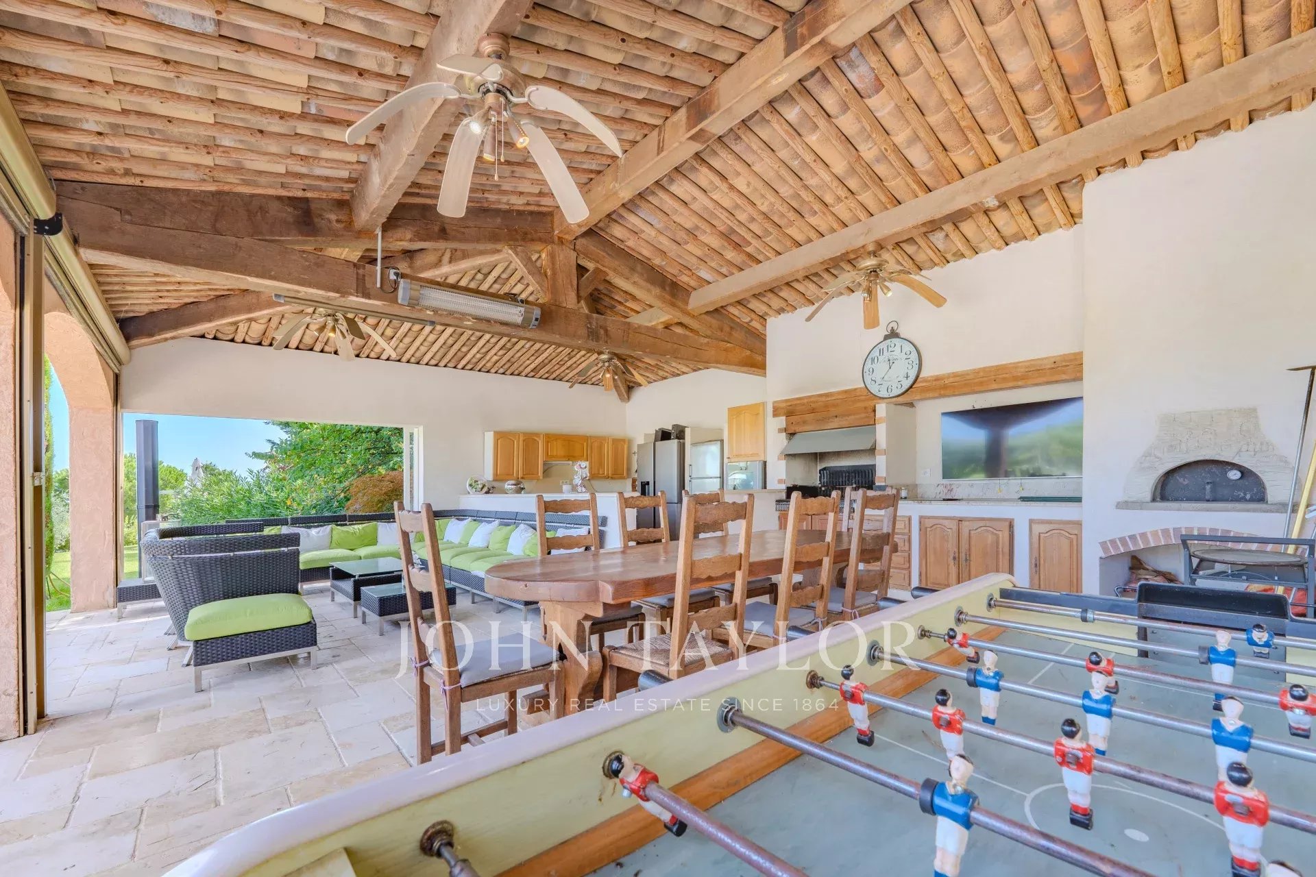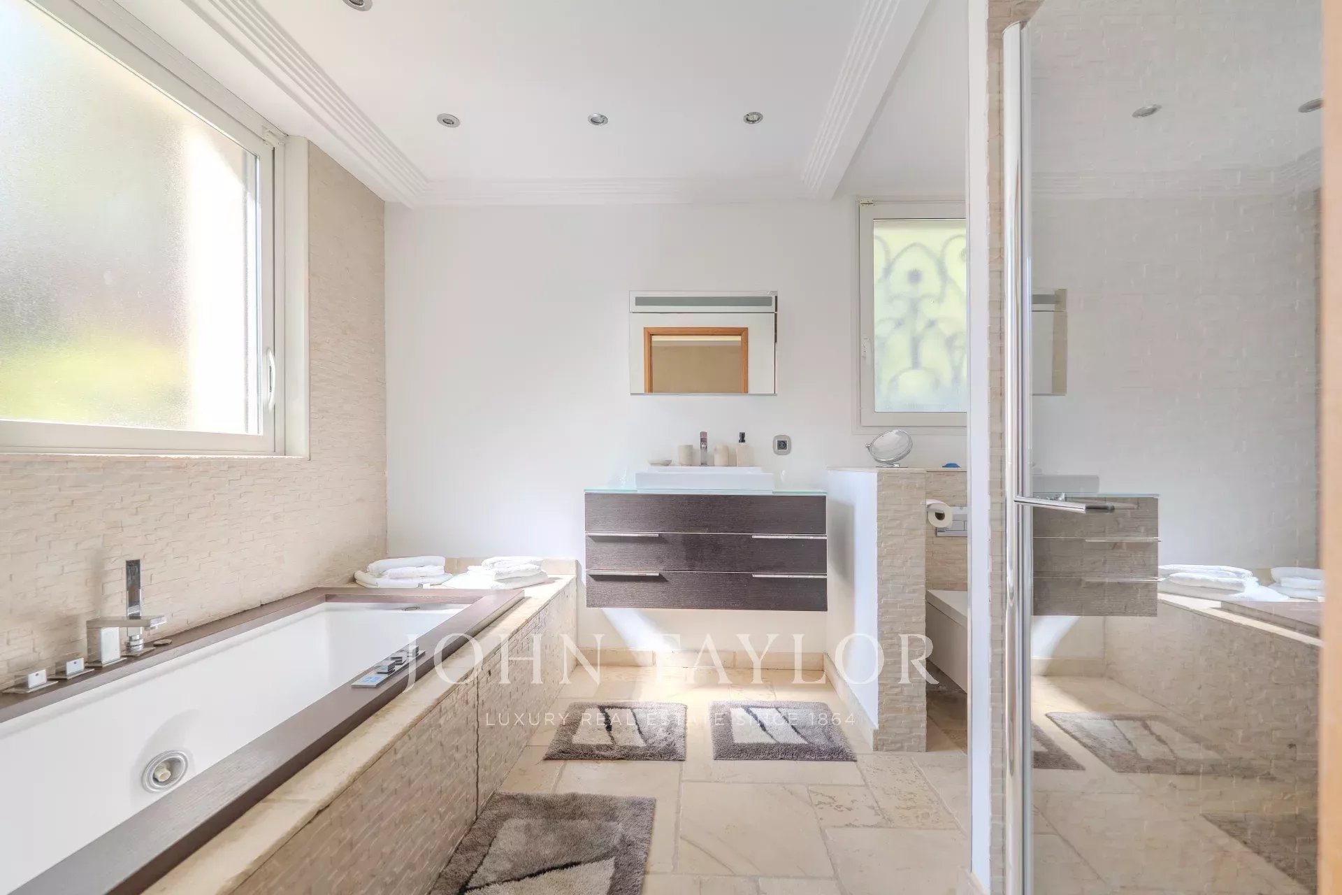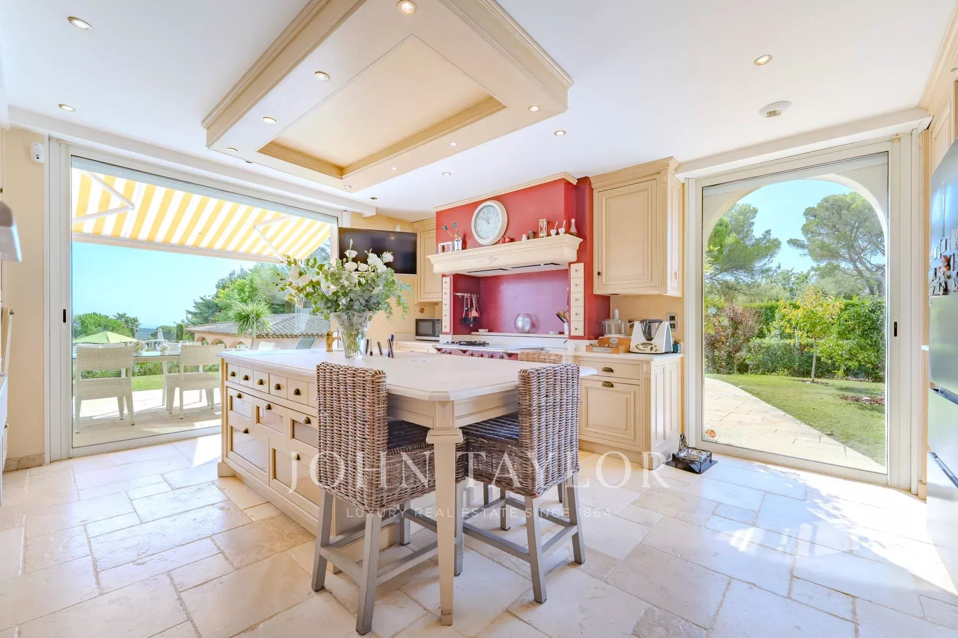 Situata a Mougins, in una delle zone più residenziali, a soli 5 minuti dal campo da golf di Mougins e a 15 minuti dalla famosa Croisette di Cannes, rimarrete affascinati da questa proprietà e dal suo magnifico giardino con una sontuosa piscina a forma libera con jacuzzi e una pool house completamente attrezzata con salotto e cucina estiva.
