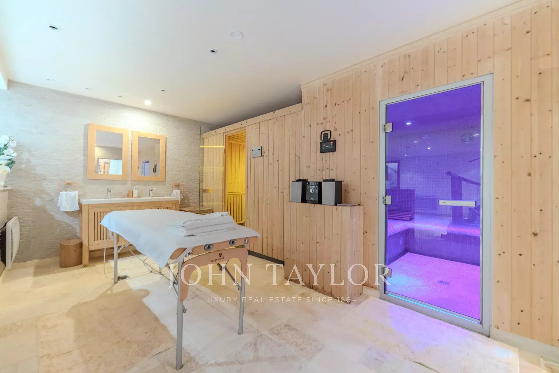 Tutte le stanze di questa sontuosa villa sono spaziose e lussuosamente arredate, con 6 suite ciascuna con bagno e toilette privati, doppio salone, sala da pranzo, cucina a pianta aperta, lavanderia/retrocucina, ufficio, area bar, sala cinema, discoteca per un massimo di 100 persone, sala fitness, hammam, sala massaggi e sauna.