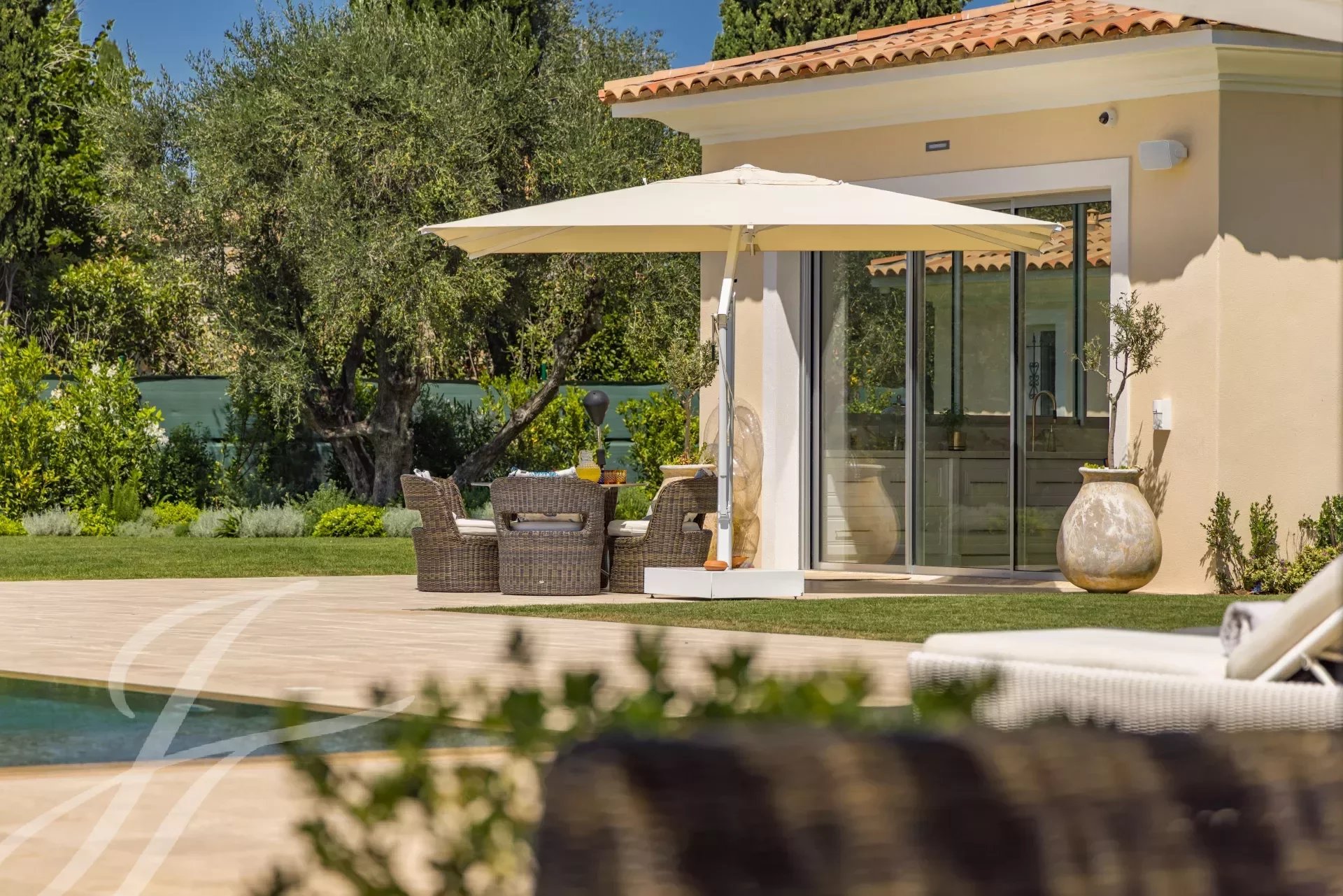 Una magnifica Bastide provenzale con arredi interni ultra-contemporanei, costruita secondo i più alti standard, situata nel ricercato quartiere residenziale di Mougins. Cannes (19 minuti) Monaco (58 minuti) Aeroporto internazionale di Nizza (27 minuti), Aeroporto di Cannes Mandelieu (15 minuti).