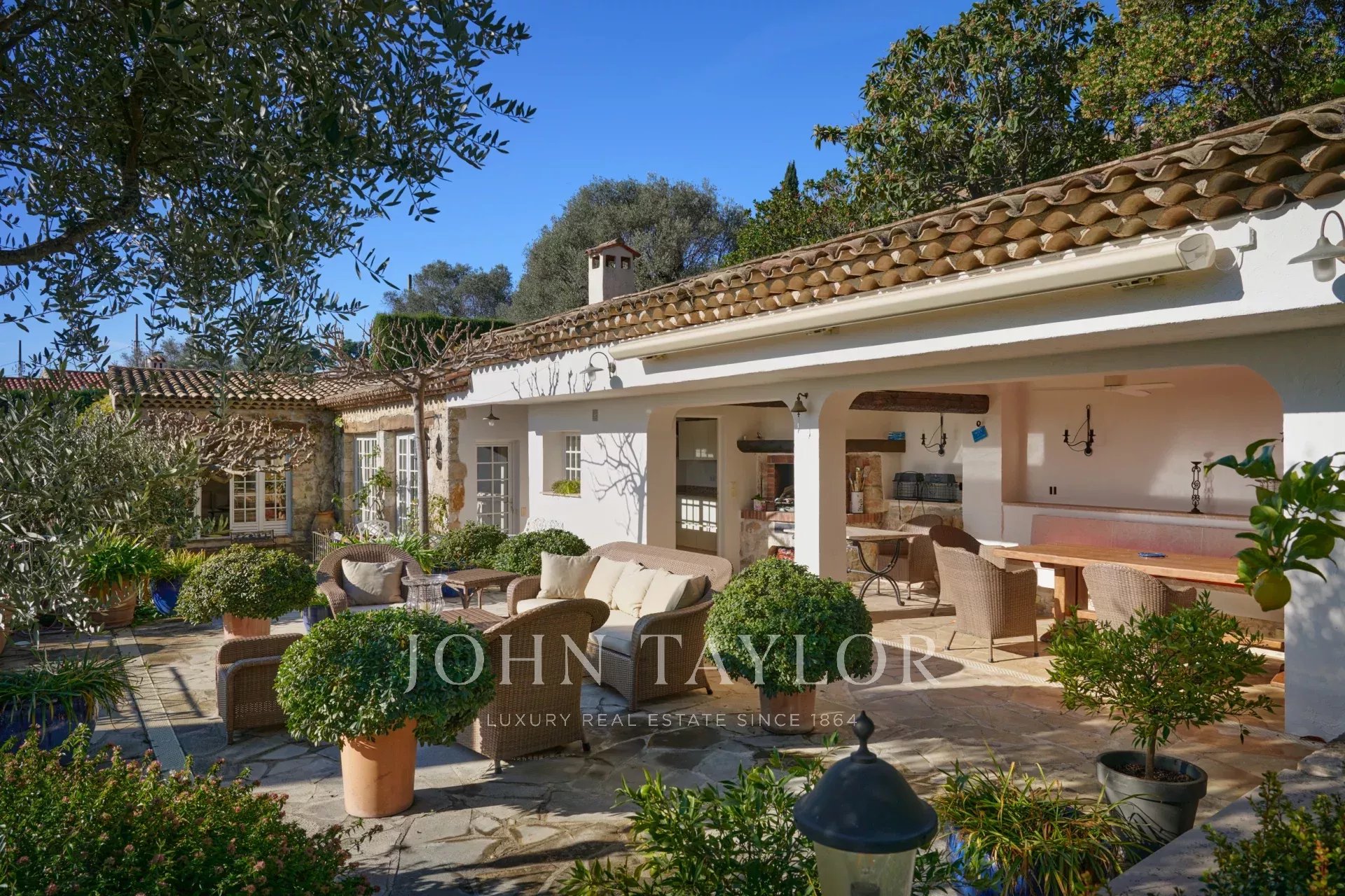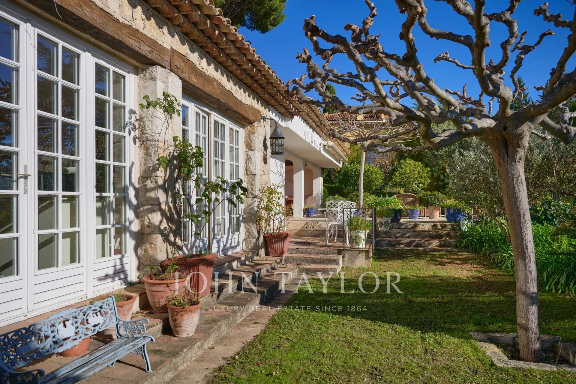 I rigogliosi giardini che circondano la proprietà aggiungono una dimensione magica. Ulivi secolari, aiuole, un roseto, un frutteto e una piscina riscaldata creano un ambiente idilliaco per momenti di relax e divertimento sotto il sole della Costa Azzurra. Le viste panoramiche sulle verdi colline di Mougins, sul mare e sulle montagne dell'Esterel completano questa esperienza eccezionale.