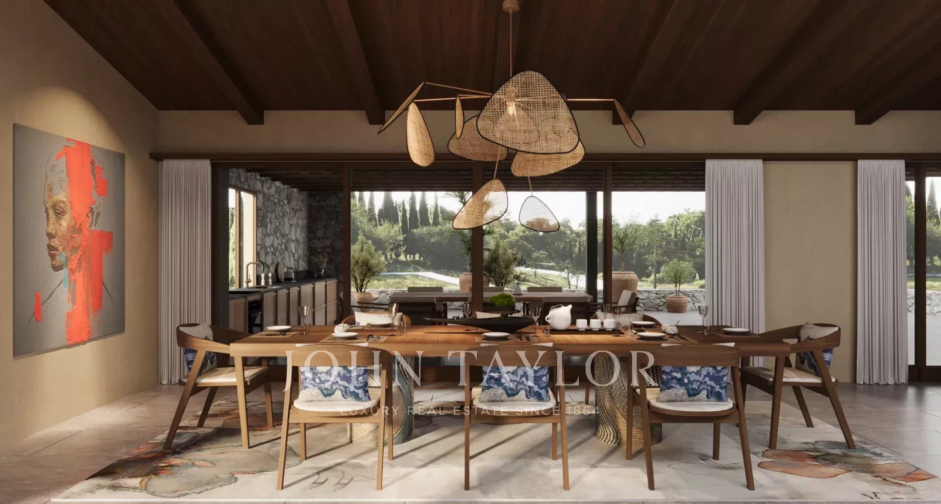Con una superficie di circa 772 m2, la proprietà offre volumi generosi, con soffitti alti, un ampio salone di rappresentanza, 7 camere da letto con bagno privato e numerosi annessi, tra cui una spa privata, una palestra e un ampio garage.