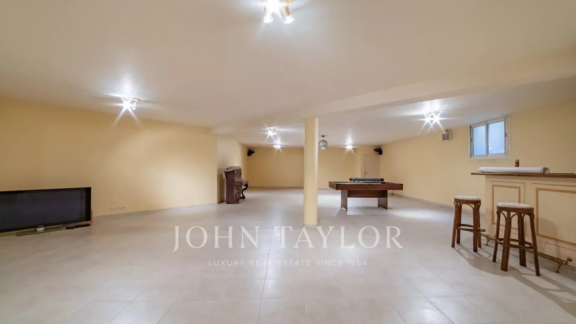 Un enorme seminterrato con un cortile all'inglese di 300 m², una sala giochi, una cantina, un ufficio o un magazzino e un grande garage con spazio per 4 auto.