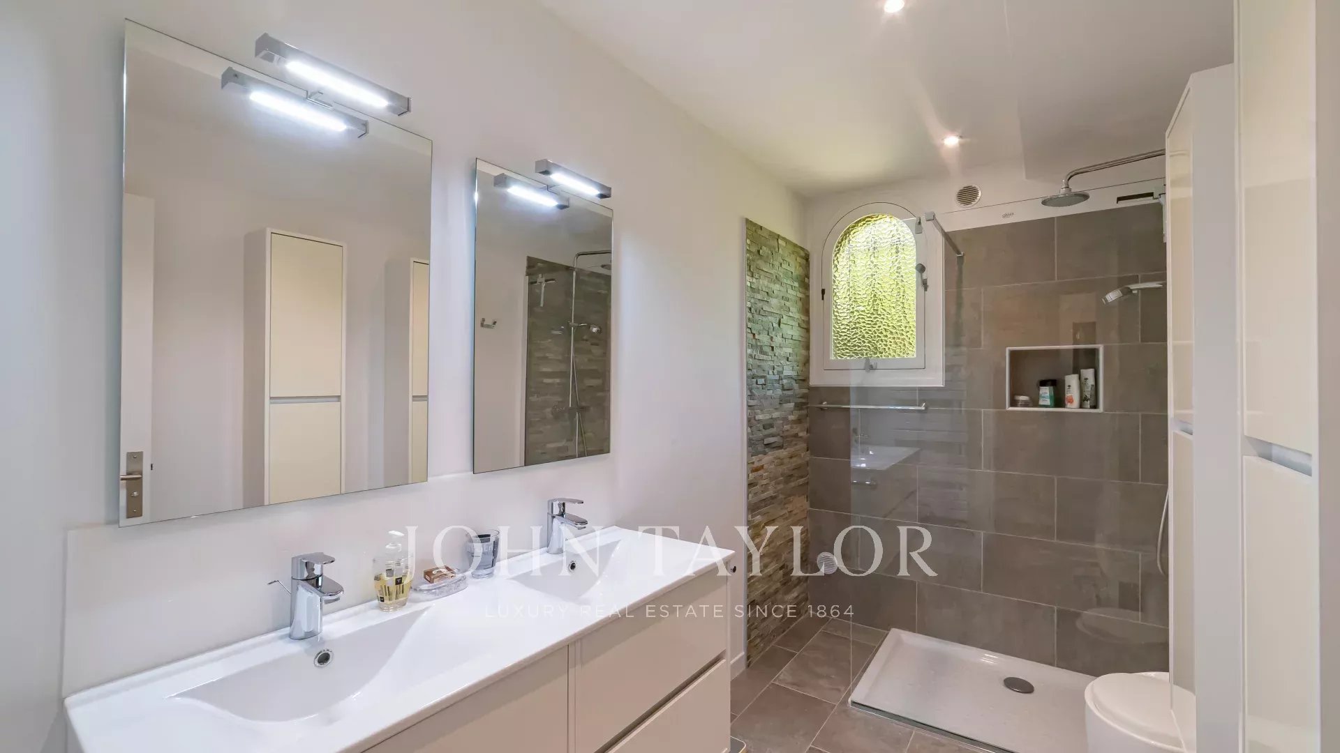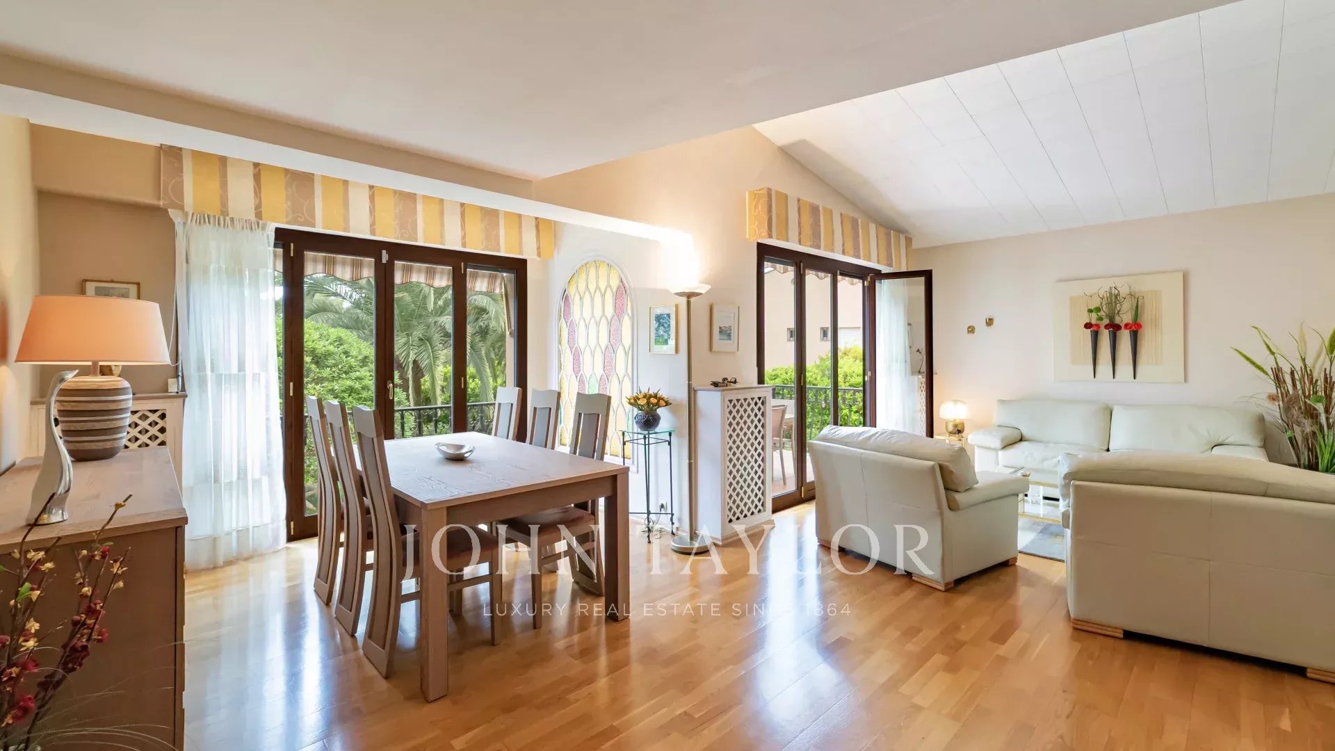La proprietà comprende due appartamenti: un quadrilocale di 126 m² composto da un soggiorno/sala da pranzo aperto su una terrazza con soppalco, una cucina separata completamente attrezzata, tre camere da letto e un bagno, e un trilocale di 72 m² composto da un soggiorno/sala da pranzo aperto sul giardino, una cucina separata completamente attrezzata, due camere da letto e un bagno.