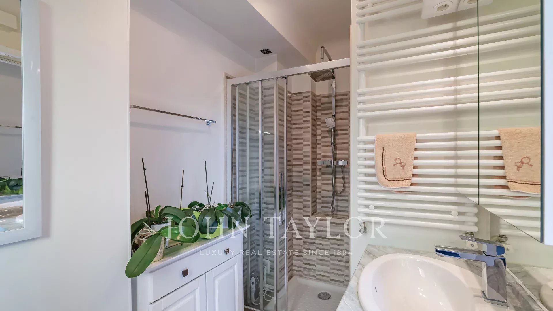 La proprietà è completata da un ripostiglio adiacente a cui si può accedere anche dall'esterno, una piscina riscaldata, un garage doppio di 37 m² e la possibilità di parcheggiare diversi veicoli. Una proprietà mantenuta in modo impeccabile, con infissi e arredi di qualità, inserita in un elegante giardino paesaggistico di 1900 m² piantumato.