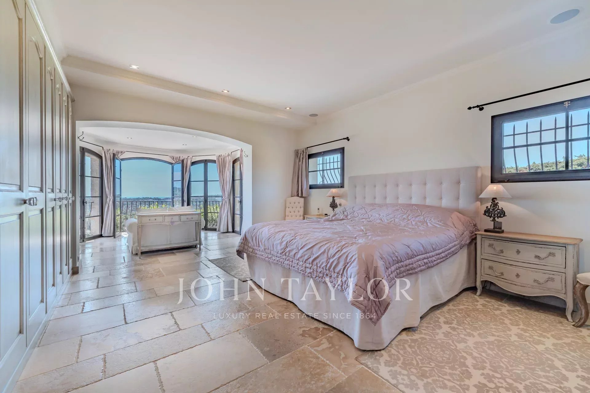 Di notte, cinque camere da letto accuratamente arredate, tra cui una vasta suite padronale con vista sul mare, offrono comfort e privacy. Una superba suite indipendente, accessibile dalla casa o da un ingresso privato con cancelli e parcheggio, è una vera risorsa per intrattenere famiglia e amici con lo standing di una villa privata.
