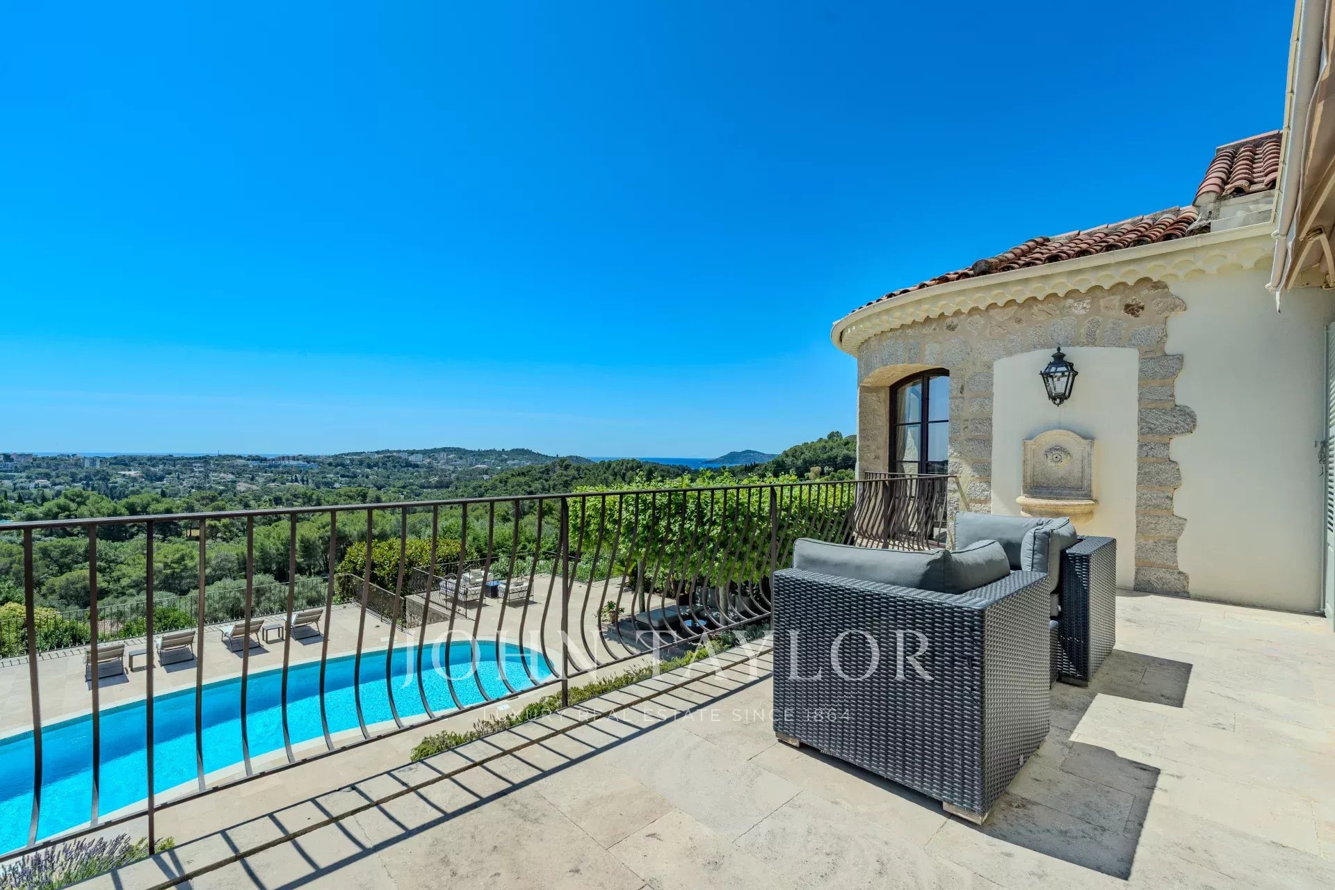 Situata nel cuore di una tranquilla e ricercata zona residenziale, questa caratteristica villa in pietra offre un raro mix di privacy e spettacolari viste sul mare. Affacciata sulla baia di Théoule, gode di un panorama mozzafiato, ideale per ammirare i fuochi d'artificio estivi in un contesto unico. Un luogo eccezionale, dove la raffinatezza incontra un'atmosfera calda e accogliente.