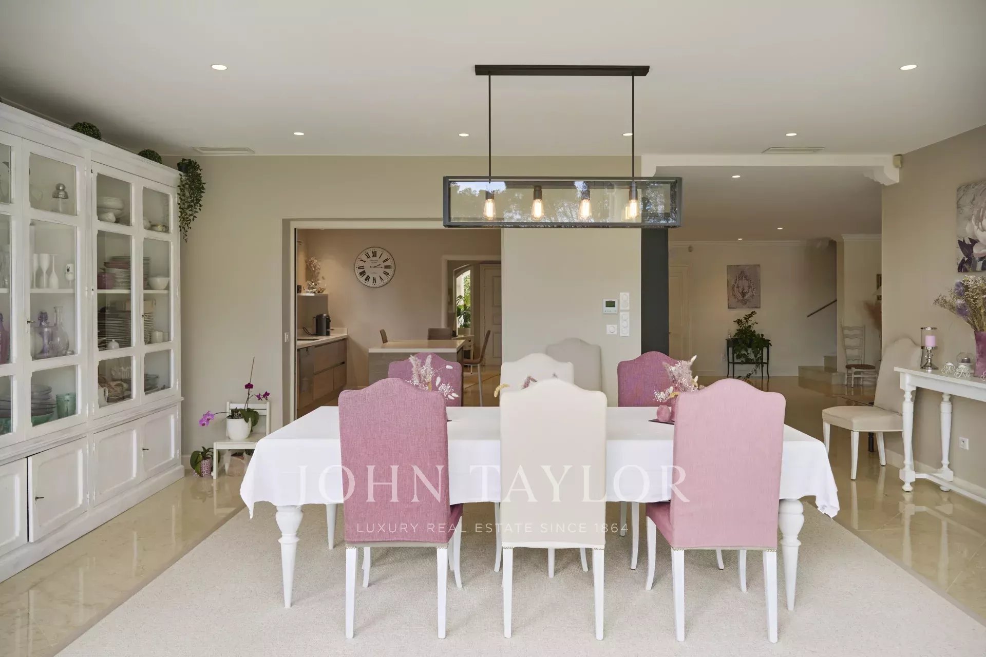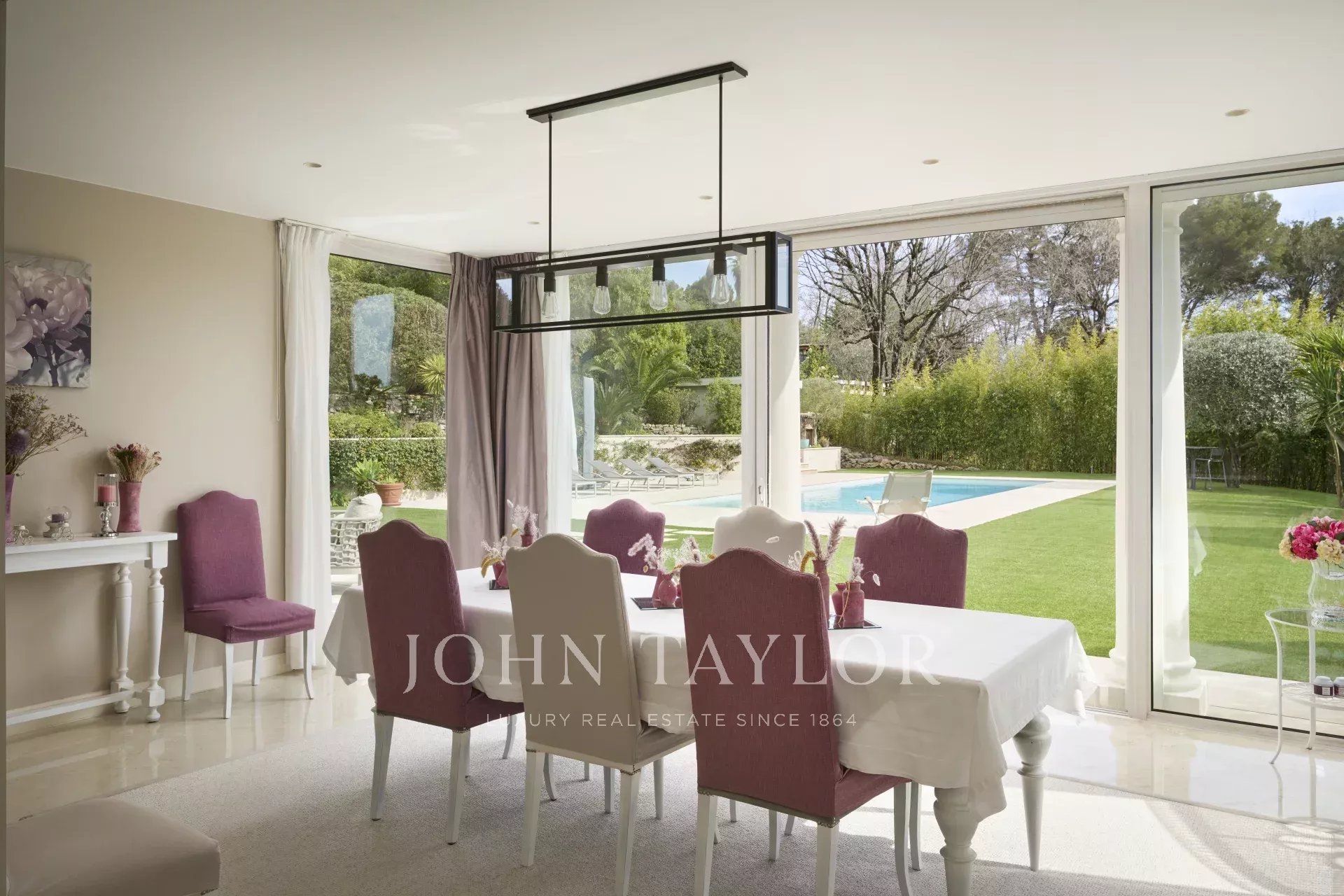 Il giardino di 3.800 m² è stato accuratamente paesaggistico e piantato con specie mediterranee. La proprietà gode di una vista straordinaria e senza ostacoli sul pittoresco villaggio di Mougins, che valorizza questo ambiente di vita eccezionale.