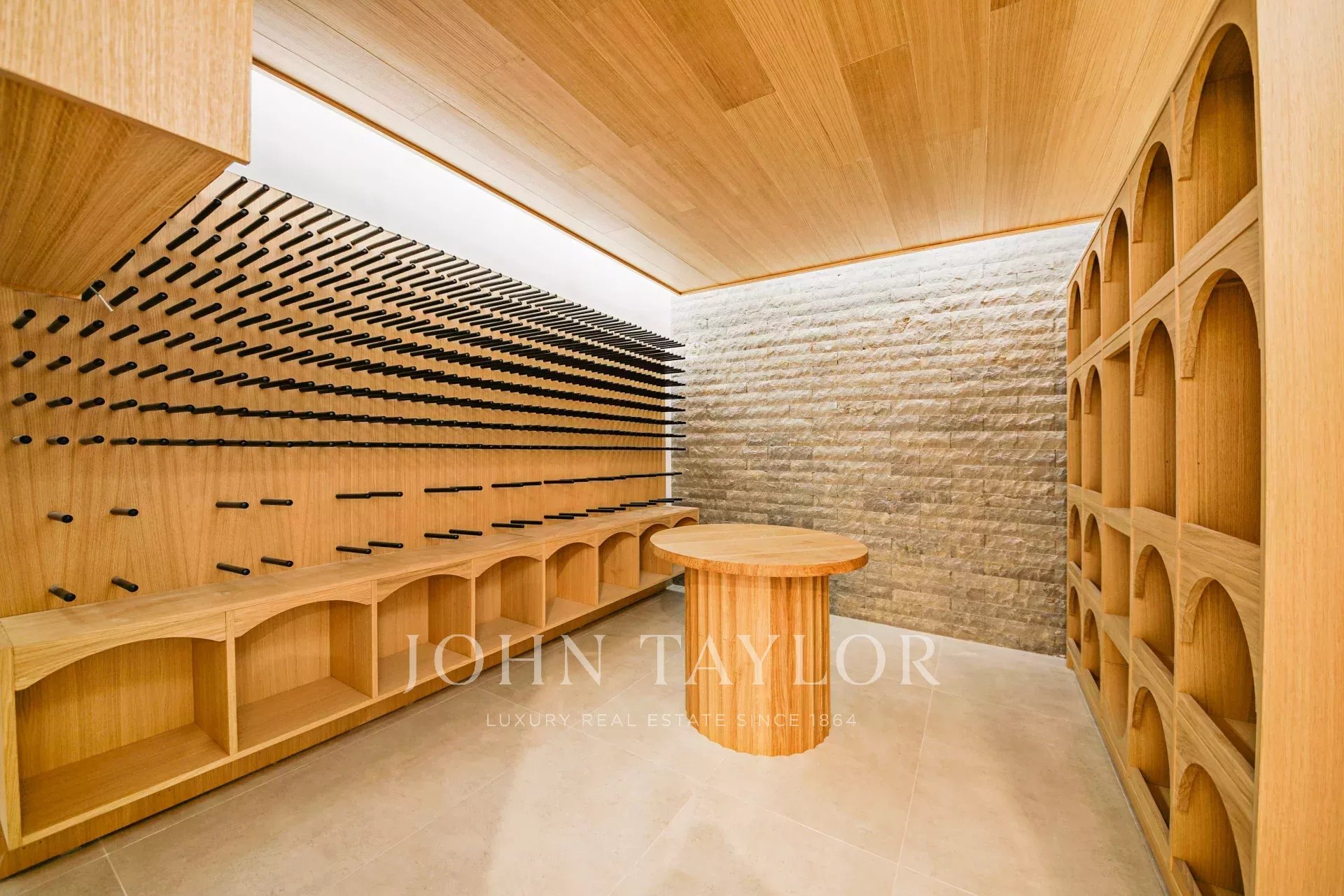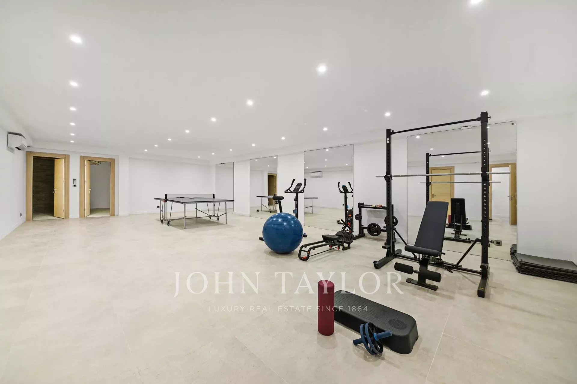 Presenta un luminoso soggiorno, quattro camere da letto, una funzionale cucina a pianta aperta, una generosa piscina e una terrazza circondata da un piccolo giardino. Il seminterrato ospita una palestra, una cantina completamente attrezzata, una sala cinema e una sauna, creando uno spazio dedicato al relax e al tempo libero.