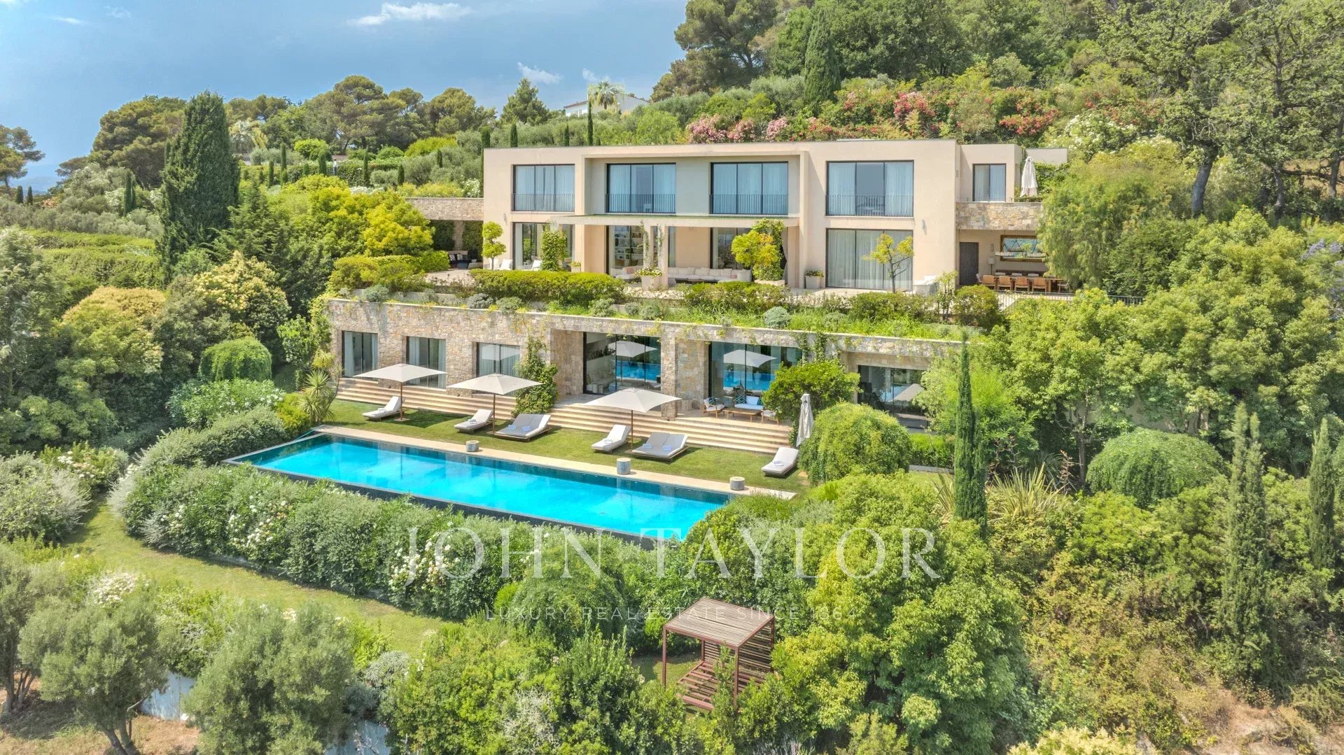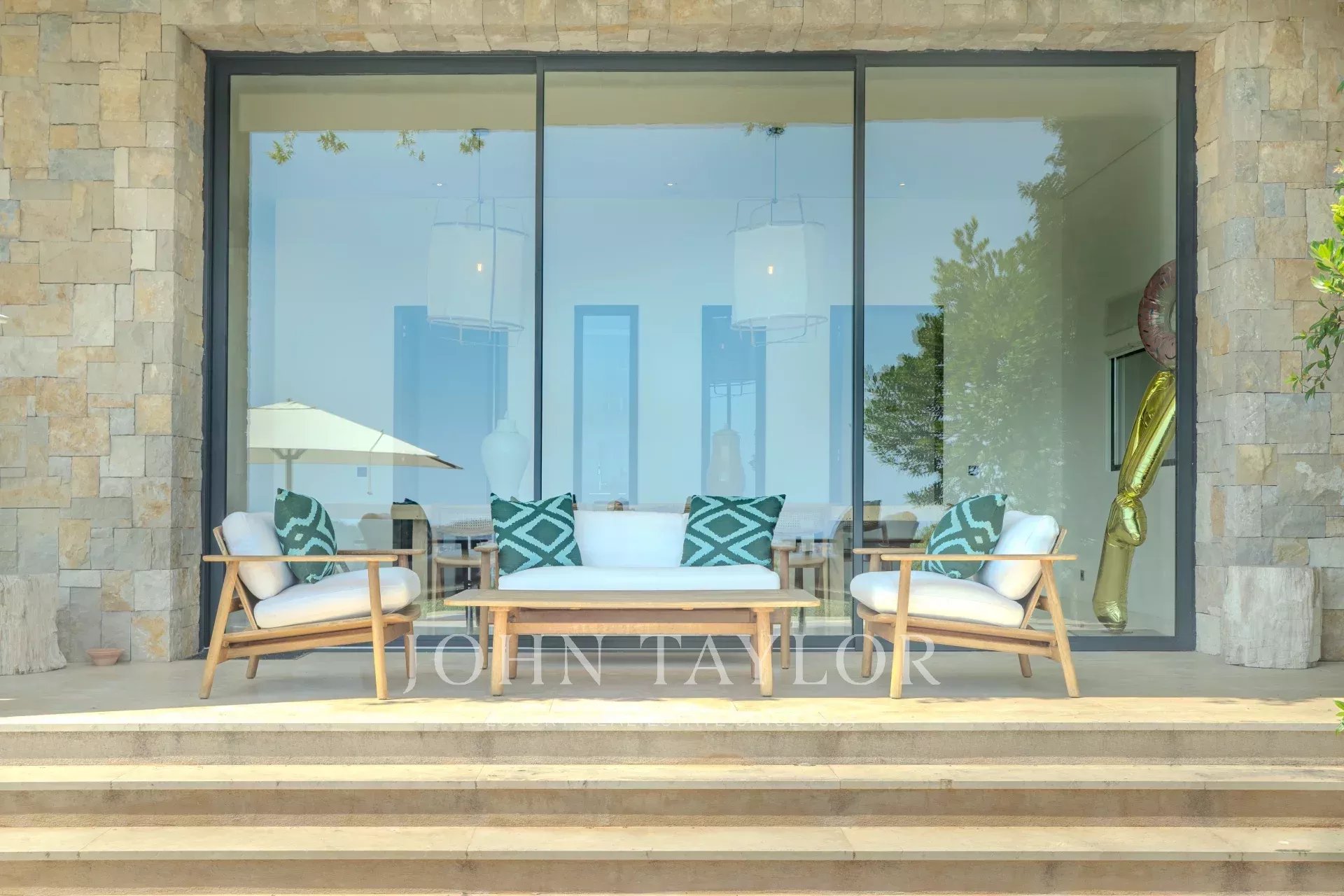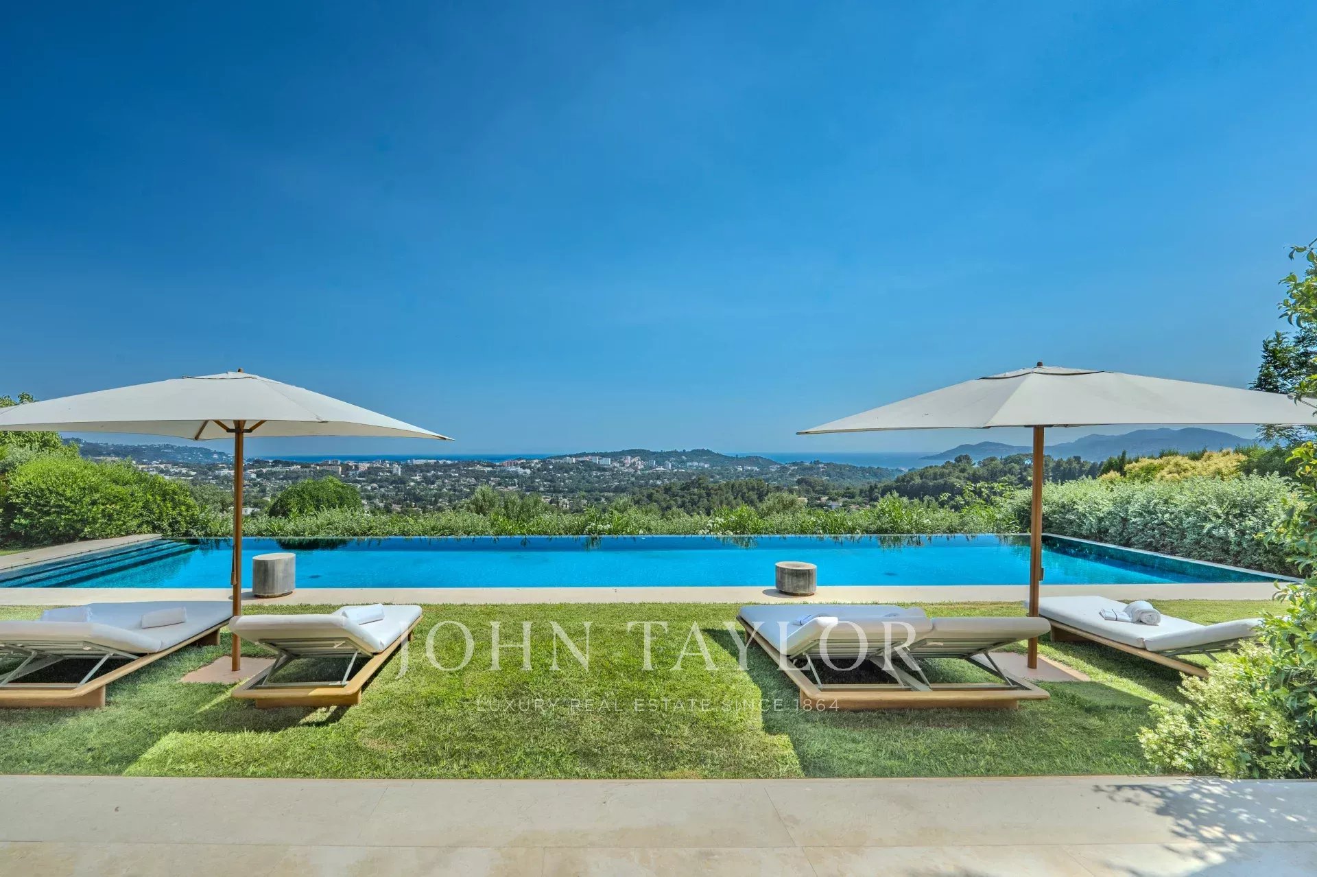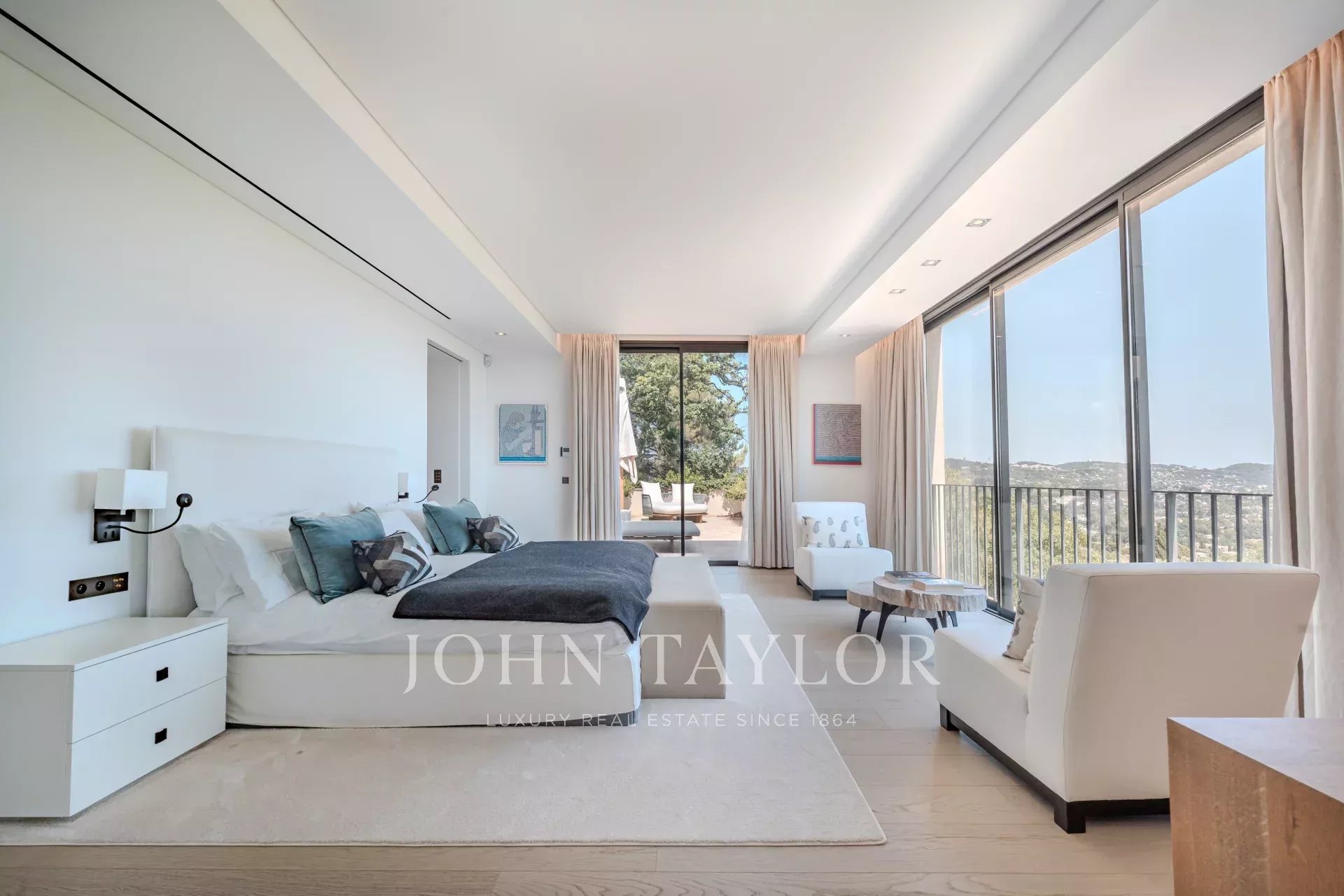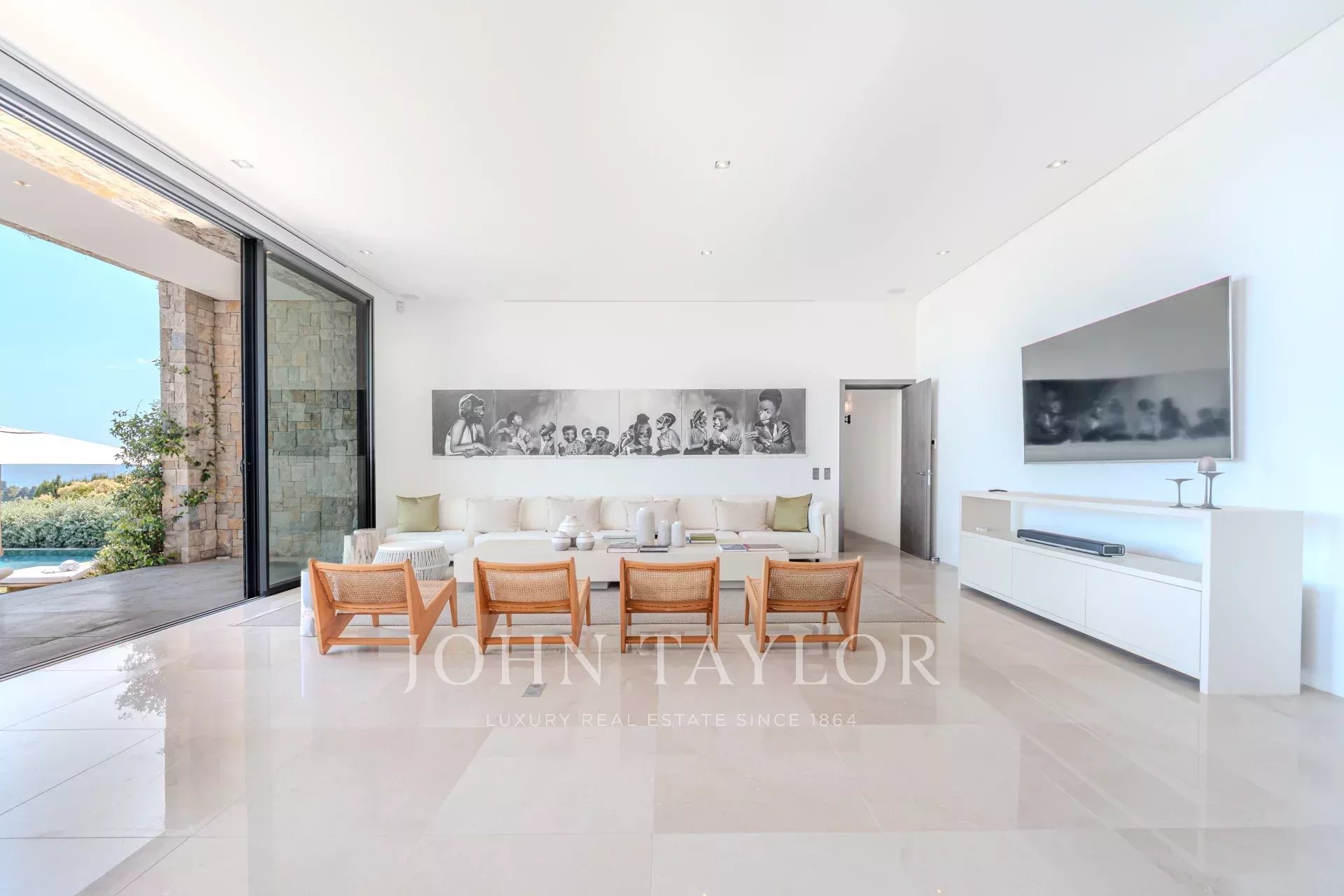 Dalle aree di ricevimento e dalle camere da letto fino alla pool house, si gode di una vista panoramica sul mare, sulle isole di Lérins, sulla baia di Théoule e sul massiccio dell'Estérel.