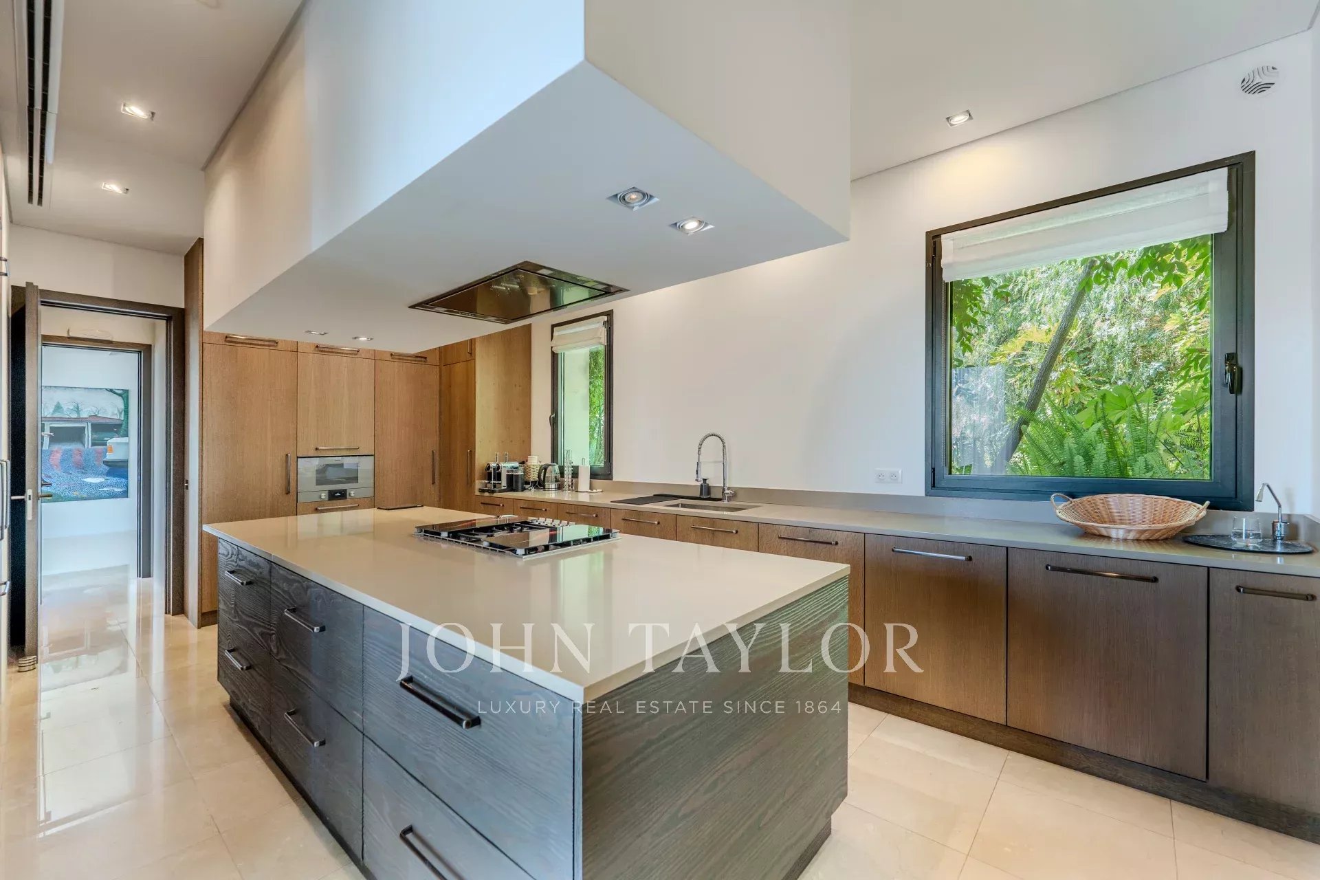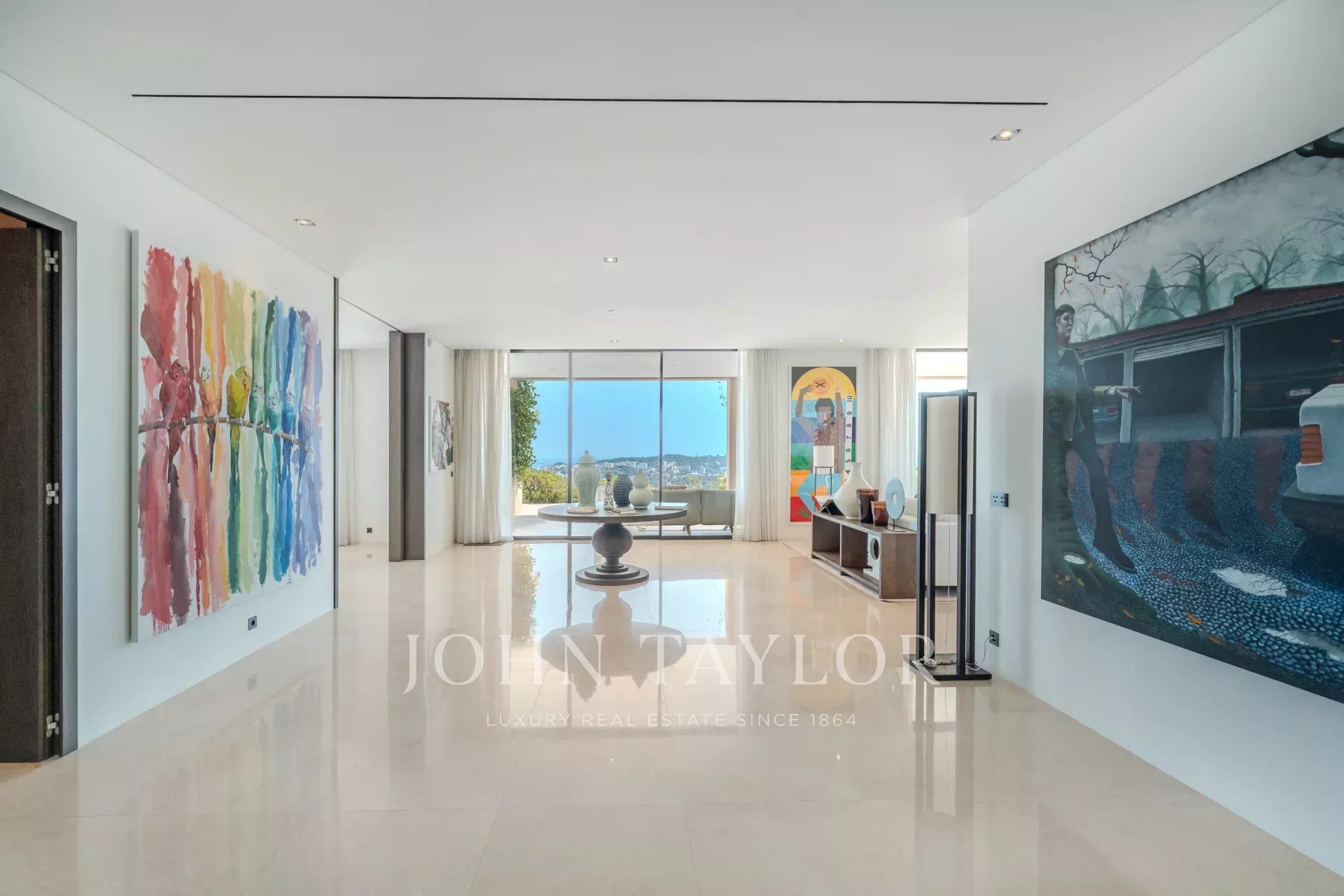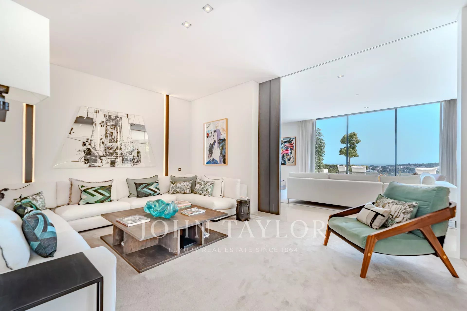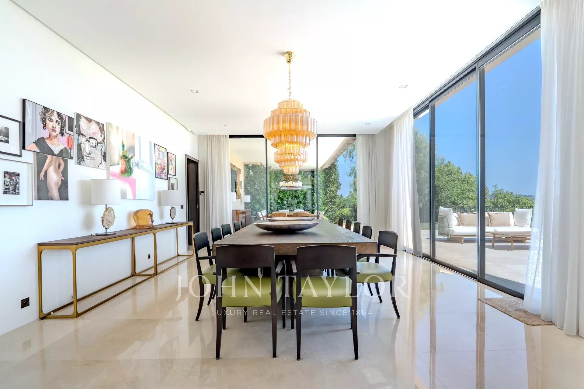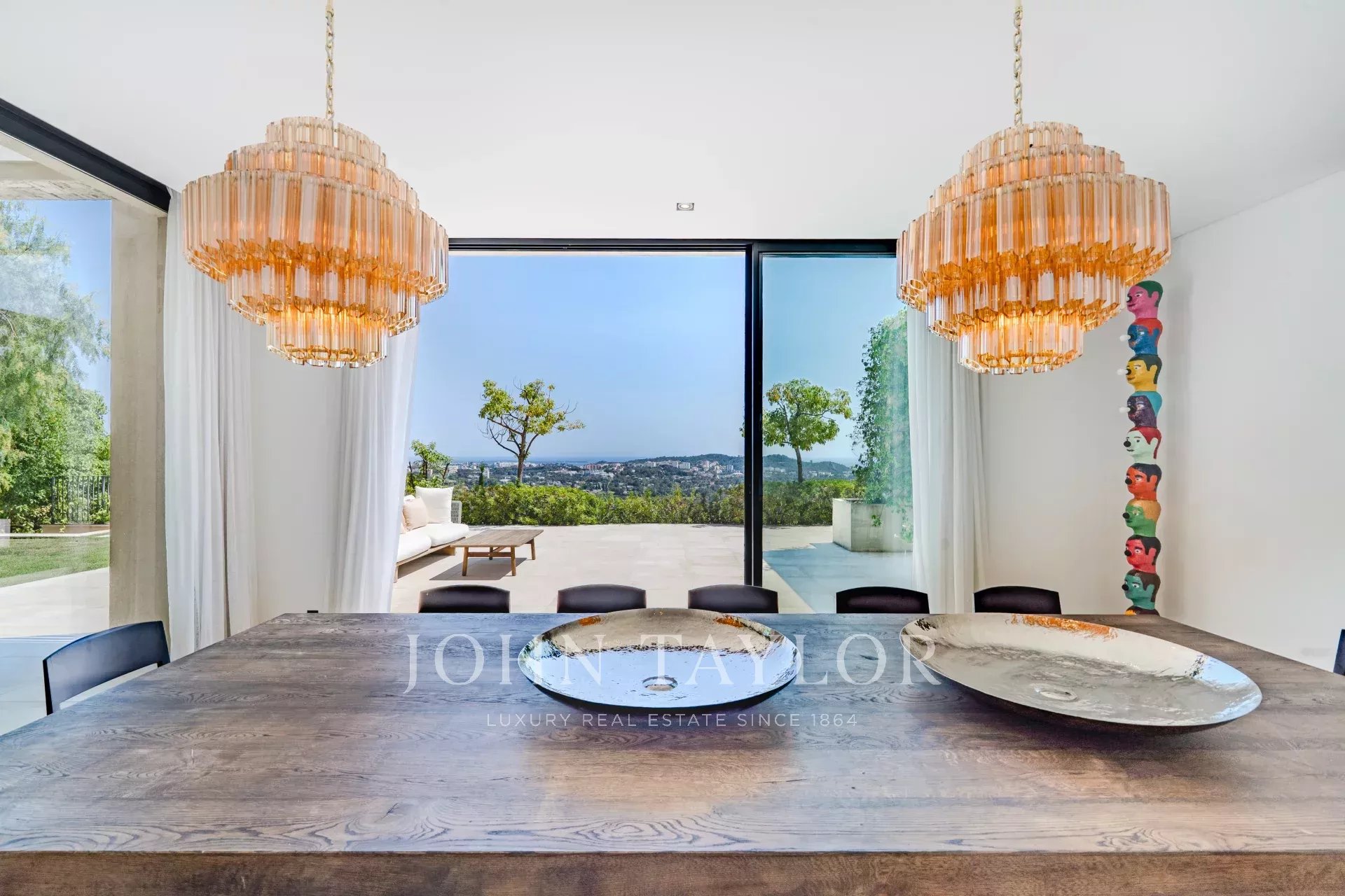 Dalle aree di ricevimento e dalle camere da letto fino alla pool house, si gode di una vista panoramica sul mare, sulle isole di Lérins, sulla baia di Théoule e sul massiccio dell'Estérel.