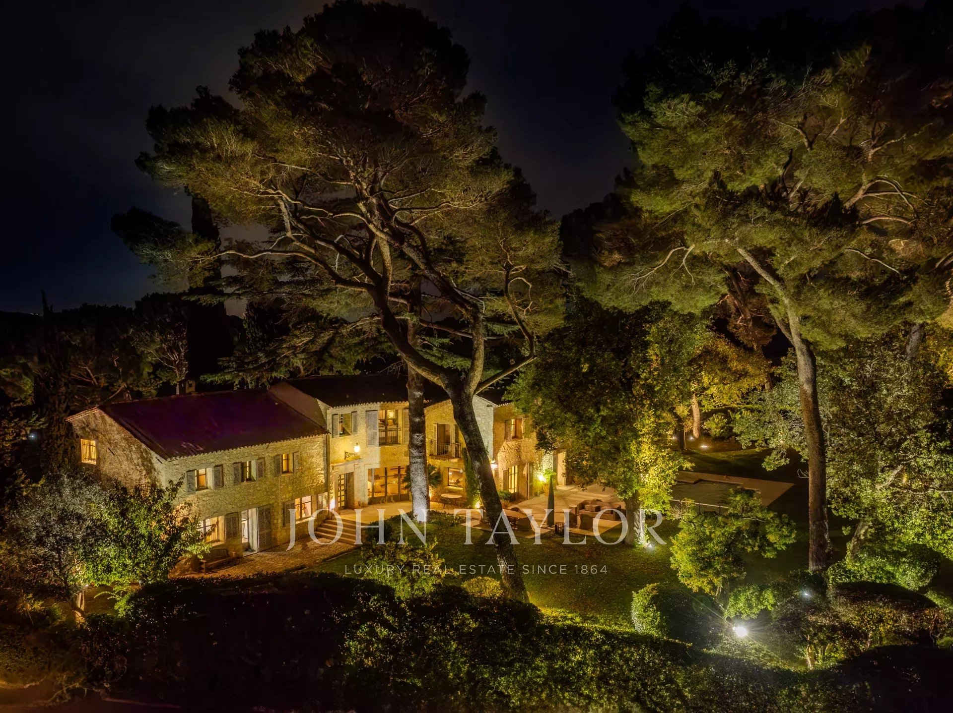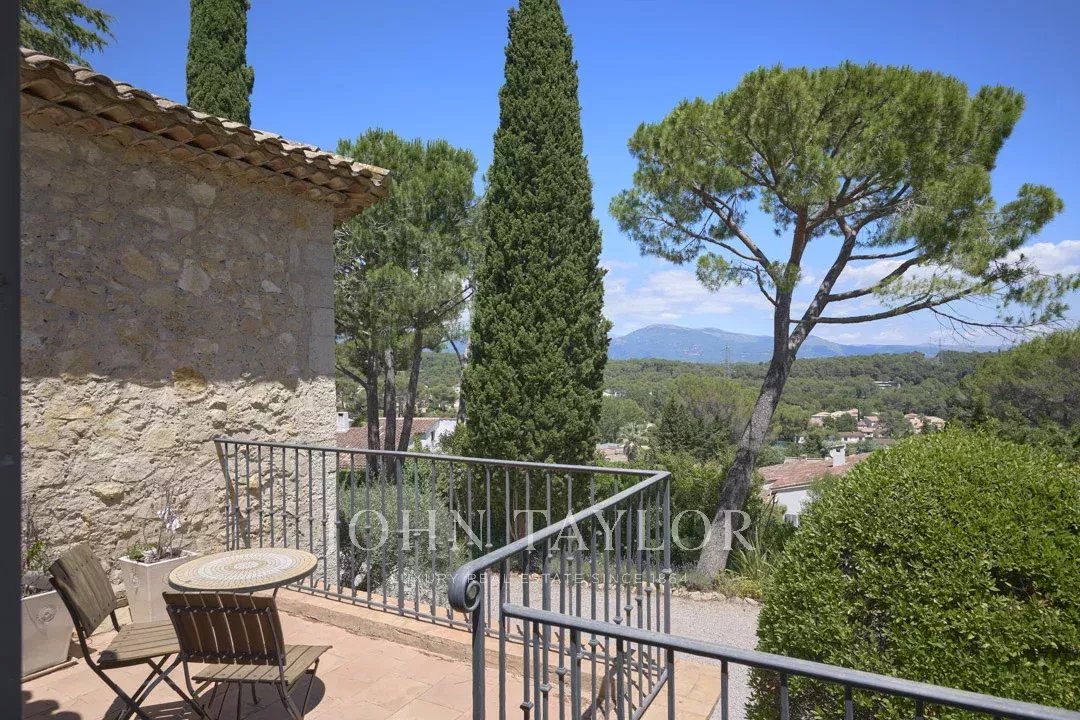 Situata in posizione ideale nel punto più alto della tenuta, la proprietà gode di una vista ininterrotta fino all'antico villaggio di Mougins.