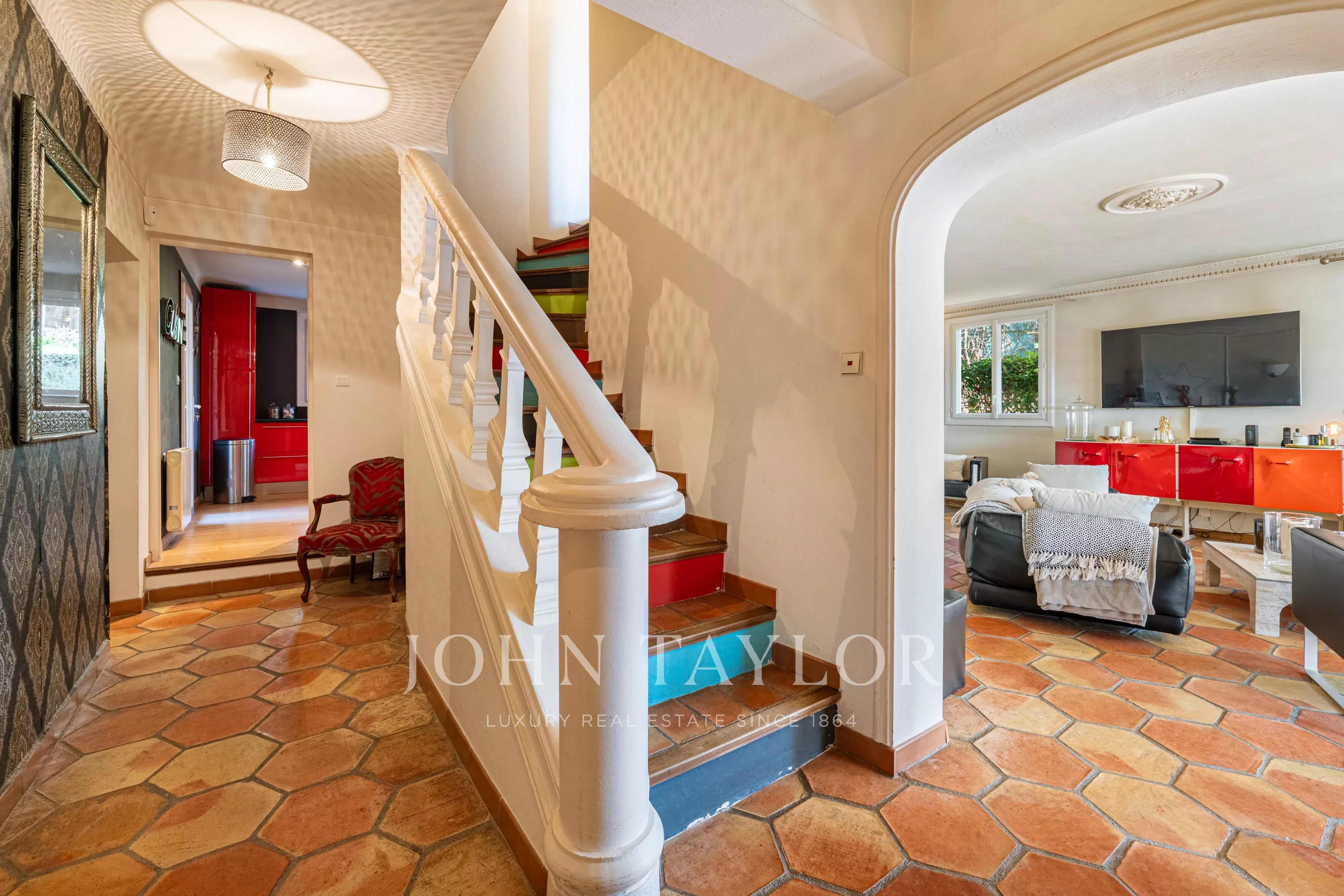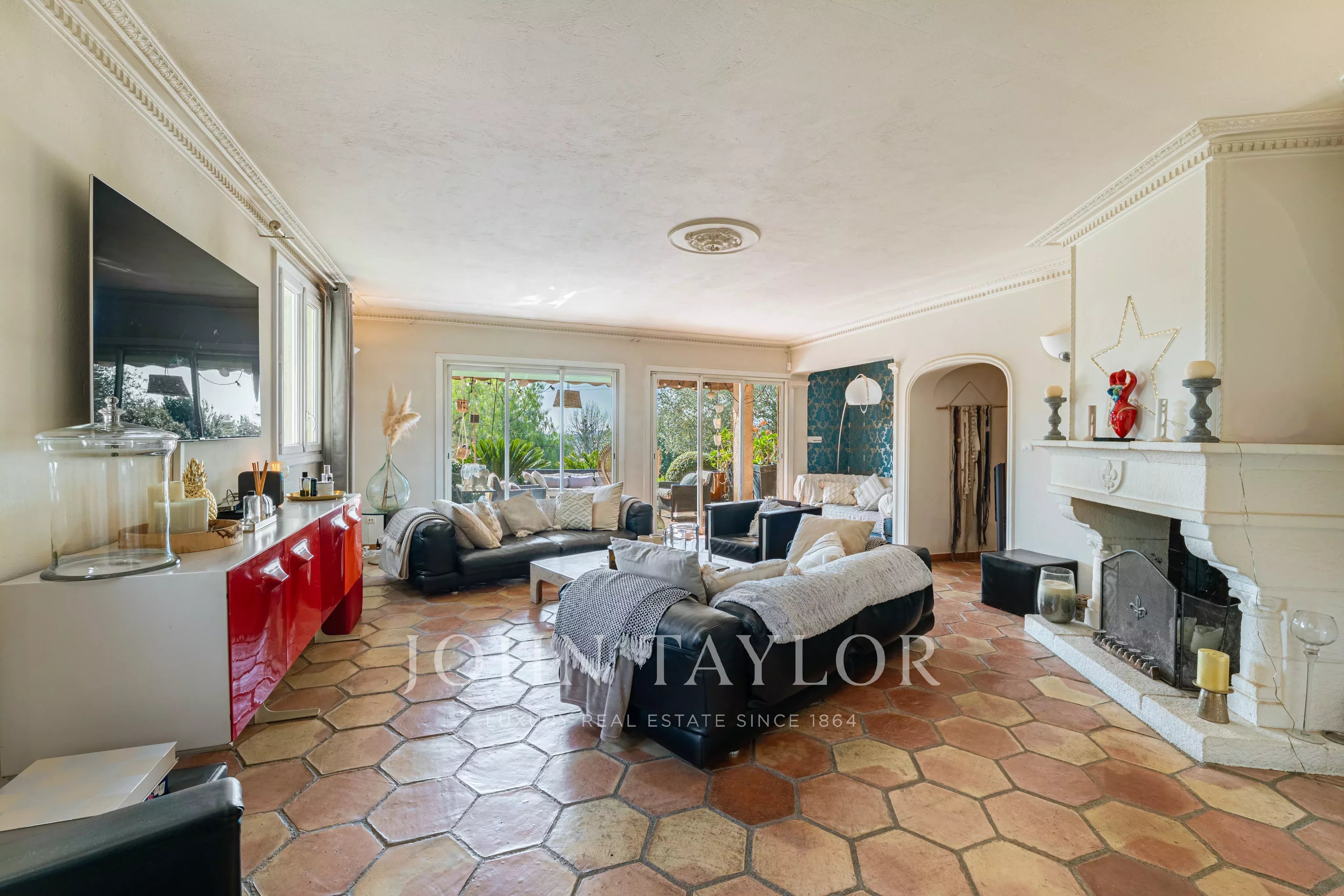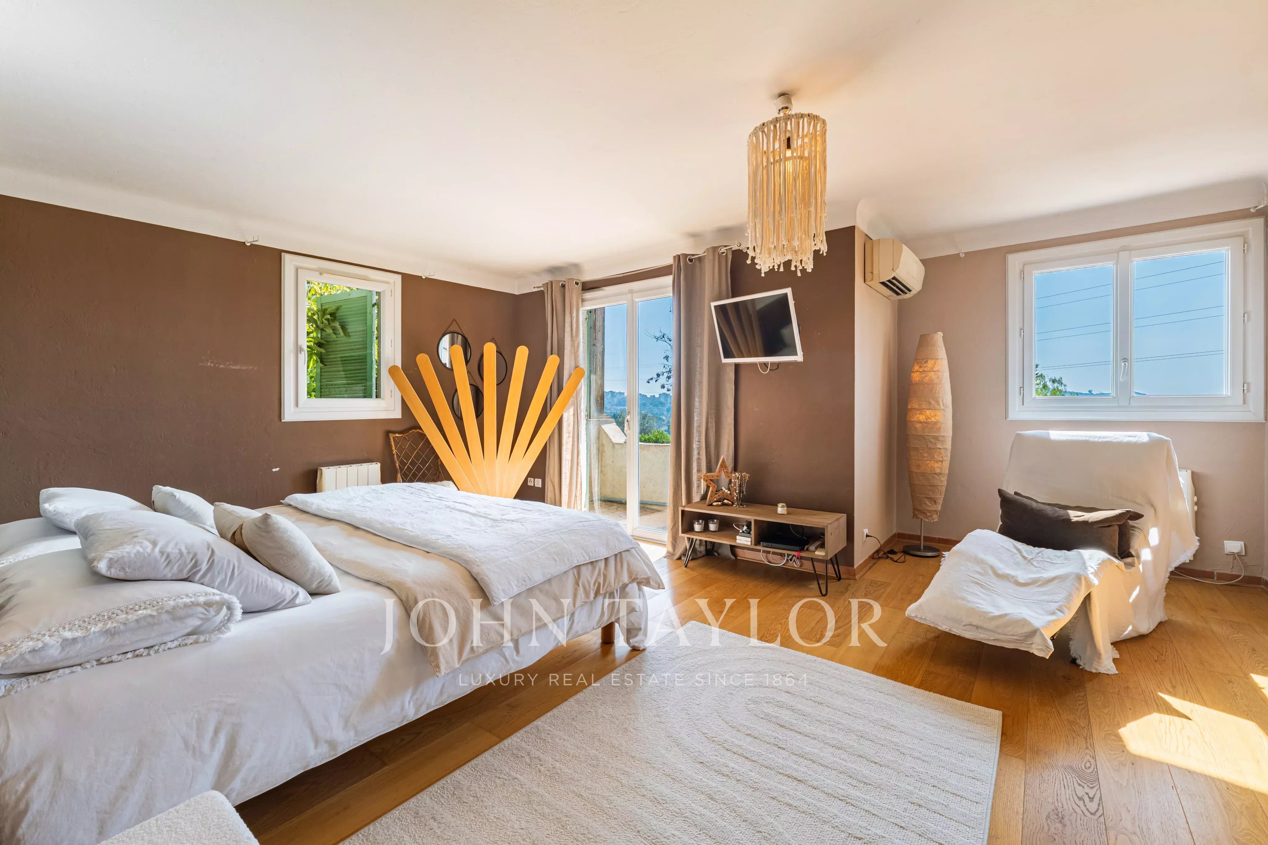 Situata in posizione tranquilla alla fine di un vicolo cieco in una zona residenziale ricercata, questa elegante villa di circa 220 m² gode di un'esposizione a sud, di una posizione dominante e di un rapido accesso a Cannes.