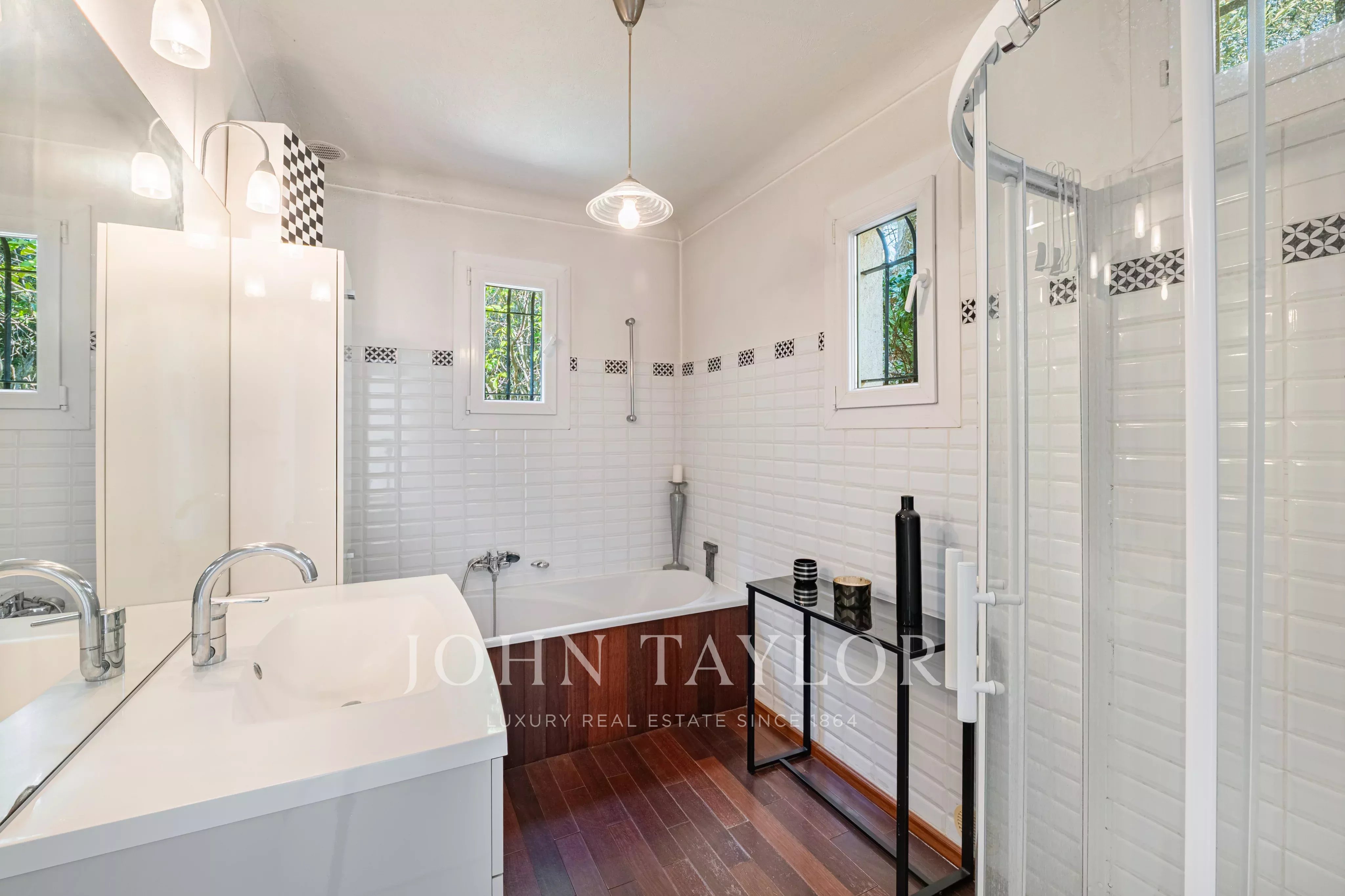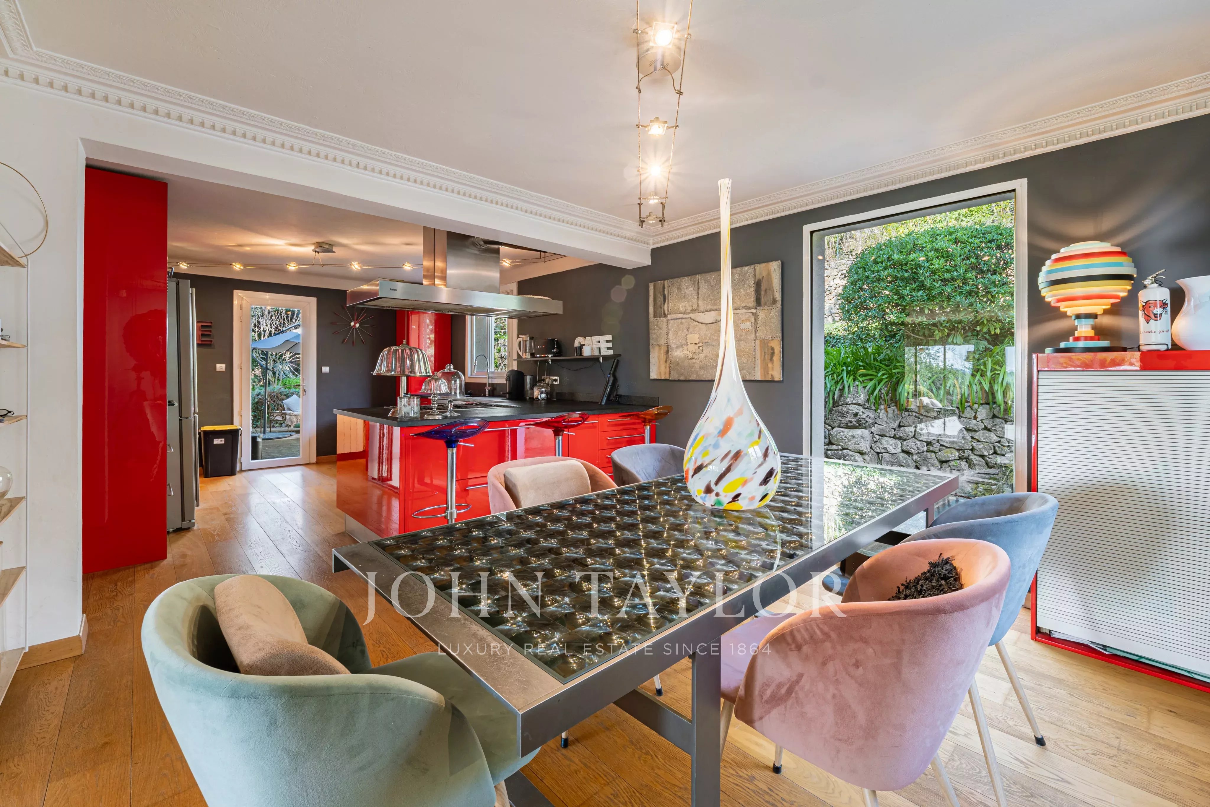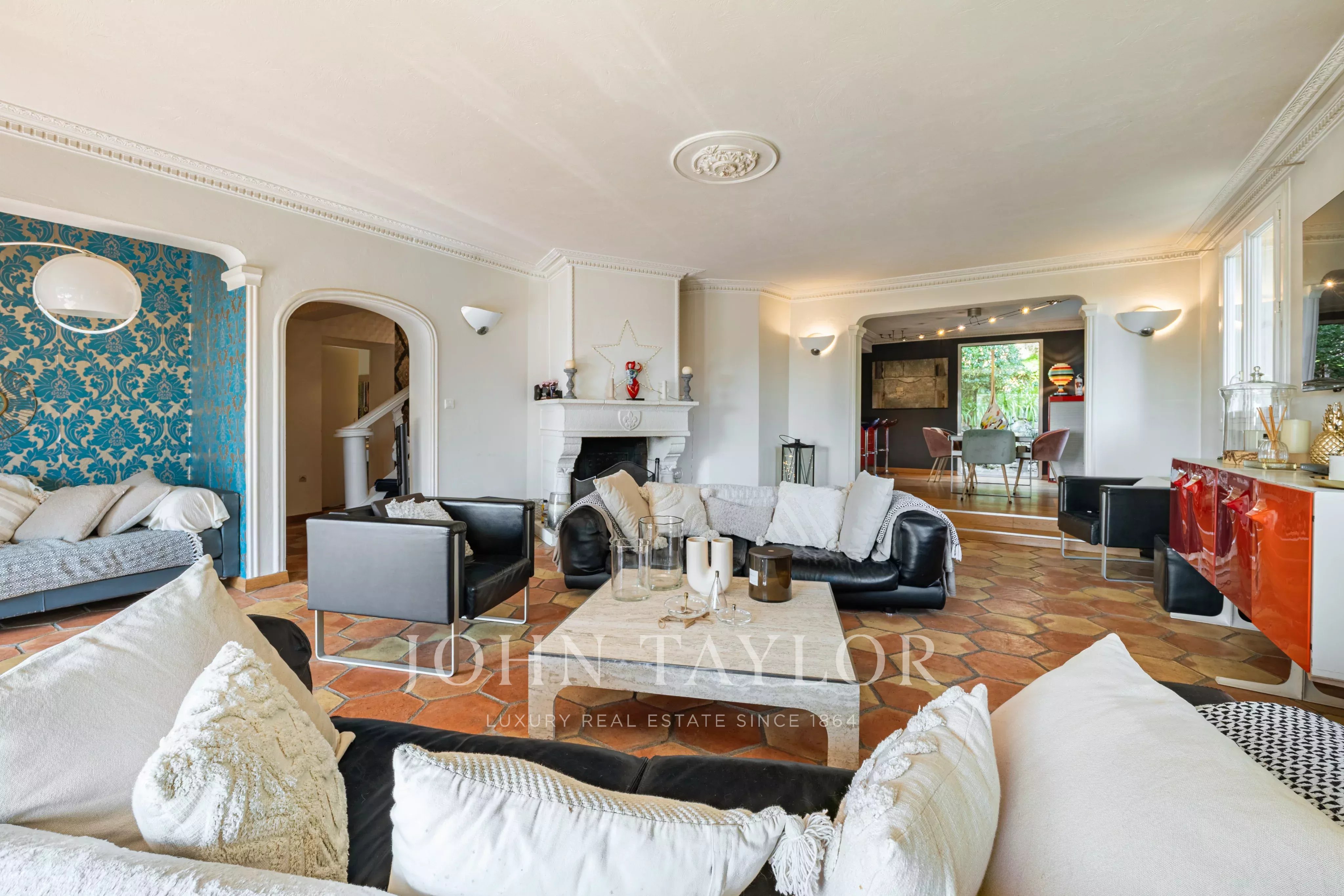 Situata in posizione tranquilla alla fine di un vicolo cieco in una zona residenziale ricercata, questa elegante villa di circa 220 m² gode di un'esposizione a sud, di una posizione dominante e di un rapido accesso a Cannes.
