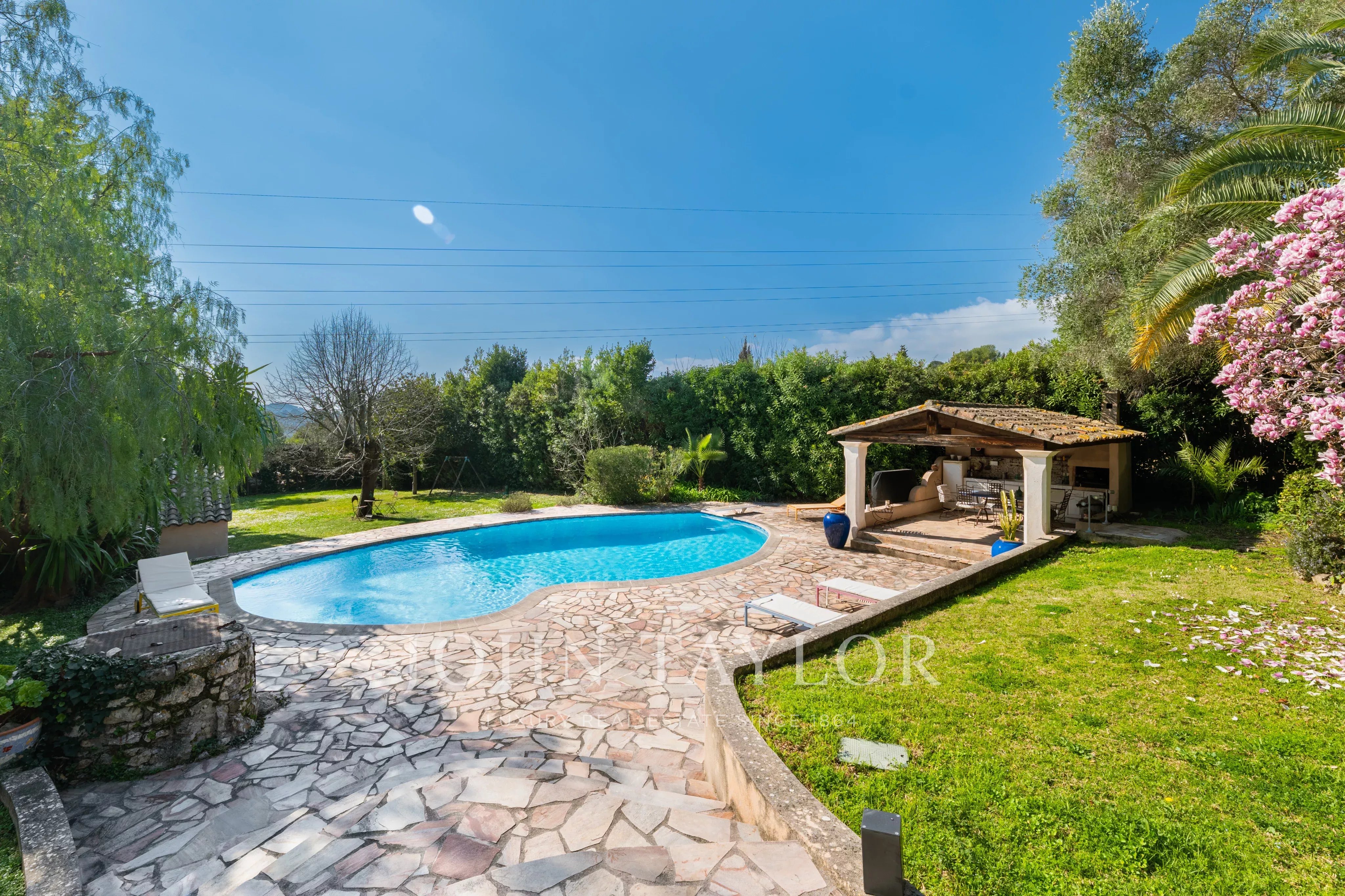 Questa villa combina il fascino provenzale, la pace e la tranquillità assolute, un ambiente verdeggiante e un ampio margine di sviluppo, a pochi minuti dai servizi e dagli indirizzi più ricercati di Mougins, pur rimanendo a breve distanza da Cannes.