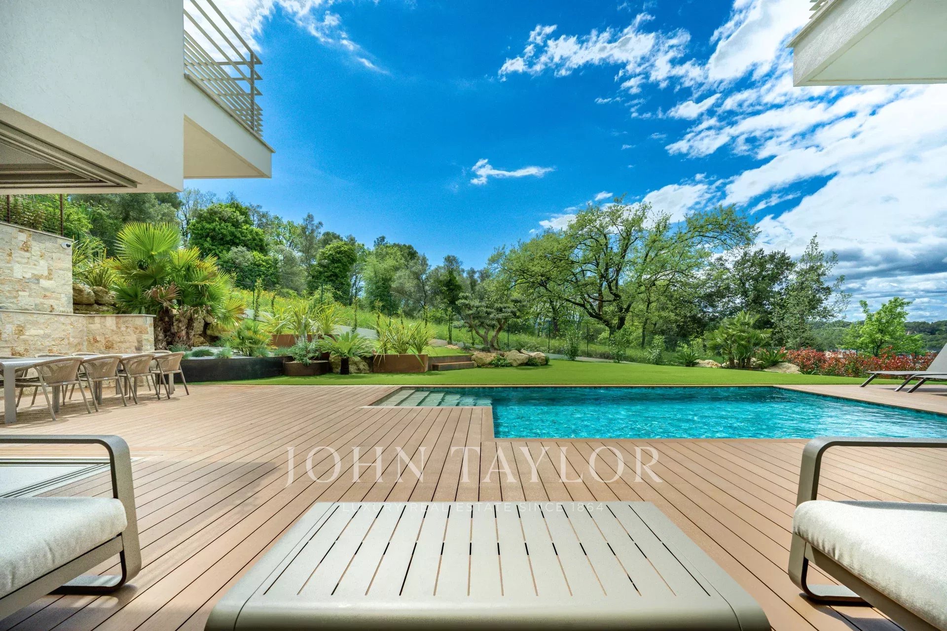 Climatizzata per un comfort totale in tutte le stagioni, la proprietà è immersa in 1.000 m² di terreno, con un'elegante piscina e posti auto.