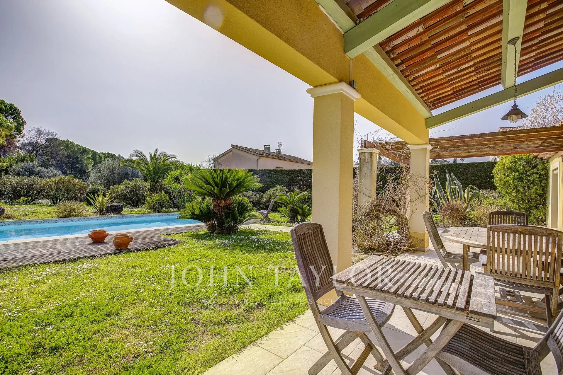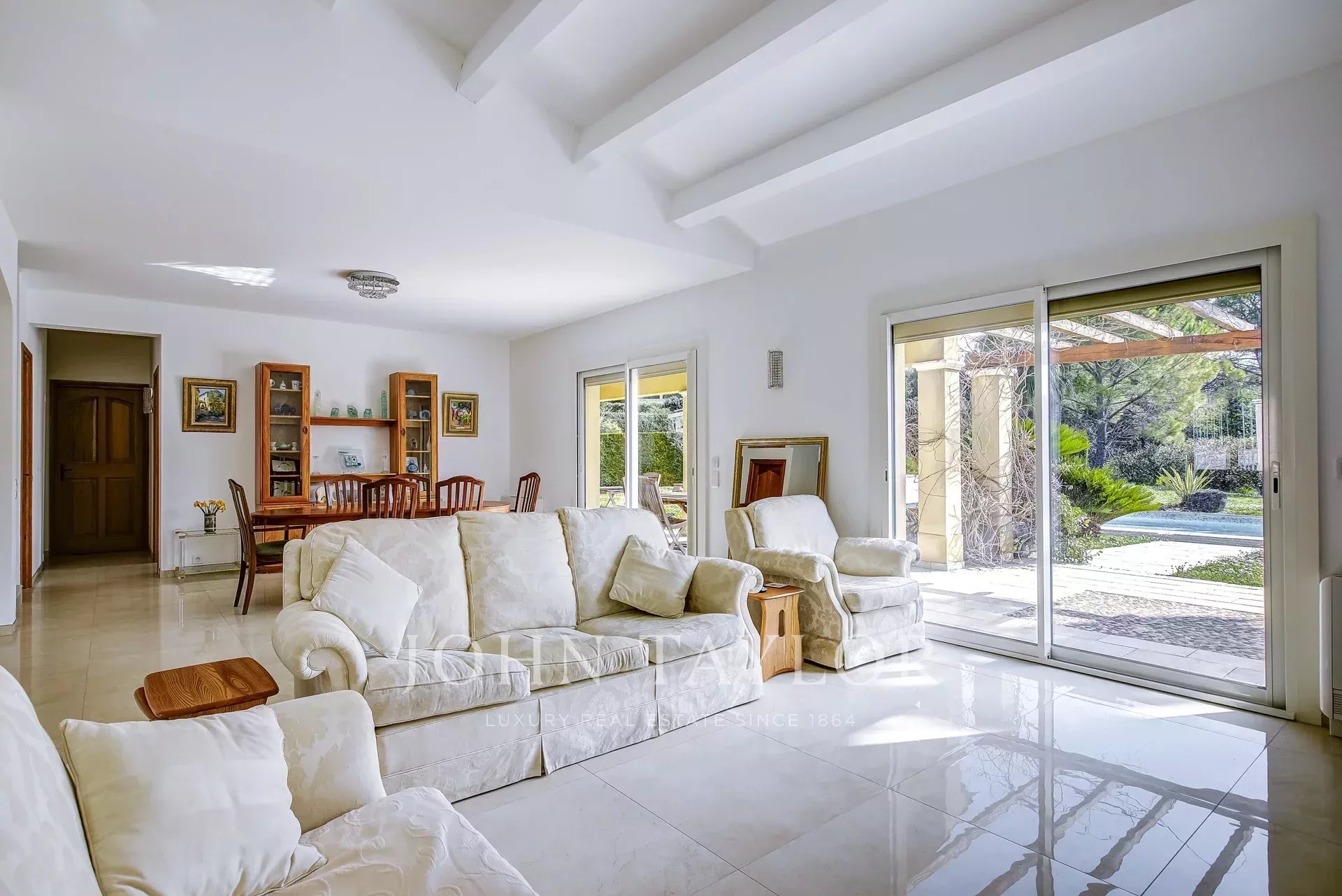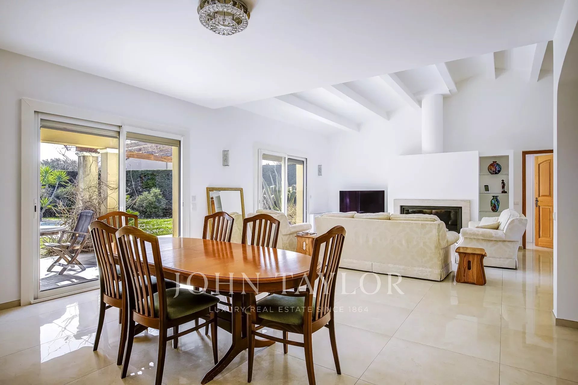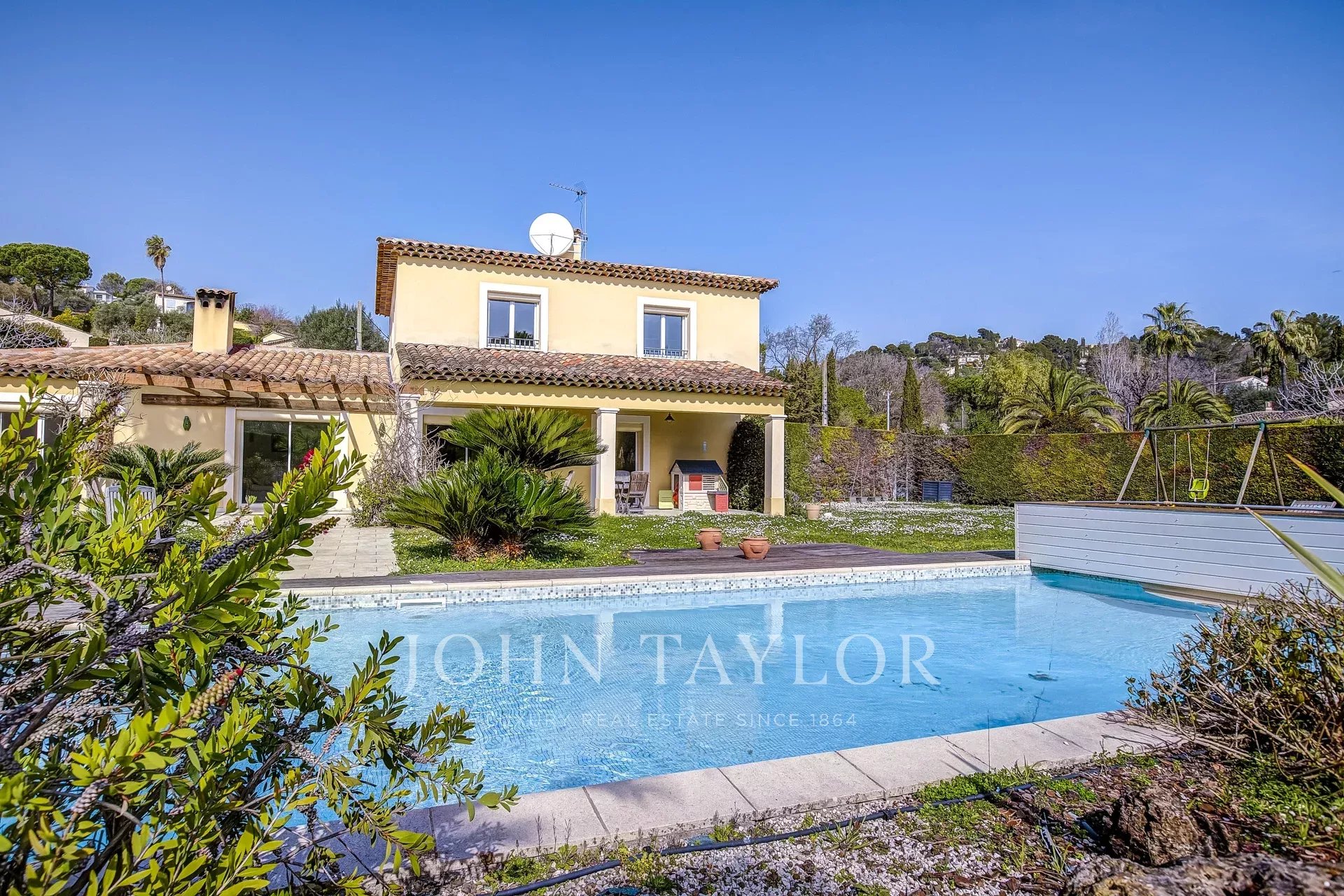 Situata in una ricercata zona residenziale di Mougins, questa villa gode di un ambiente piacevole e di molta luce naturale durante il giorno. La casa dispone di un ampio soggiorno con camino, una cucina separata, una dispensa e un ripostiglio. Una spaziosa camera da letto principale con armadi a muro e bagno con doccia completa questo livello, offrendo uno spazio abitativo confortevole e funzionale. Al piano superiore si trovano tre camere da letto e un bagno. Situata su un terreno pianeggiante, la proprietà dispone anche di una piscina, di un garage e di un doppio posto auto coperto, offrendo un ambiente di vita piacevole.