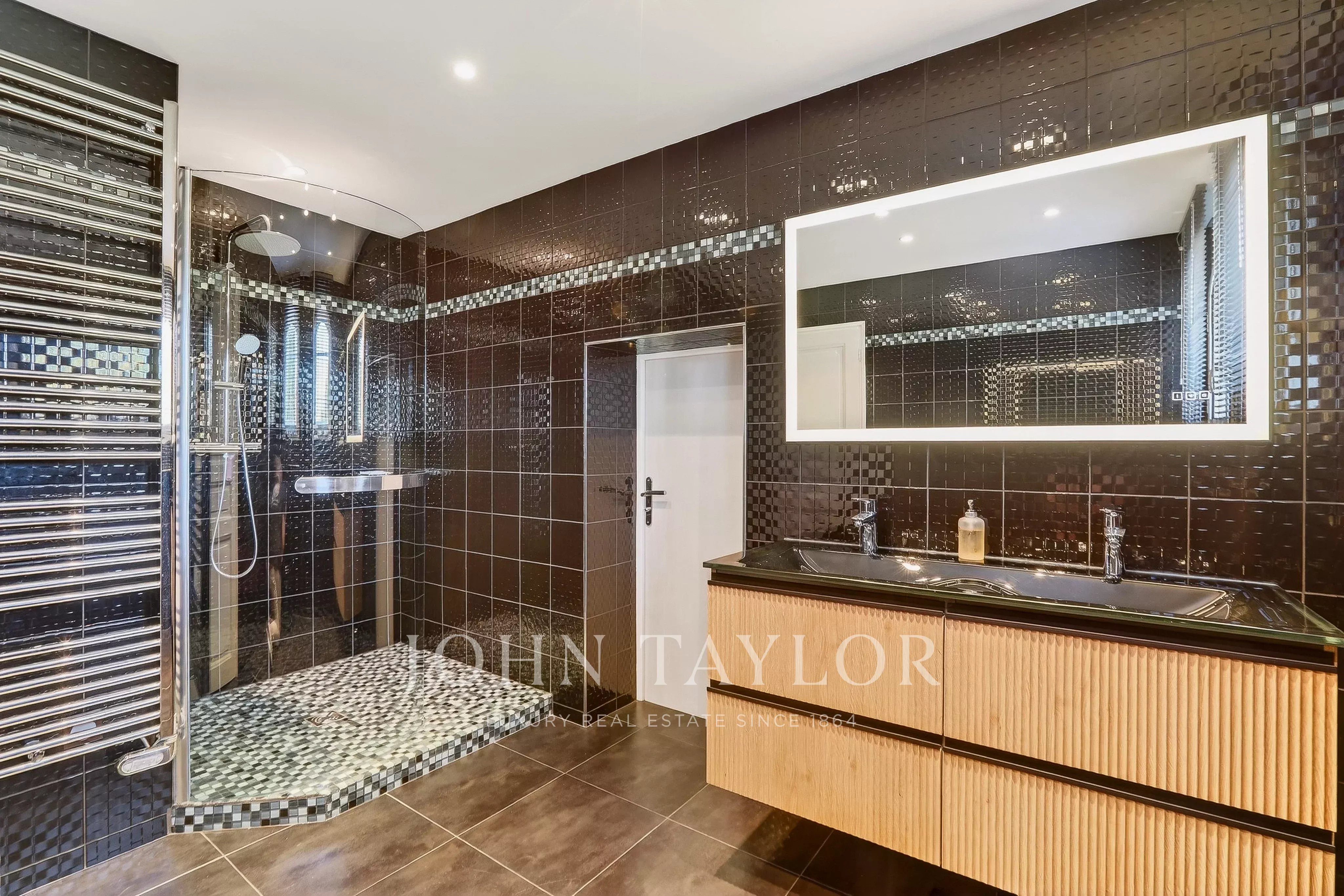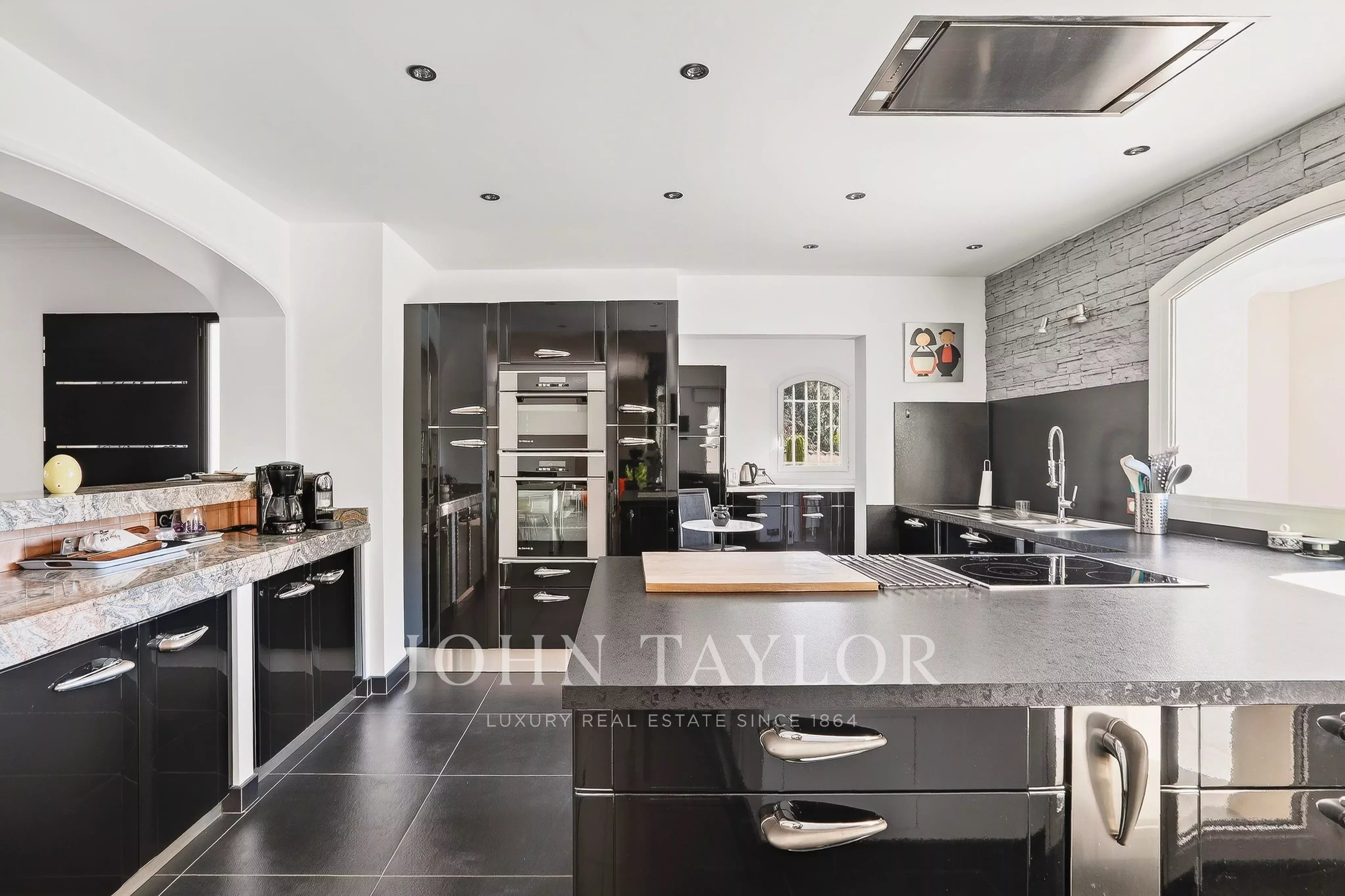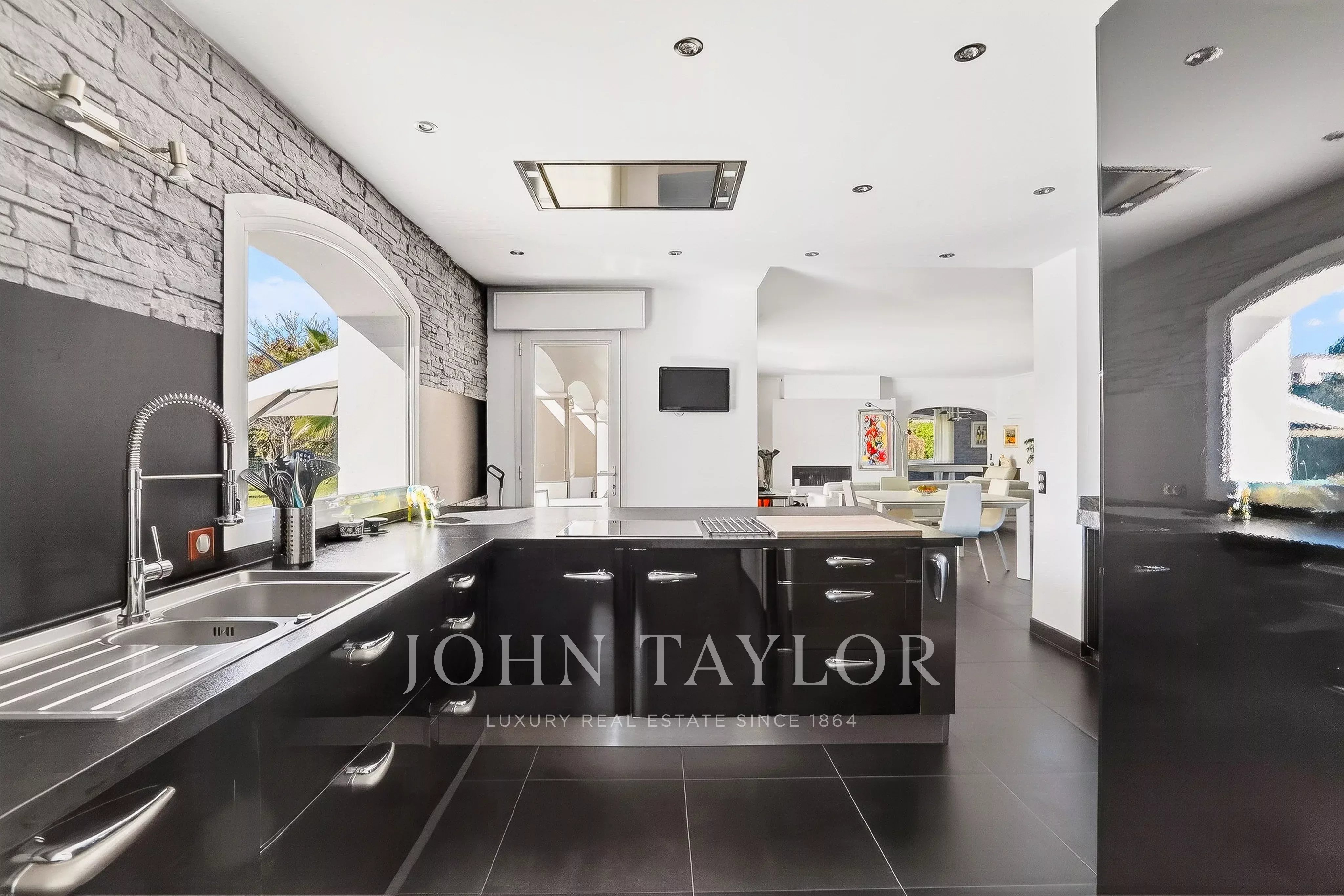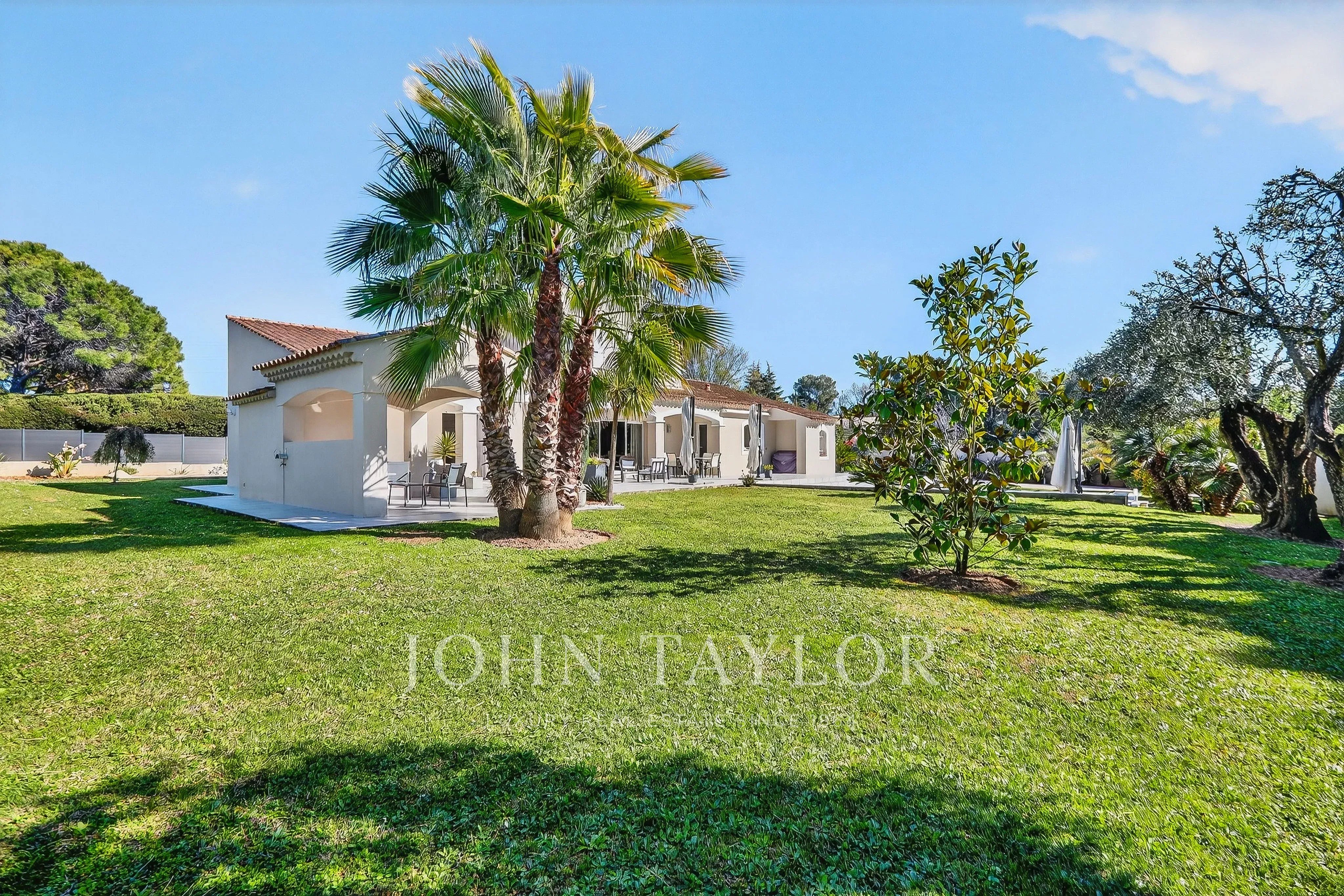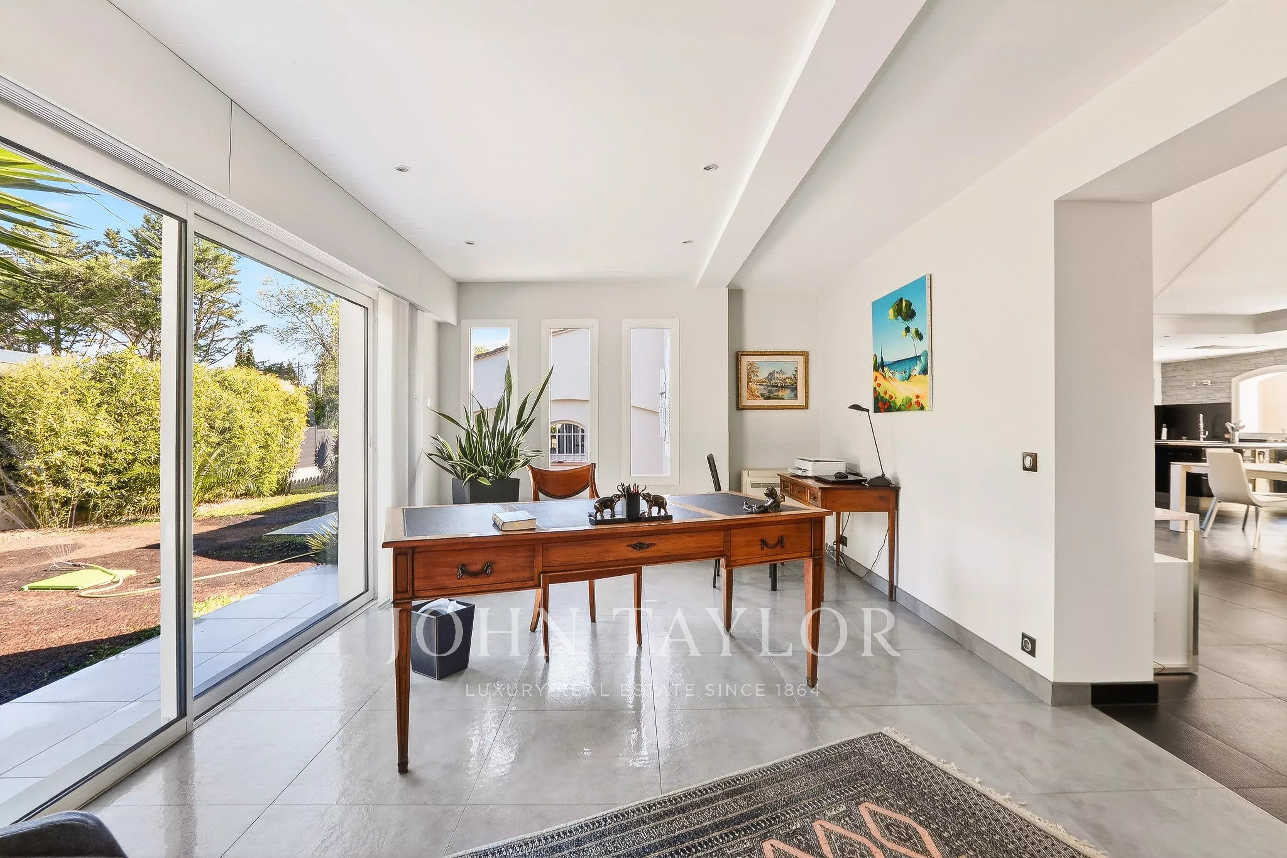 Situata in un quartiere residenziale richiesto, questa villa di circa 215 m² conquista per i suoi volumi luminosi e il suo ambiente di vita tranquillo. È composta da un ampio spazio reception con soggiorno e sala da pranzo aperti all’esterno, da una cucina moderna, da tre camere, da uno studio e da una sala giochi. Situata su un magnifico terreno pianeggiante di 2.401 m², la proprietà beneficia di un giardino curato con piscina e pool house, ideale per godersi il clima della Costa Azzurra. Due bagni, un garage e molti spazi esterni completano questa proprietà con servizi completi.