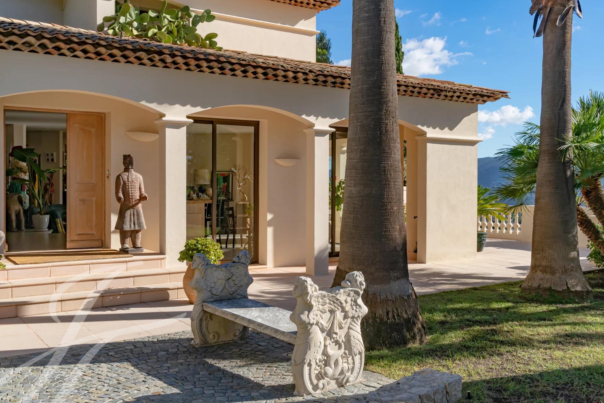 Situata in una tenuta discreta e privilegiata, in posizione dominante esposta a sud-est, questa proprietà in stile moderno e perfettamente mantenuta offre una vista panoramica mozzafiato sul Mediterraneo fino a Cap d'Antibes, nonché sulle colline di Nizza, Mont Vinaigrier - Mont Boron e oltre.