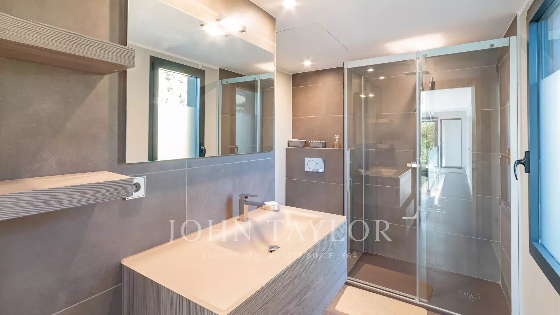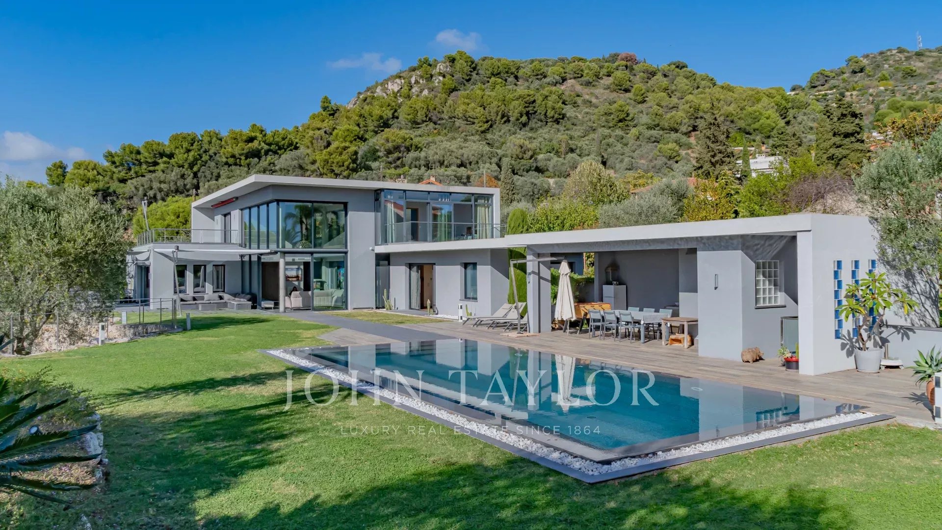 La villa è una creazione esclusiva. Progettata da un rinomato architetto in stile decisamente contemporaneo, è esposta a sud-ovest. La disposizione è fluida, senza perdita di spazio. I materiali scelti sono di altissima qualità e la domotica rende la villa intelligente con un alto livello di sicurezza. I colori sono vivaci e la luce è onnipresente.