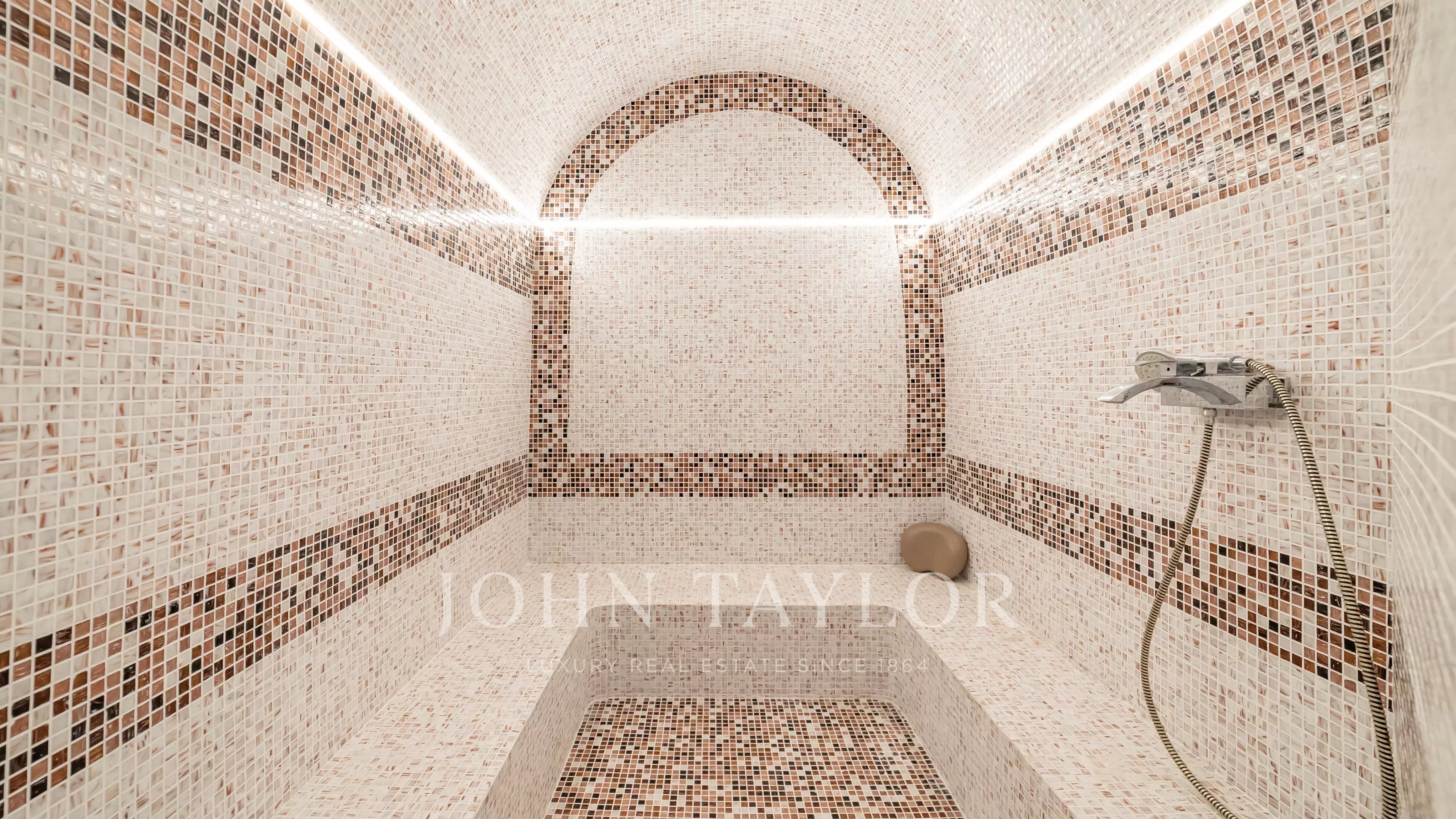Infine, il piano terra è interamente dedicato al benessere e al relax, con un ampio spazio wellness che comprende jacuzzi, sala fitness, area massaggi e hammam. Una grande camera con sala da bagno e accesso diretto al giardino completa questo livello.