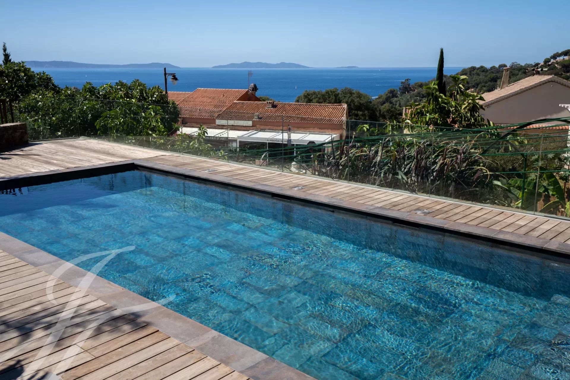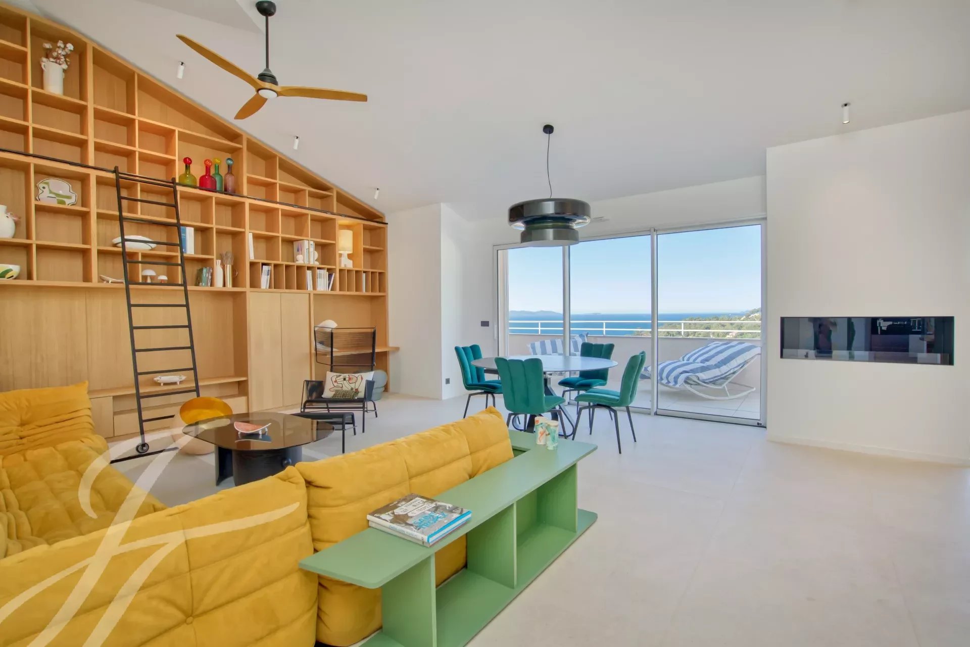 Rayol-Canadel, questo nuovo e intimo residence di 10 appartamenti offre uno stile di vita unico: vista panoramica sul mare e accesso ai negozi e alla spiaggia a piedi. L'appartamento (villa sul tetto) con 132 m2 di superficie abitabile si trova al 2° e ultimo piano (accesso con ascensore dal seminterrato e dal piano terra) e vanta 38 m2 di terrazza e 25 m2 di terrazza coperta da un pergolato con cucina esterna, il tutto con splendida vista sul mare.