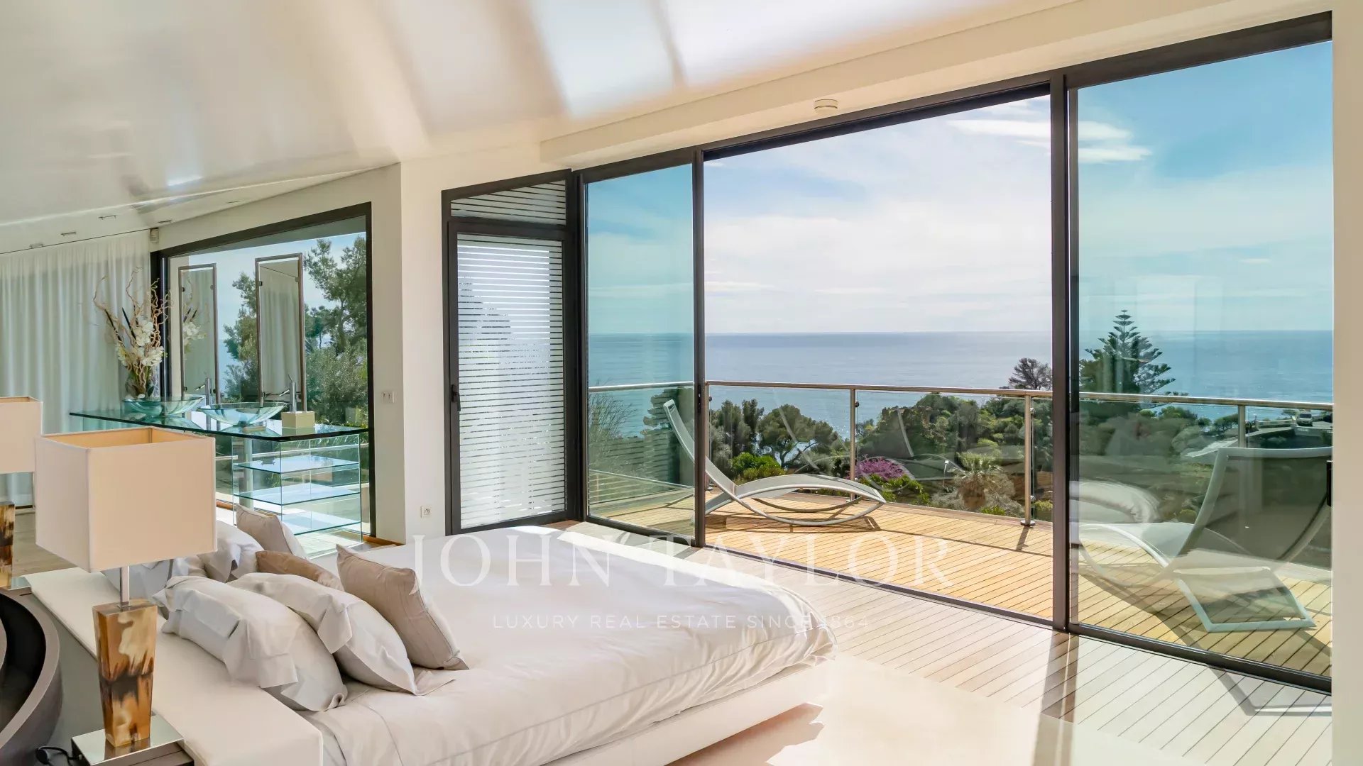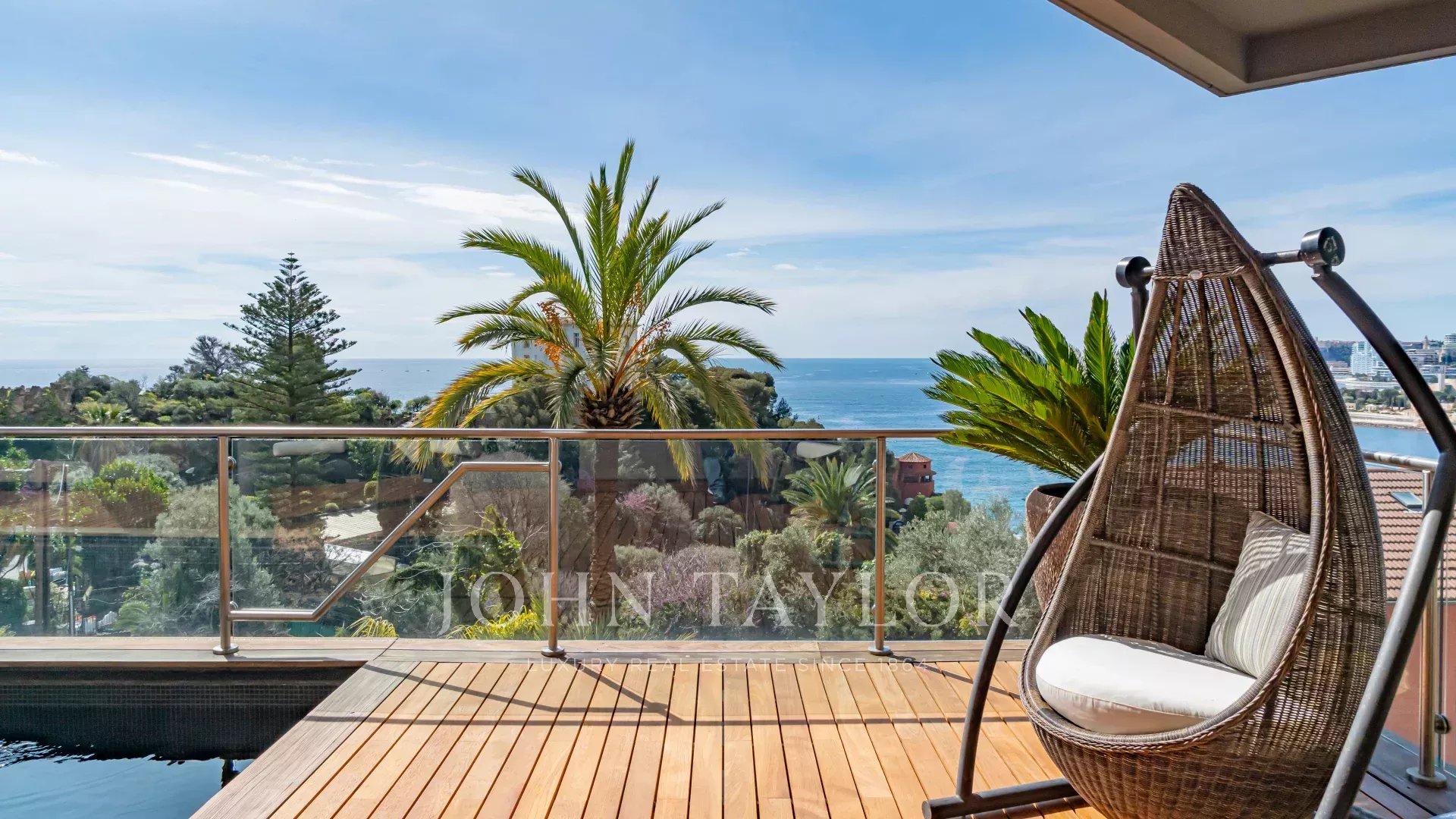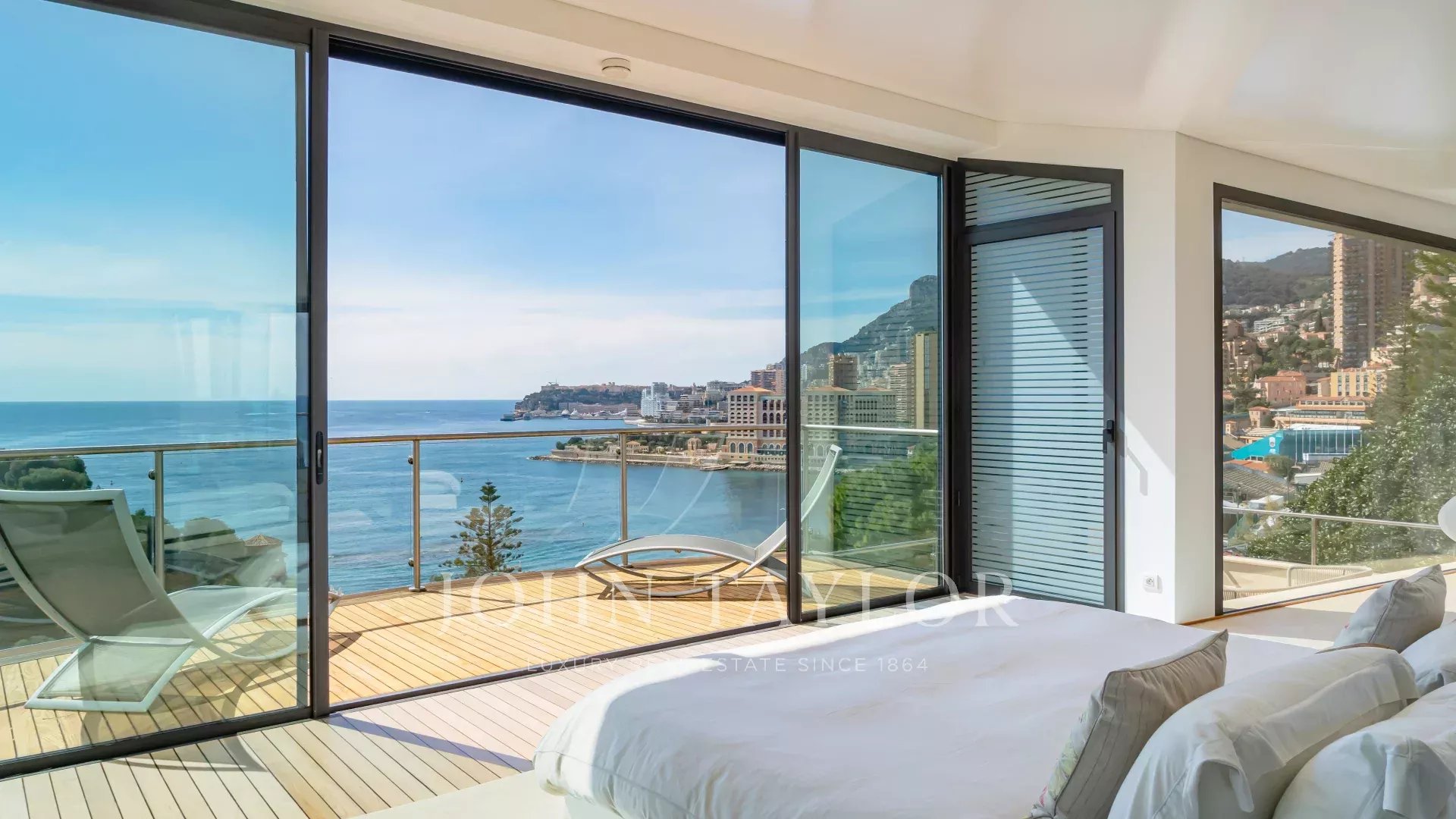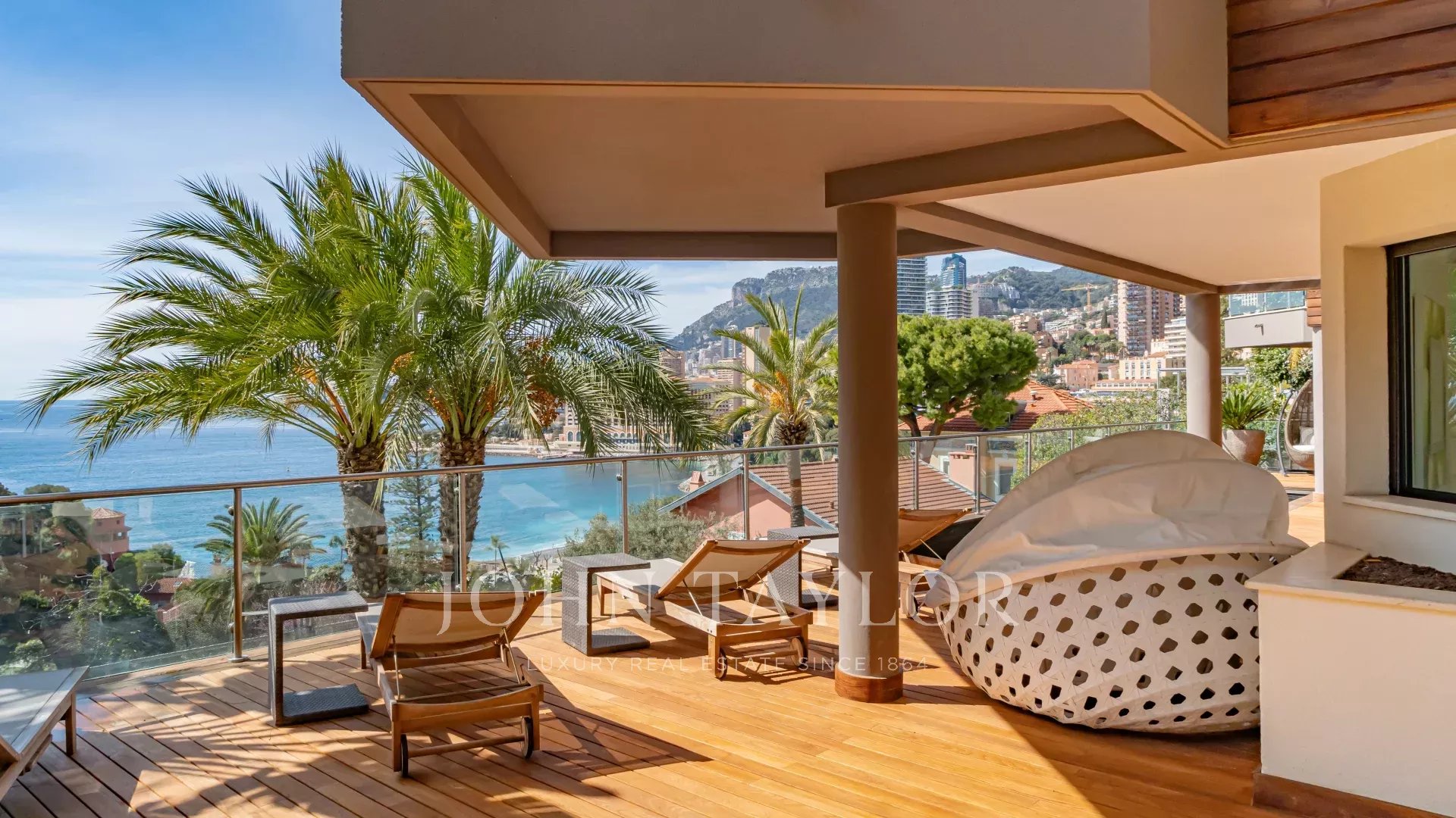 La superficie abitabile di 580 m² distribuita su 5 livelli è composta da 5 camere da letto, tra cui una camera padronale con vista panoramica sul mare e su Monaco.