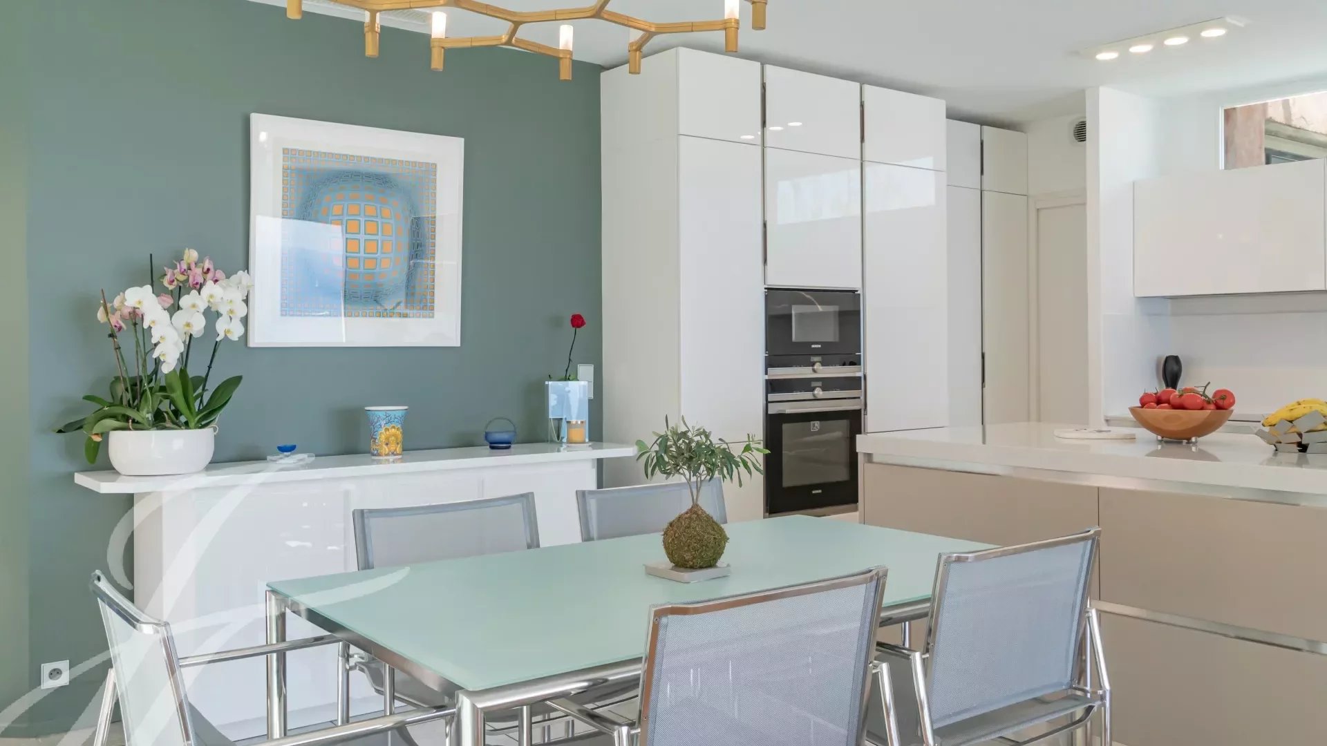 Questa villa di design da 240 m² offre uno stile di vita tranquillo, esaltato da una vista mozzafiato sul mare, una piscina sul tetto e numerosi spazi esterni, tra cui splendide terrazze che consentono di godere appieno del clima della Costa Azzurra e della dolcezza della vita locale.