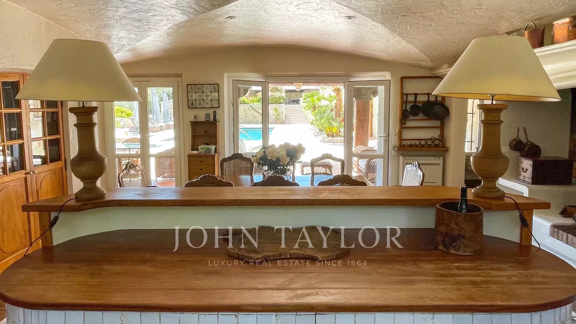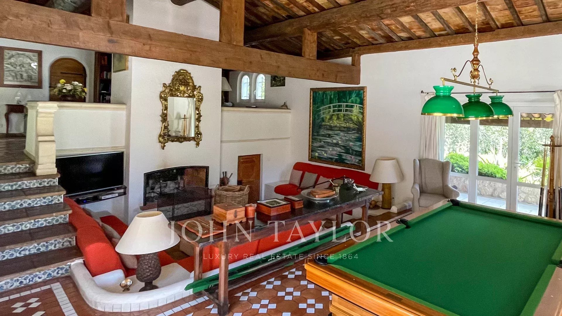 La villa presenta un elegante ingresso, una spaziosa cucina da pranzo con camino che si apre su una terrazza coperta e sulla zona piscina, un doppio soggiorno con bar e tavolo da biliardo, una zona ufficio e un secondo luminoso soggiorno con camino. Di notte, una suite padronale e quattro camere da letto, ciascuna con bagno privato con doccia, completano lo spazio abitativo. Una cella frigorifera, una lavanderia, diverse cantine e un capannone per 4-6 veicoli con officina completano la proprietà.