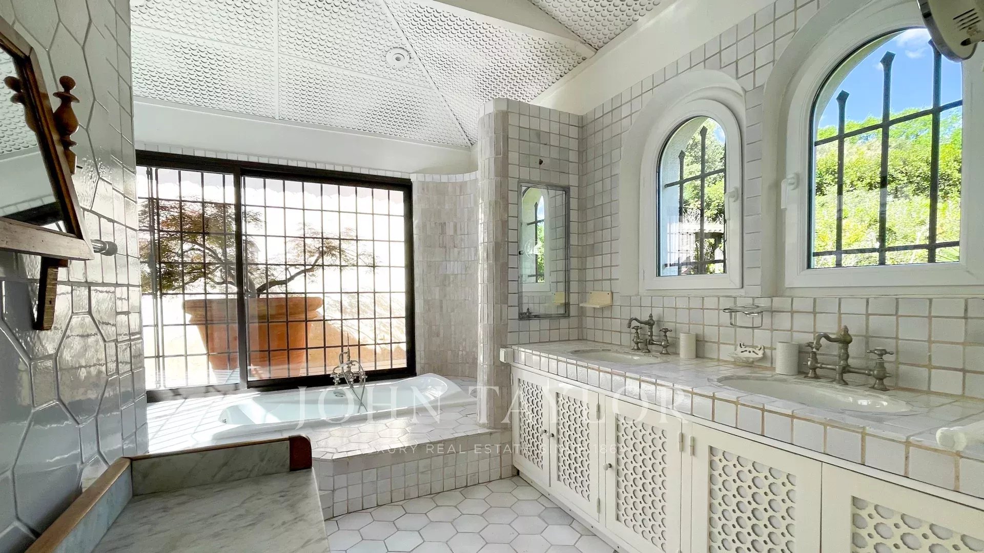 A pochi minuti dall'incantevole villaggio di La Colle-sur-Loup, gode di assoluta tranquillità e di un'esposizione ideale a sud, inserita in un magnifico terreno paesaggistico di circa 6.575 m². Questo comprende una piscina a specchio riscaldata, ampi spazi erbosi, terrazze in pietra e una vasta area boschiva.