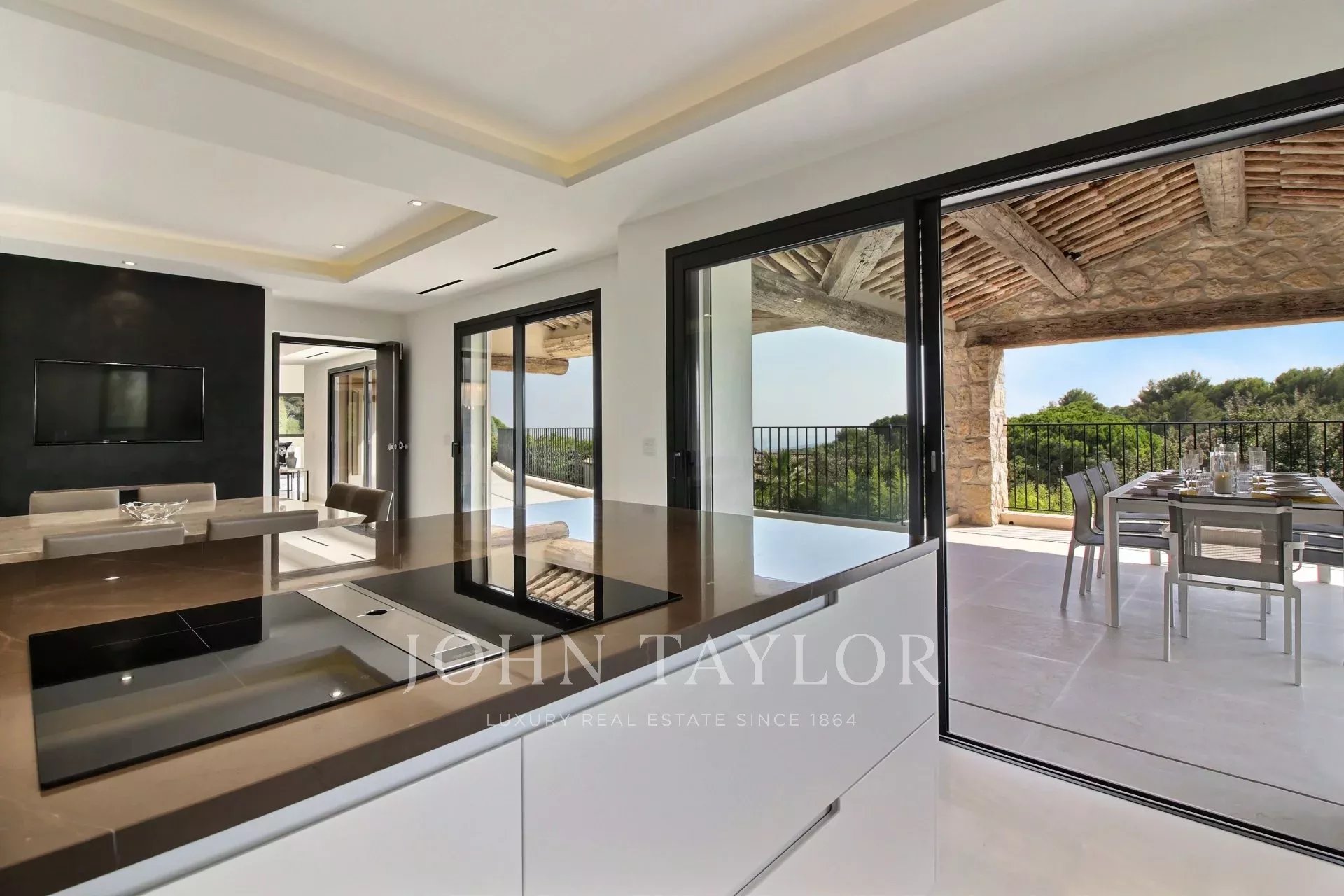 Interamente ristrutturata con un certo gusto per il raffinamento e l’eleganza, questa magnifica realizzazione di circa 450 m² combina perfettamente il fascino provenzale con le linee moderne degli interni. Questa proprietà di lusso, orientata a sud-ovest, si sviluppa su un giardino paesaggistico di 2.500 m² con essenze mediterranee e offre un panorama mozzafiato, godendo della luce splendente della Costa Azzurra con la sua piscina a specchio riscaldata, una dependance attrezzata, una cucina estiva, uno spazio lounge coperto, una doccia e un campo di pétanque.