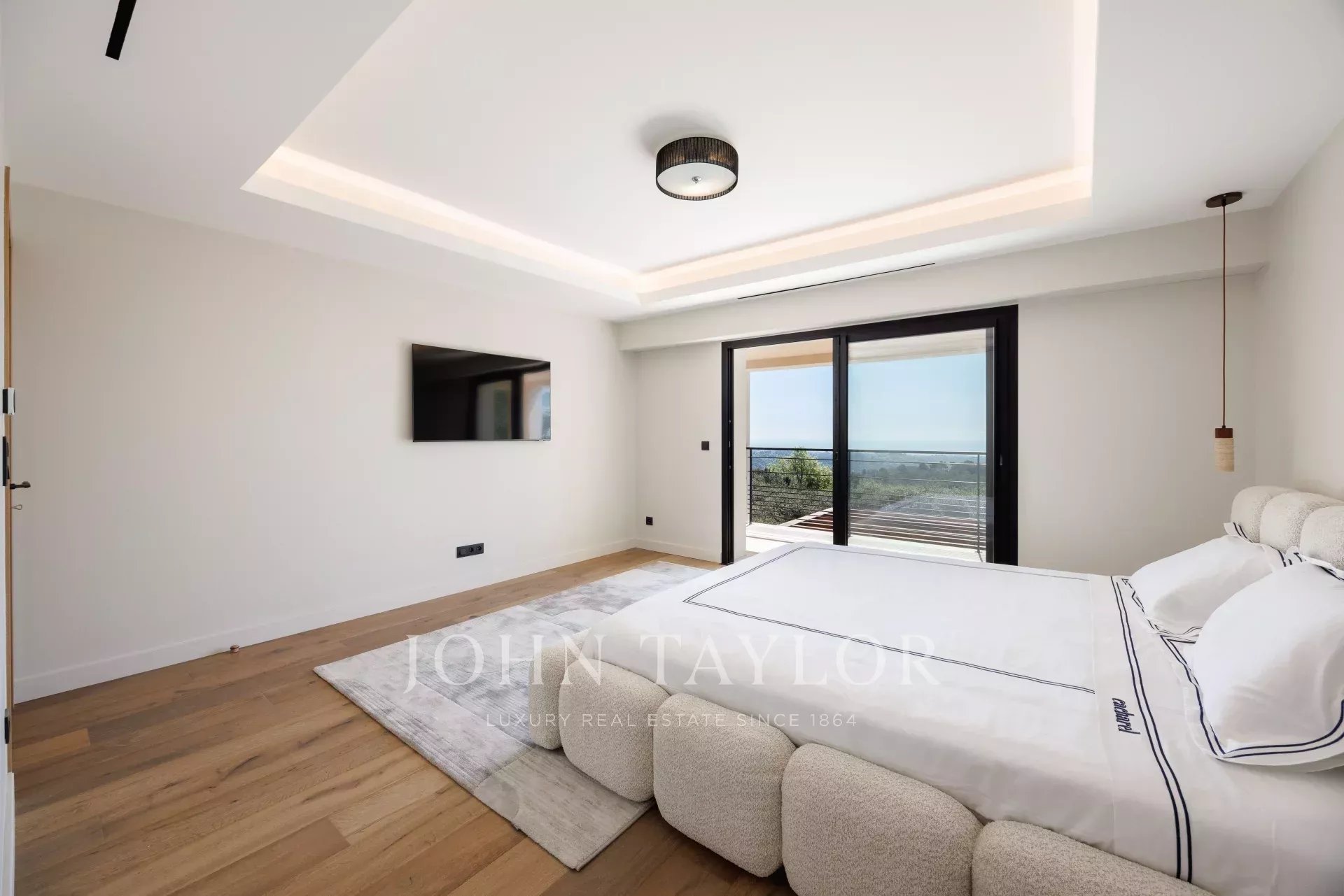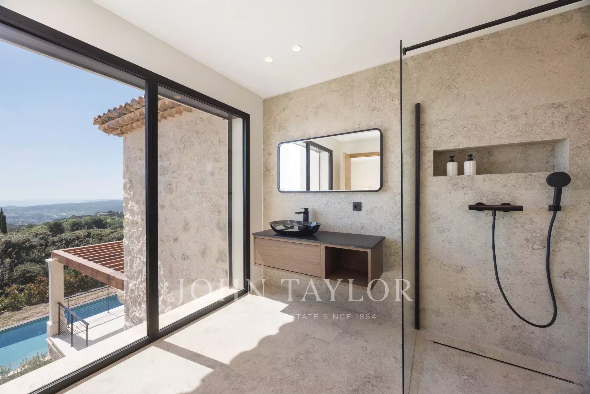 Le caratteristiche includono domotica, aria condizionata canalizzata, pompa di calore, vialetto pavimentato, garage doppio, parcheggio esterno e, naturalmente, viste eccezionali sul mare e sul villaggio di Saint-Paul.