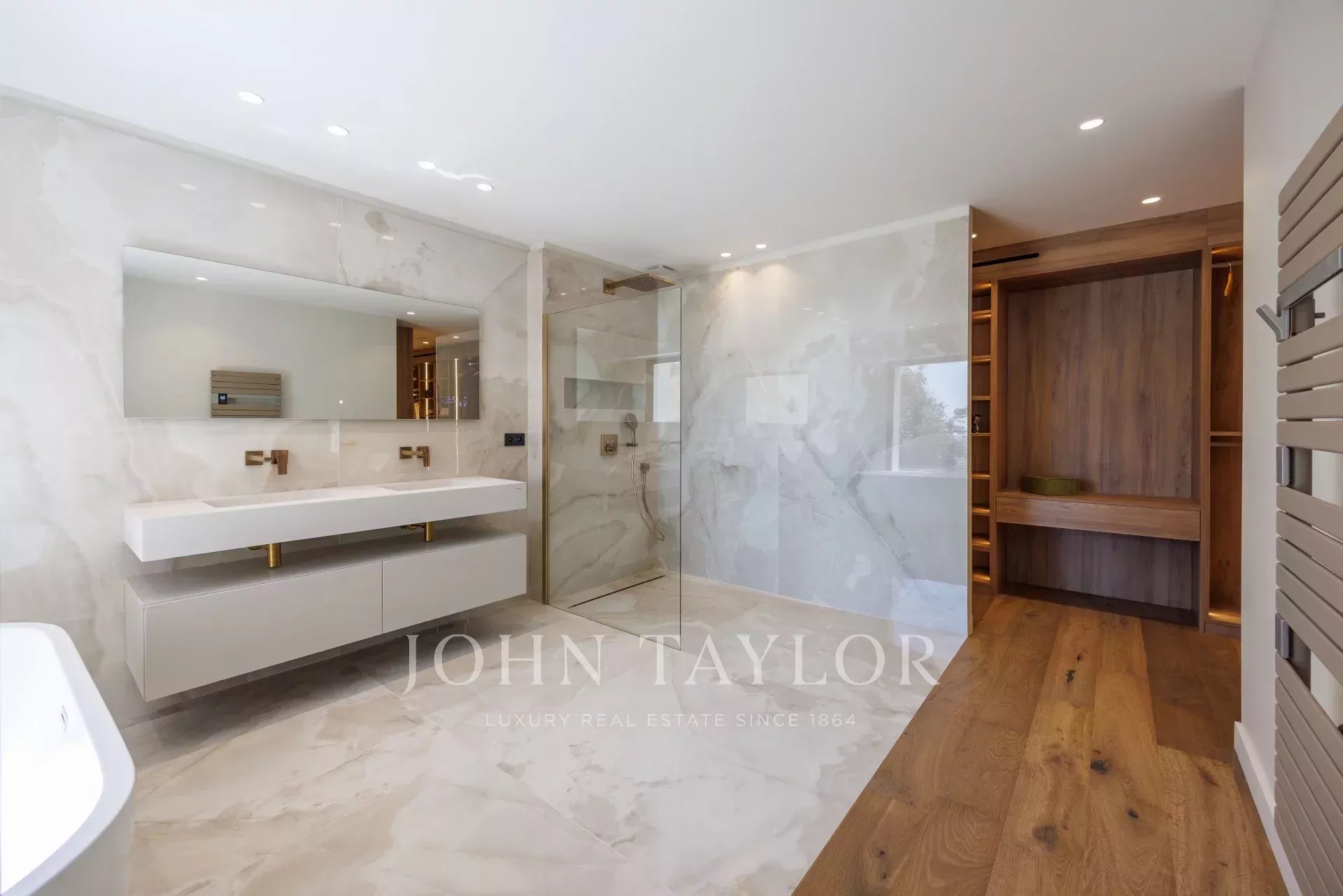 Su un unico livello, comprende un ampio e luminoso soggiorno di 78 m² con camino a gas, un'elegante biblioteca, una spaziosa cucina attrezzata di 47 m² con porte scorrevoli in vetro che si aprono su una terrazza coperta da un pergolato. Un ripostiglio e una superba suite padronale al piano terra completano questo livello, con tutte le aree che beneficiano di un accesso diretto all'esterno.
