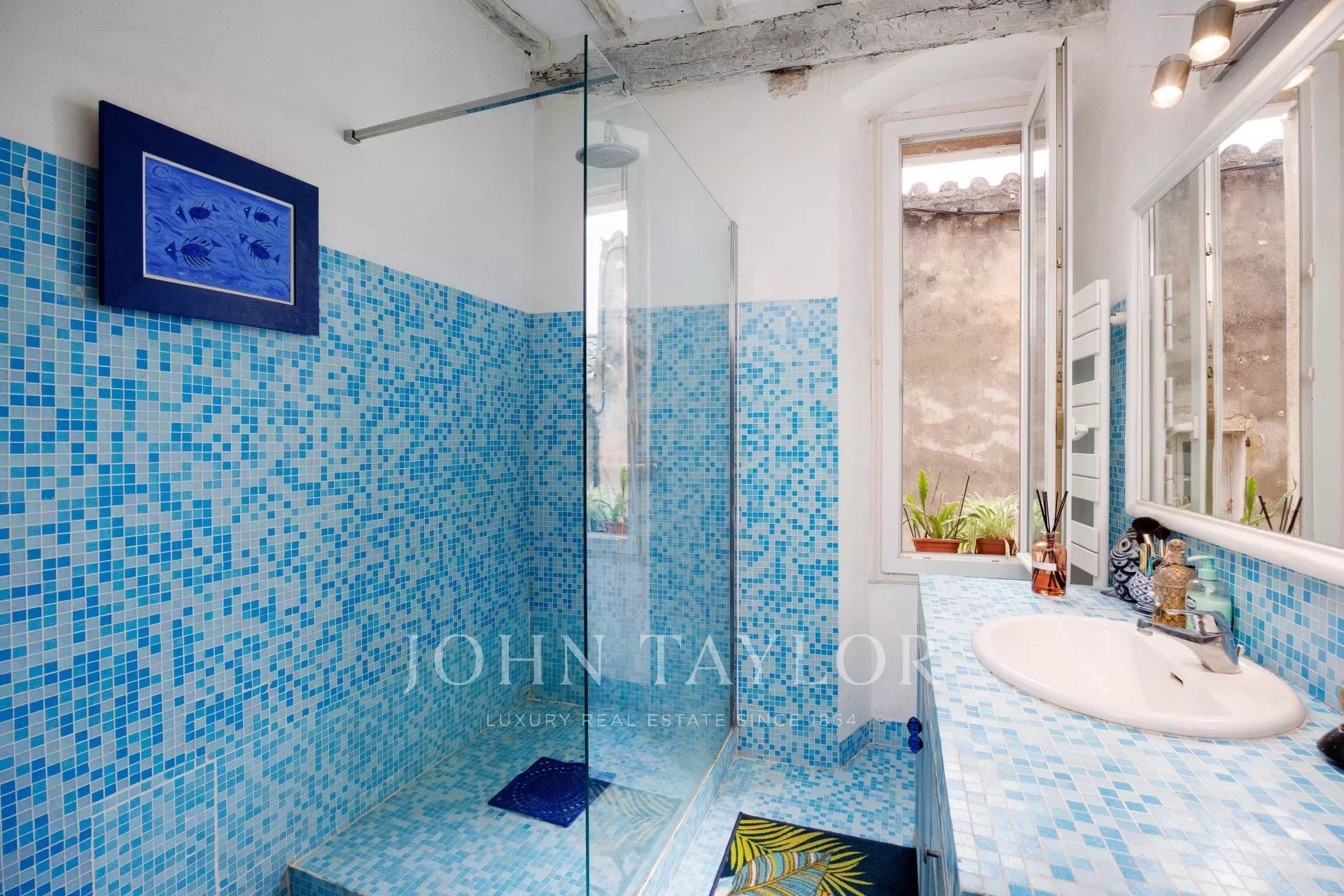 Il soggiorno, caldo e accogliente, vanta soffitti eccezionalmente alti, un grande camino in pietra e un doppio aspetto, con la cucina rivolta a EST e il soggiorno a OVEST, che offre molta luce naturale durante il giorno. Due camere da letto e un bagno con doccia completano questo caratteristico pied-à-terre, ideale per gli amanti della pietra antica e dell'anima provenzale del nostro bellissimo villaggio!