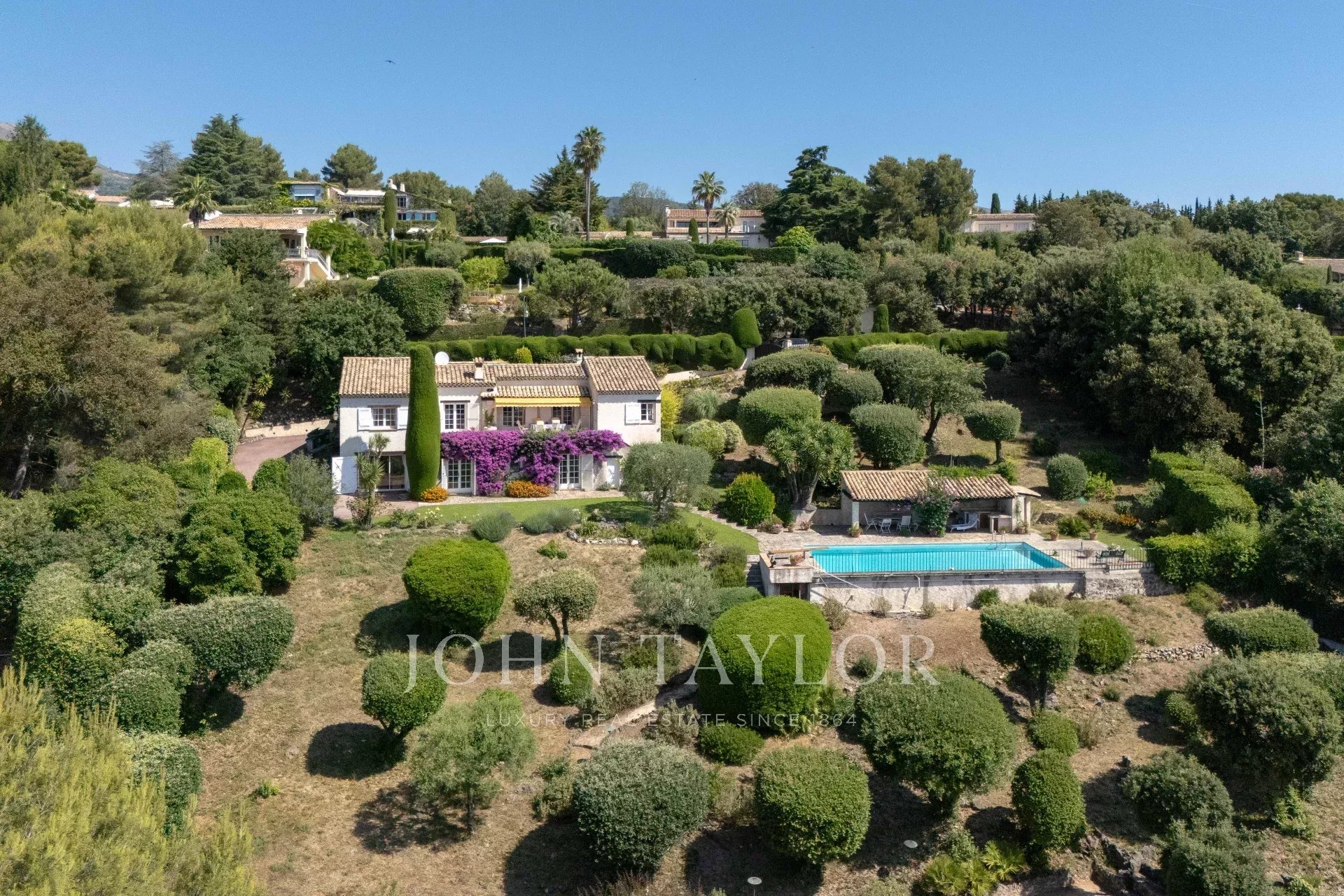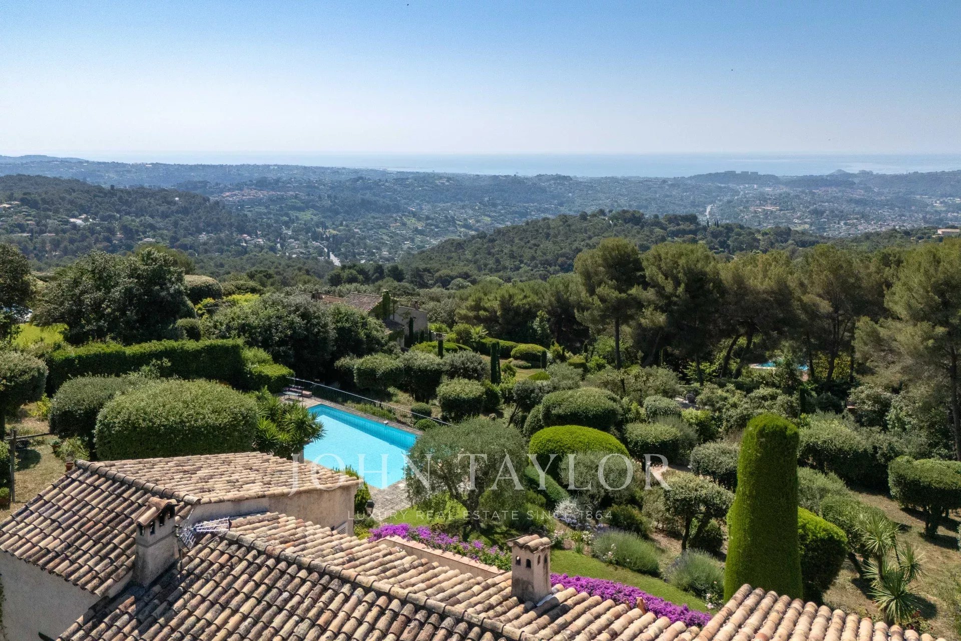 Incantevole casa di circa 238 m² situata nella prestigiosa e sicura tenuta Hauts de Saint-Paul, in assoluta tranquillità, con vista panoramica mozzafiato sul mare e sul villaggio di Saint-Paul de Vence. È immersa in un magnifico terreno paesaggistico di 3.837 m² con piscina, pool house e area per le bocce.