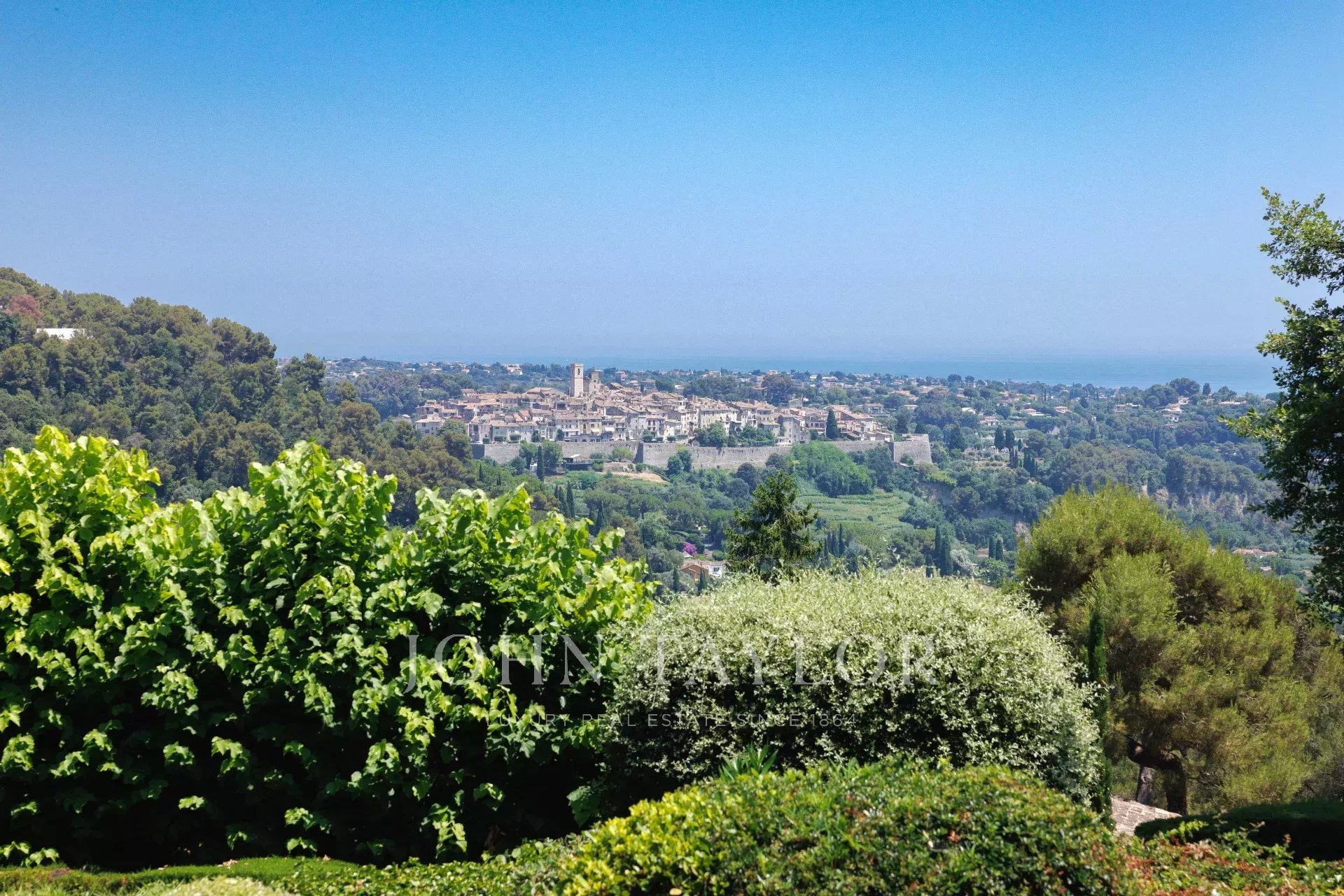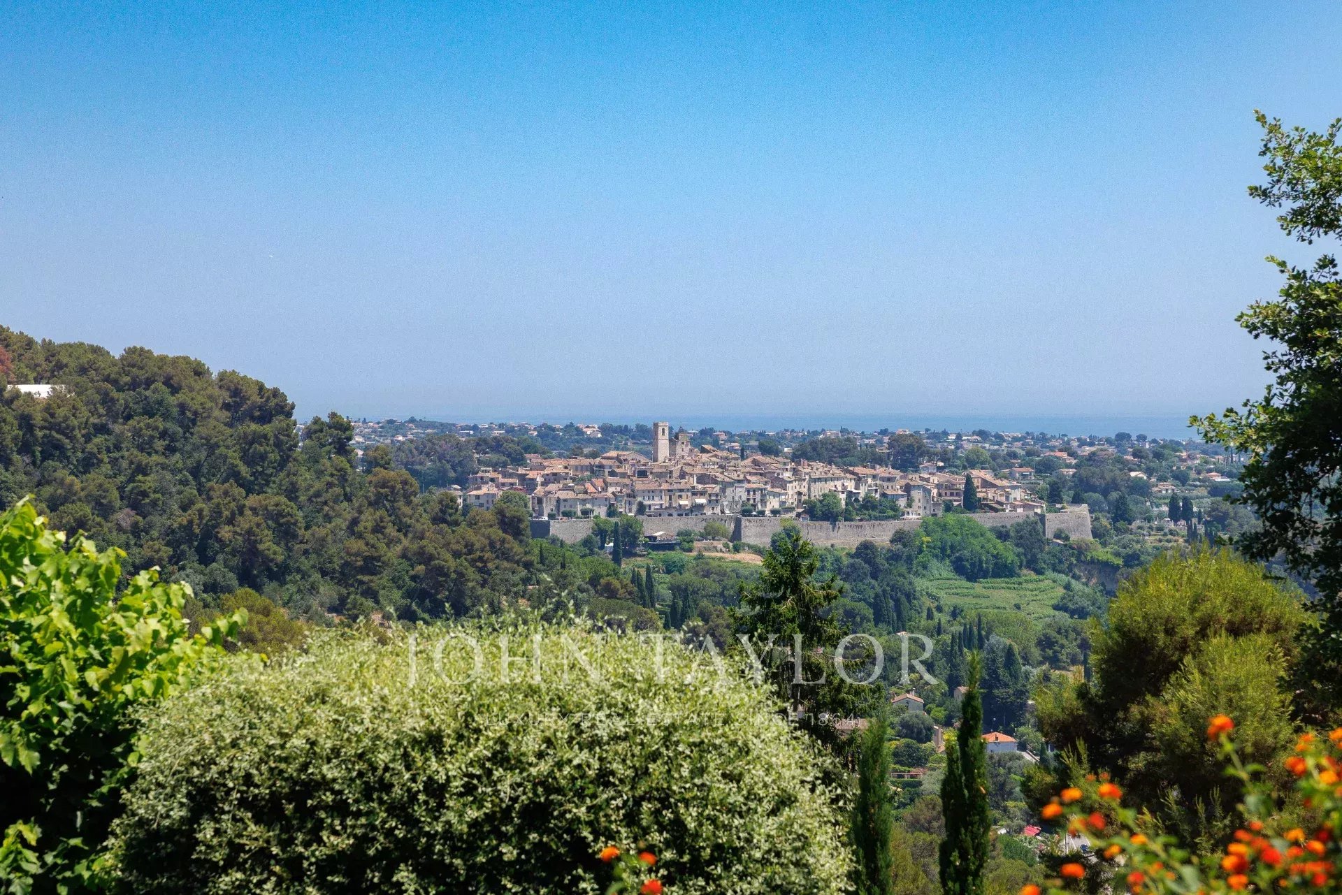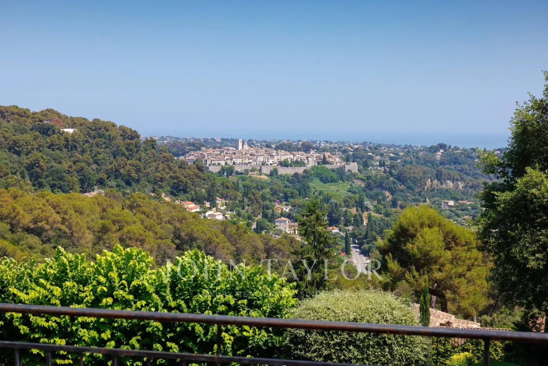 In una delle zone più ricercate della nostra bella regione, nella pace e nella tranquillità delle colline residenziali, questa proprietà familiare di circa 235 m² offre un ambiente eccezionale in un terreno paesaggistico di 2.850 m² con piscina. Gode di una vista ininterrotta sull'emblematico villaggio di Saint-Paul de Vence e sul mare, nonché di un'ottima insolazione durante tutta la giornata.