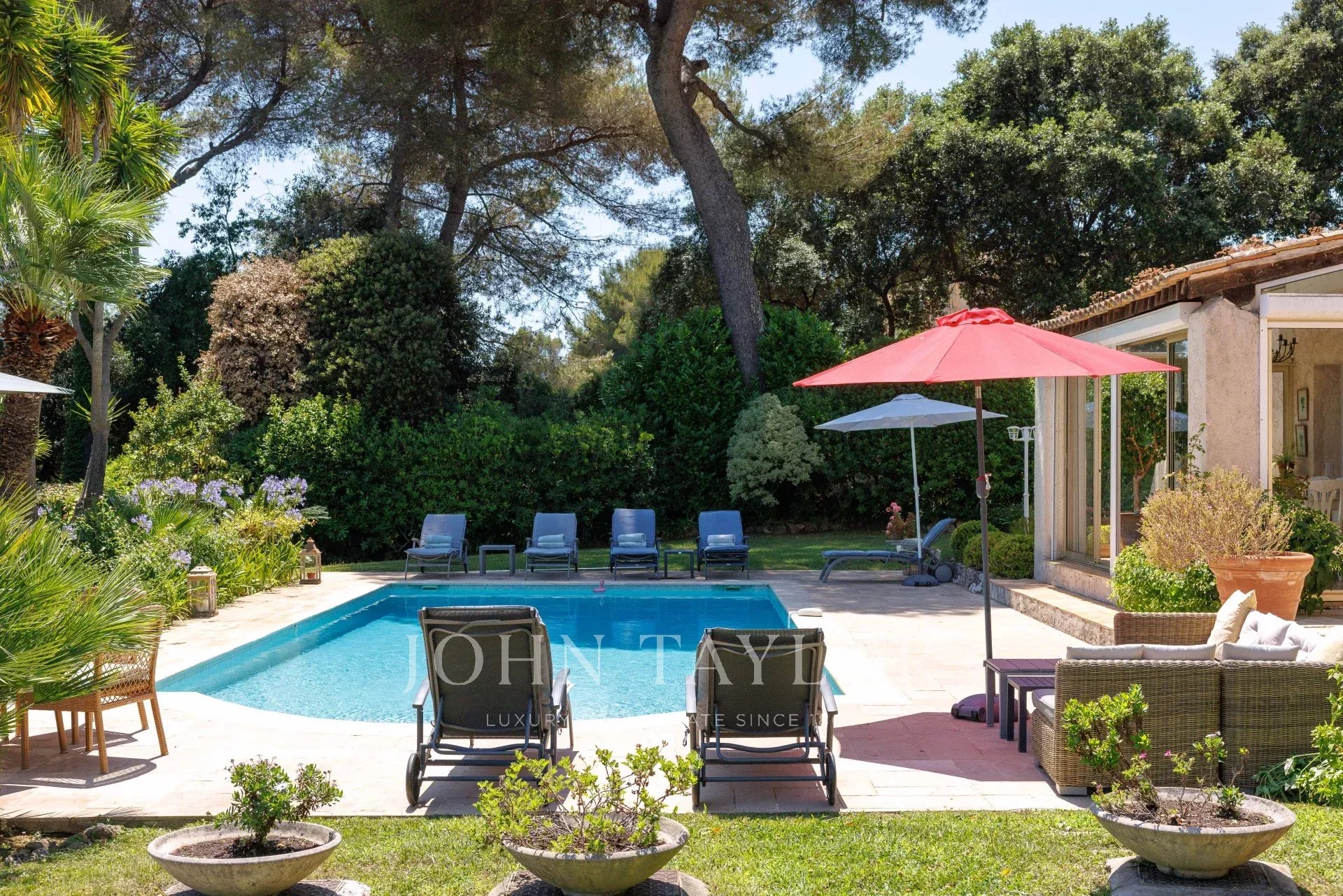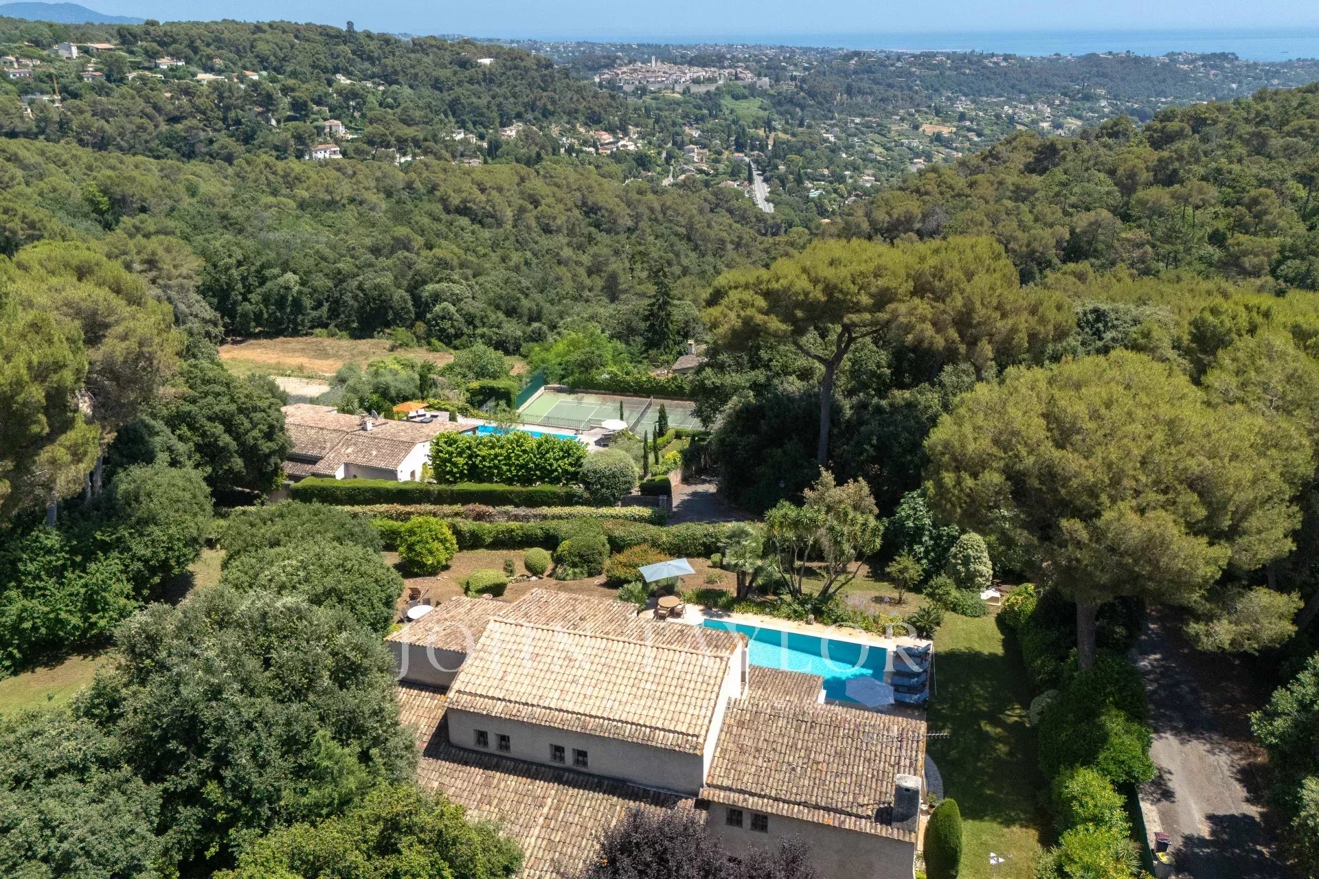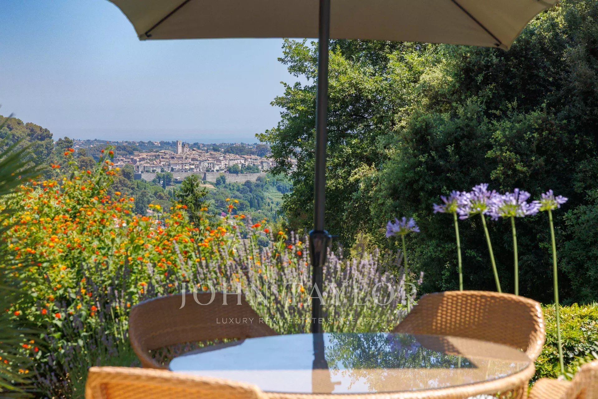In una delle zone più ricercate della nostra bella regione, nella pace e nella tranquillità delle colline residenziali, questa proprietà familiare di circa 235 m² offre un ambiente eccezionale in un terreno paesaggistico di 2.850 m² con piscina. Gode di una vista ininterrotta sull'emblematico villaggio di Saint-Paul de Vence e sul mare, nonché di un'ottima insolazione durante tutta la giornata.