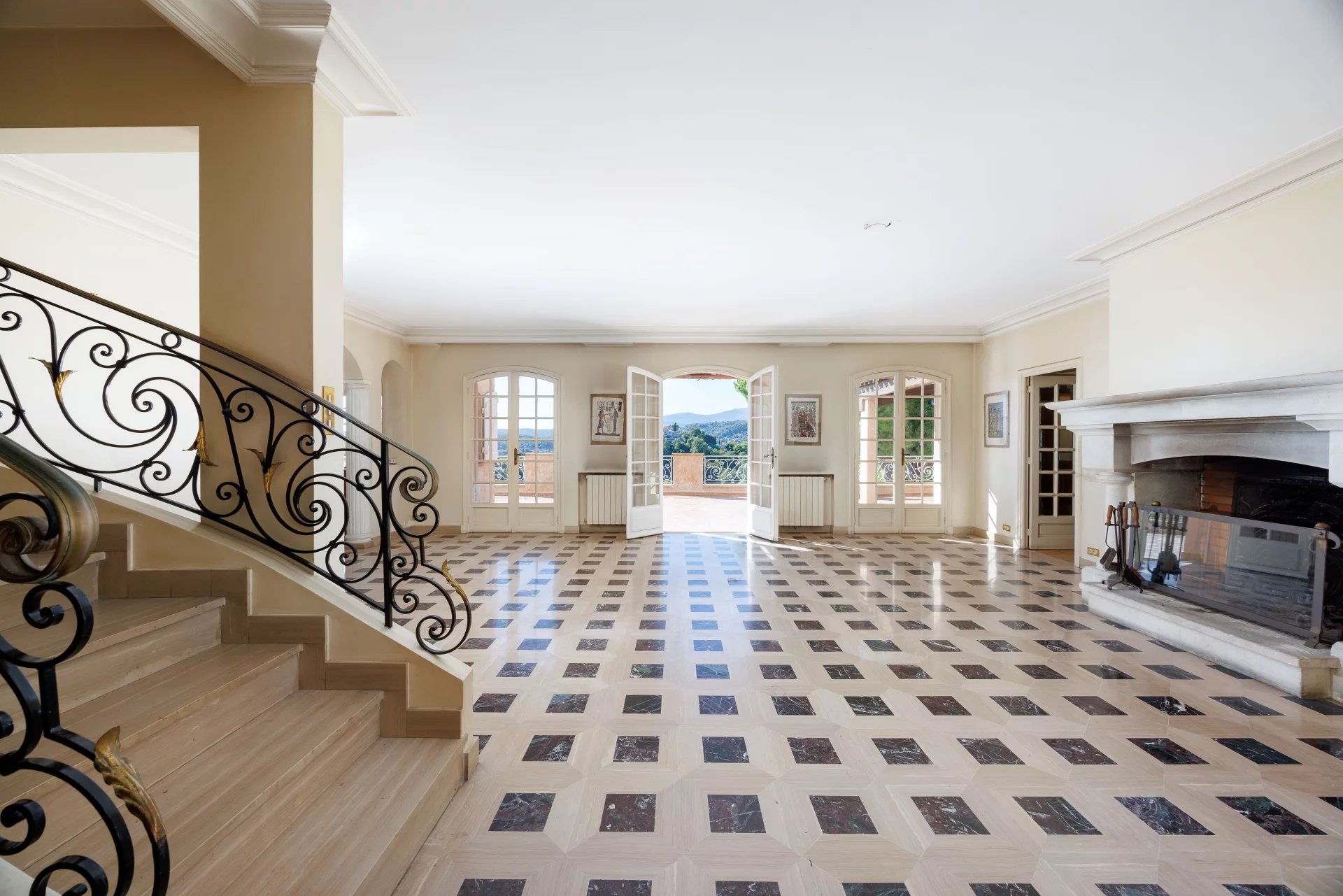 L'ingresso è al primo piano, con una maestosa scala che conduce ai salotti. Questo livello comprende un enorme soggiorno con camino e un salotto più accogliente, oltre a una grande cucina con ripostiglio, tutti aperti sull'immensa terrazza di quasi 100 m2 con area coperta. Una grande camera da letto con bagno completa questo livello principale.
